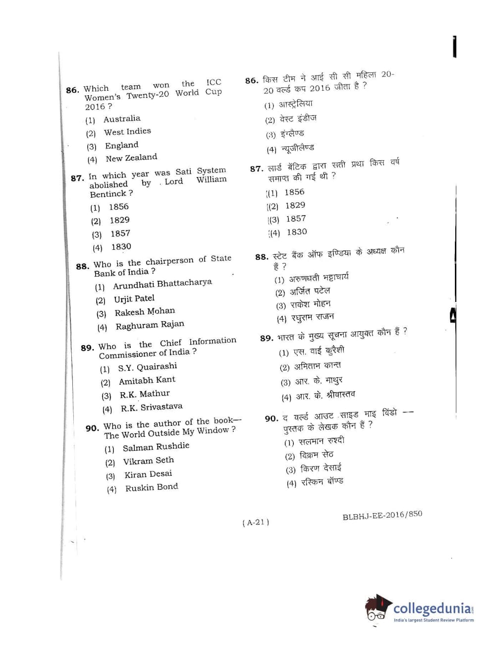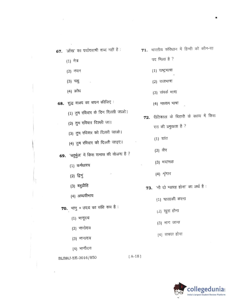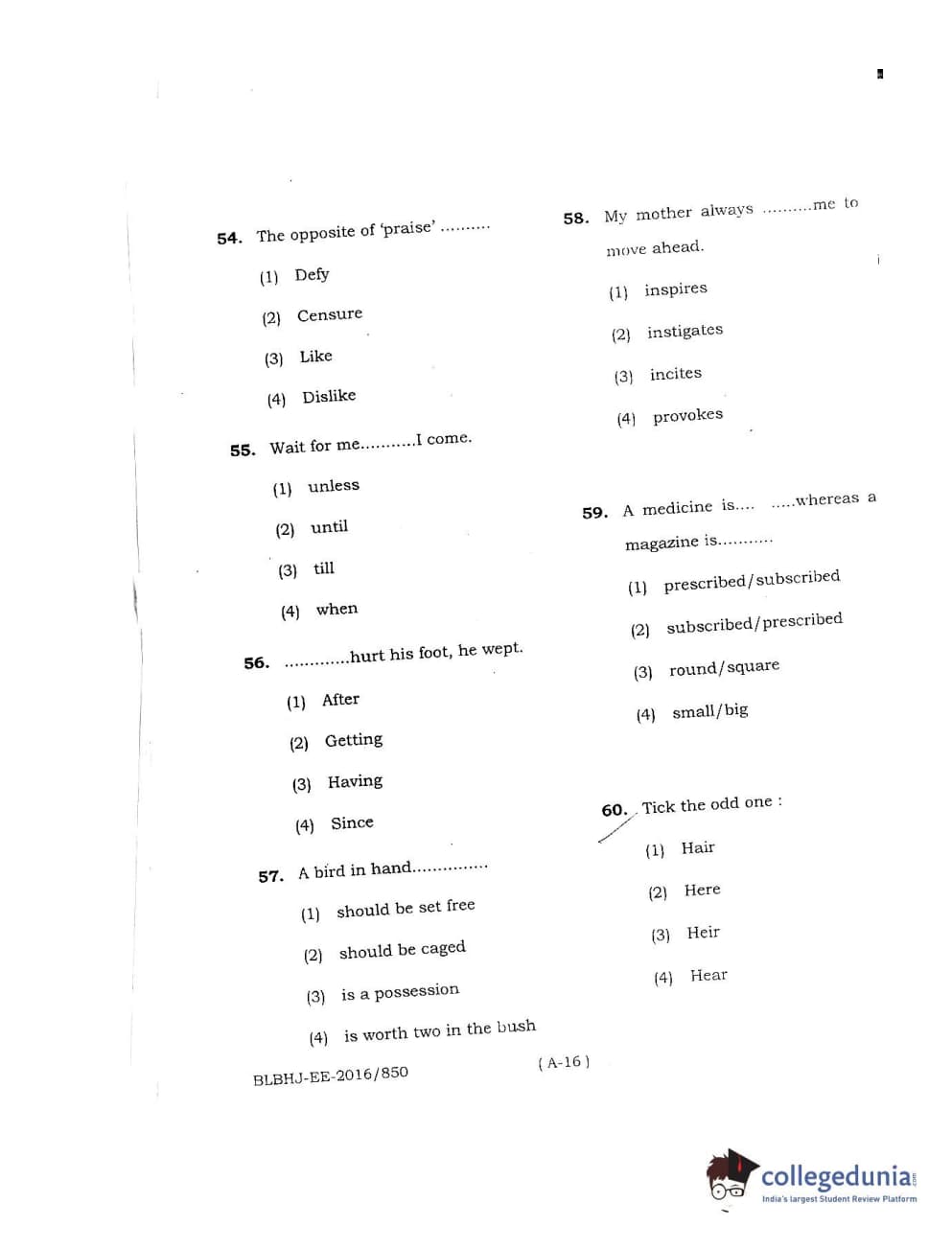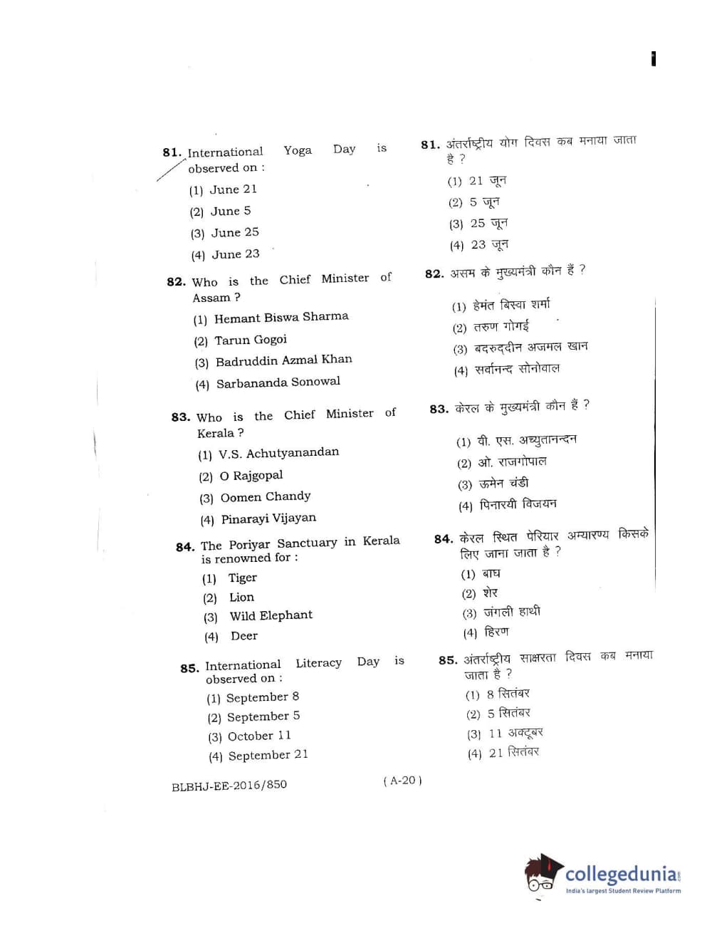 MDUCEE 2016 LL.B. (Hons) 5 Year Integrated Set A Question Paper with Answer Key PDFs