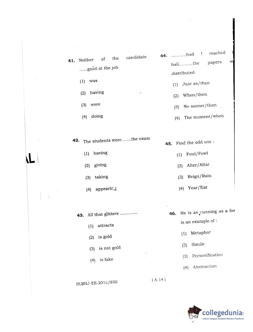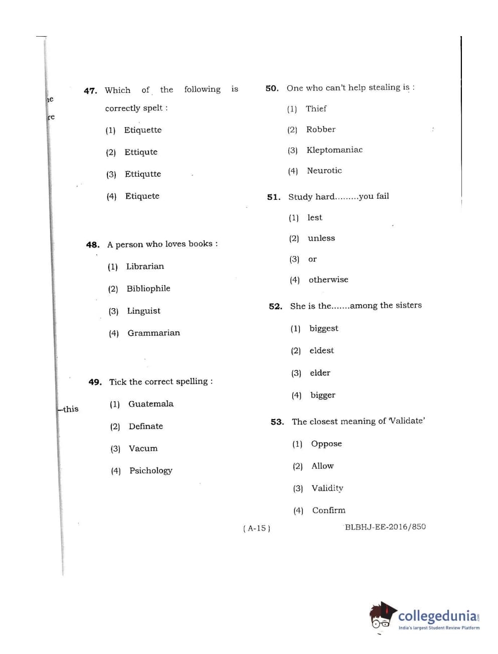 | MDUCEE 2016 LL.B. (Hons) 5 Year Integrated Set A Question Paper PDF | MDUCEE 2016 LL.B. (Hons) 5 Year Integrated Set A Answer Key PDF |