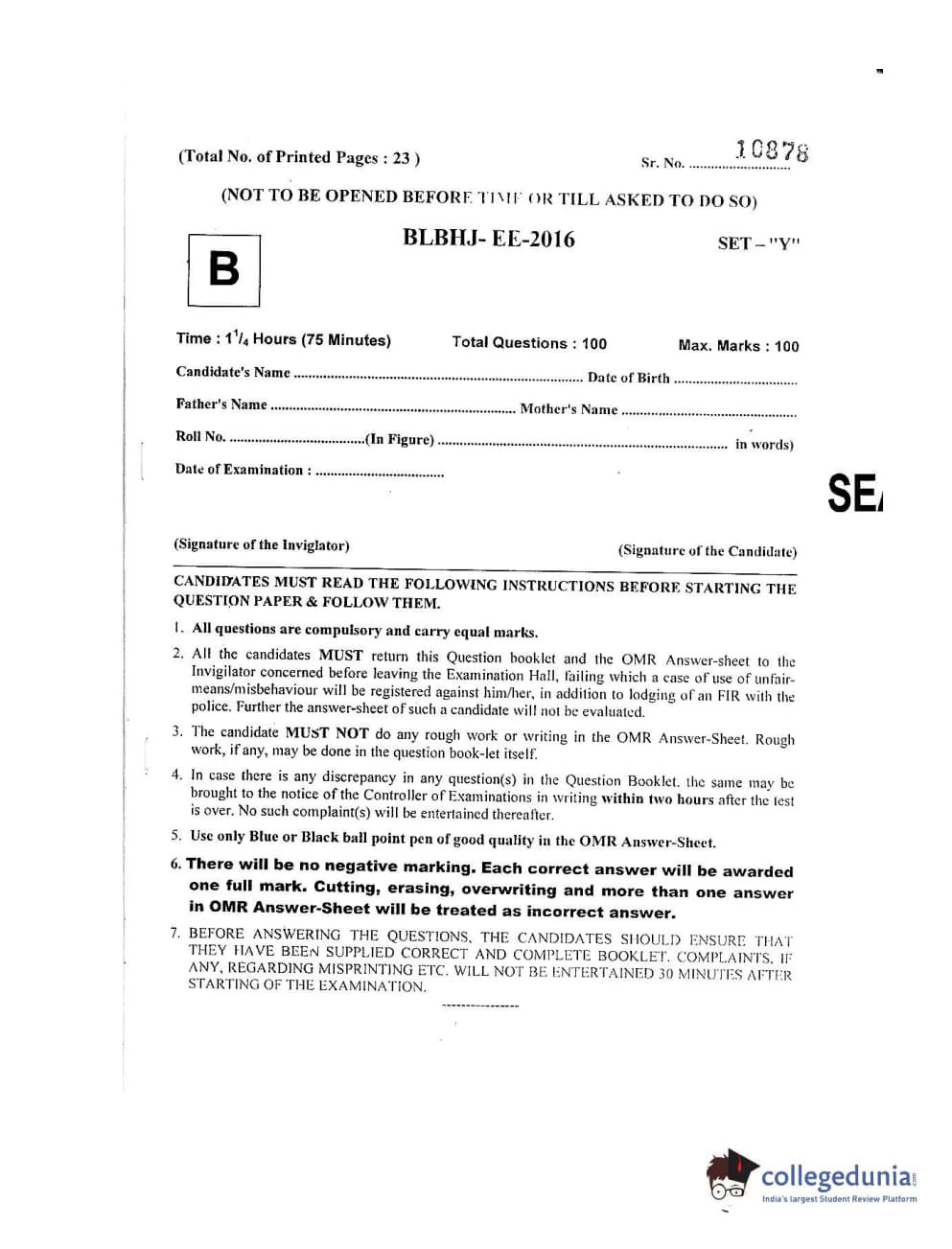 MDUCEE 2016 LL.B. (Hons) 5 Year Integrated Set B Question paper with answer key pdf is available for download. The exam was successfully organized by Maharishi Dayanand University. The question paper comprised a total of 100 questions.