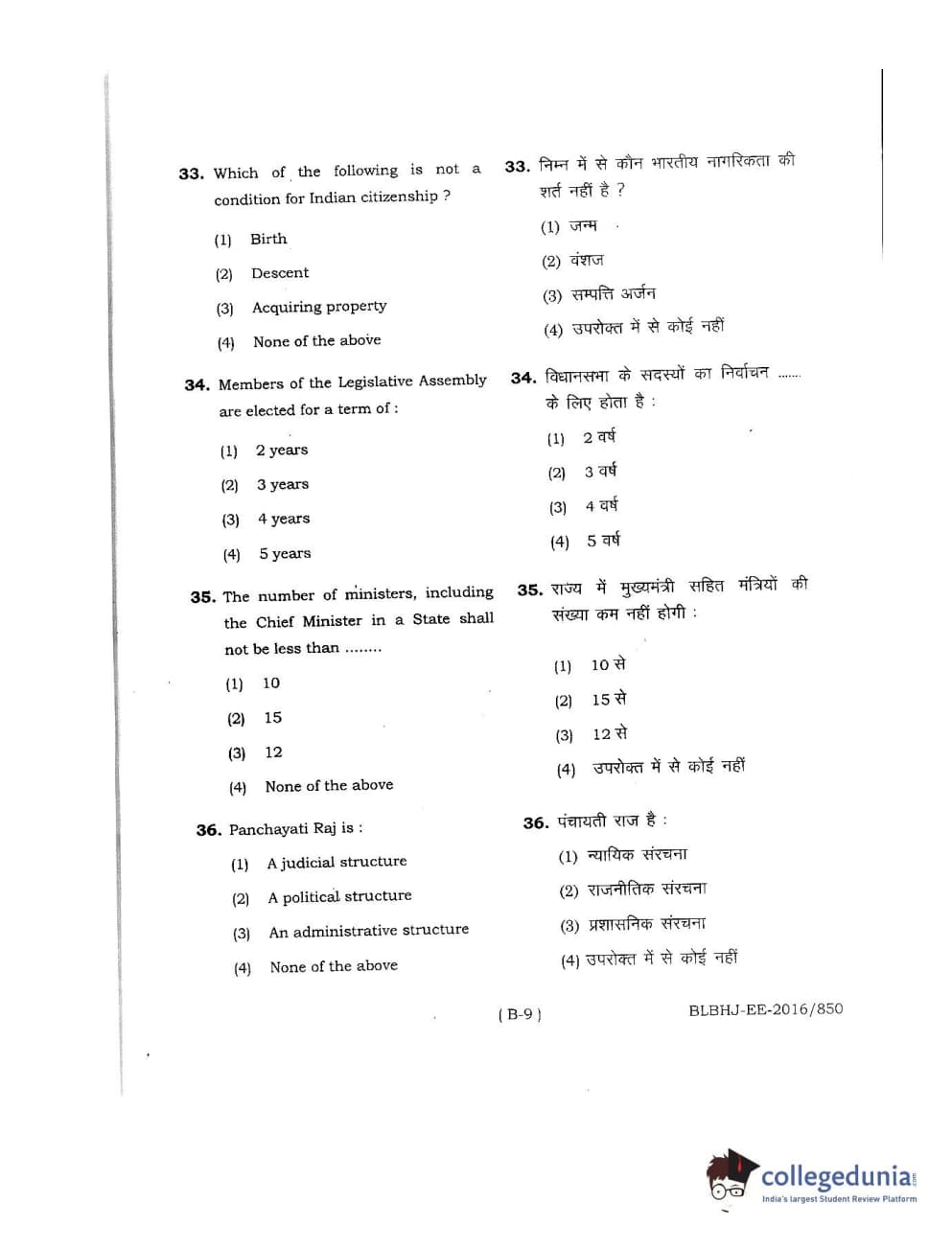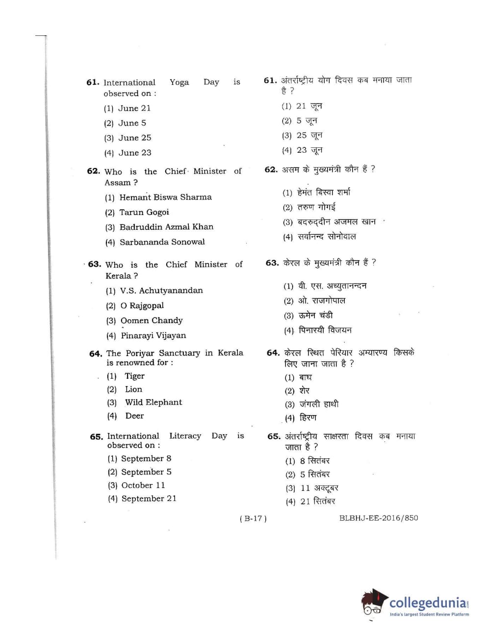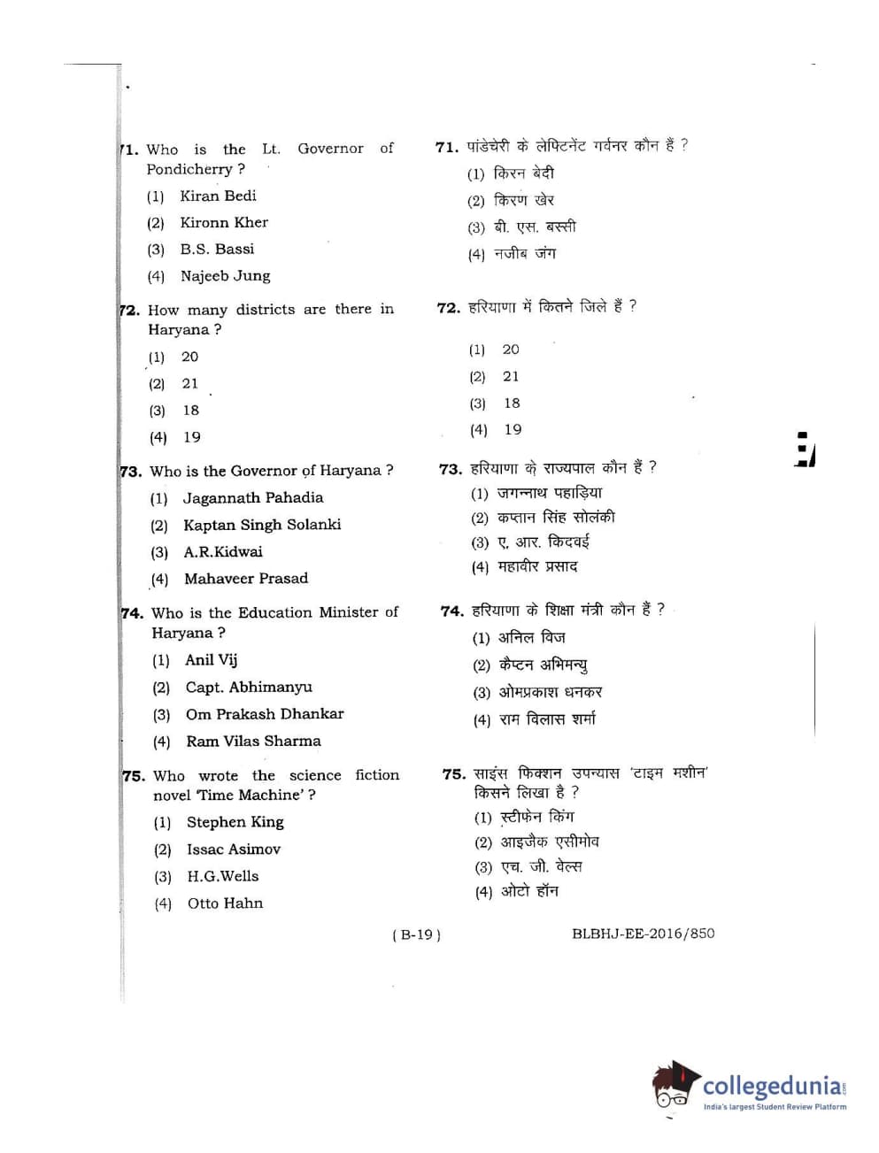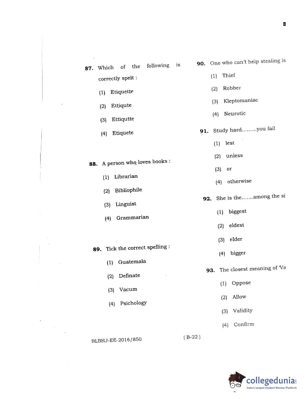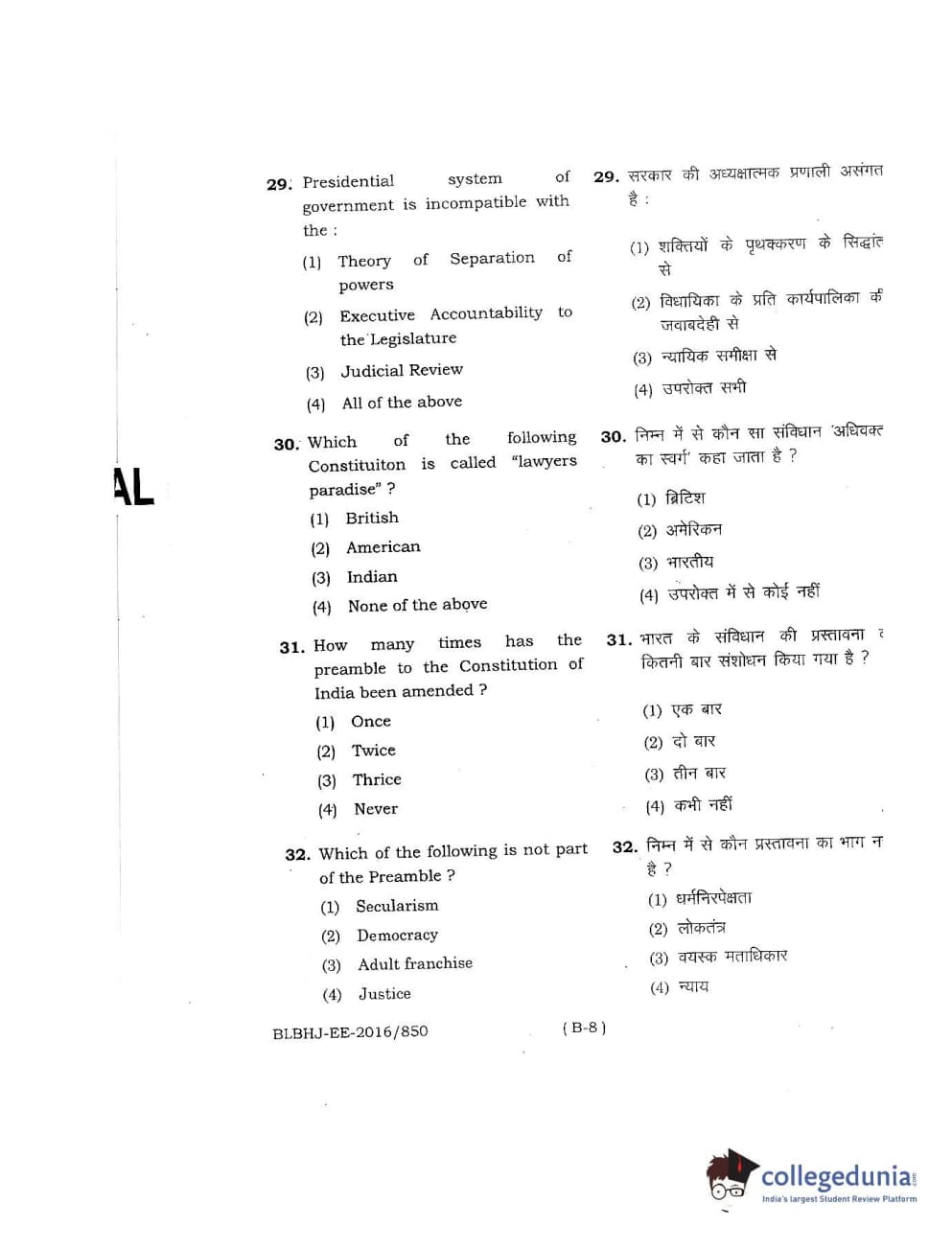 MDUCEE 2016 LL.B. (Hons) 5 Year Integrated Set B Question Paper with Answer Key PDFs