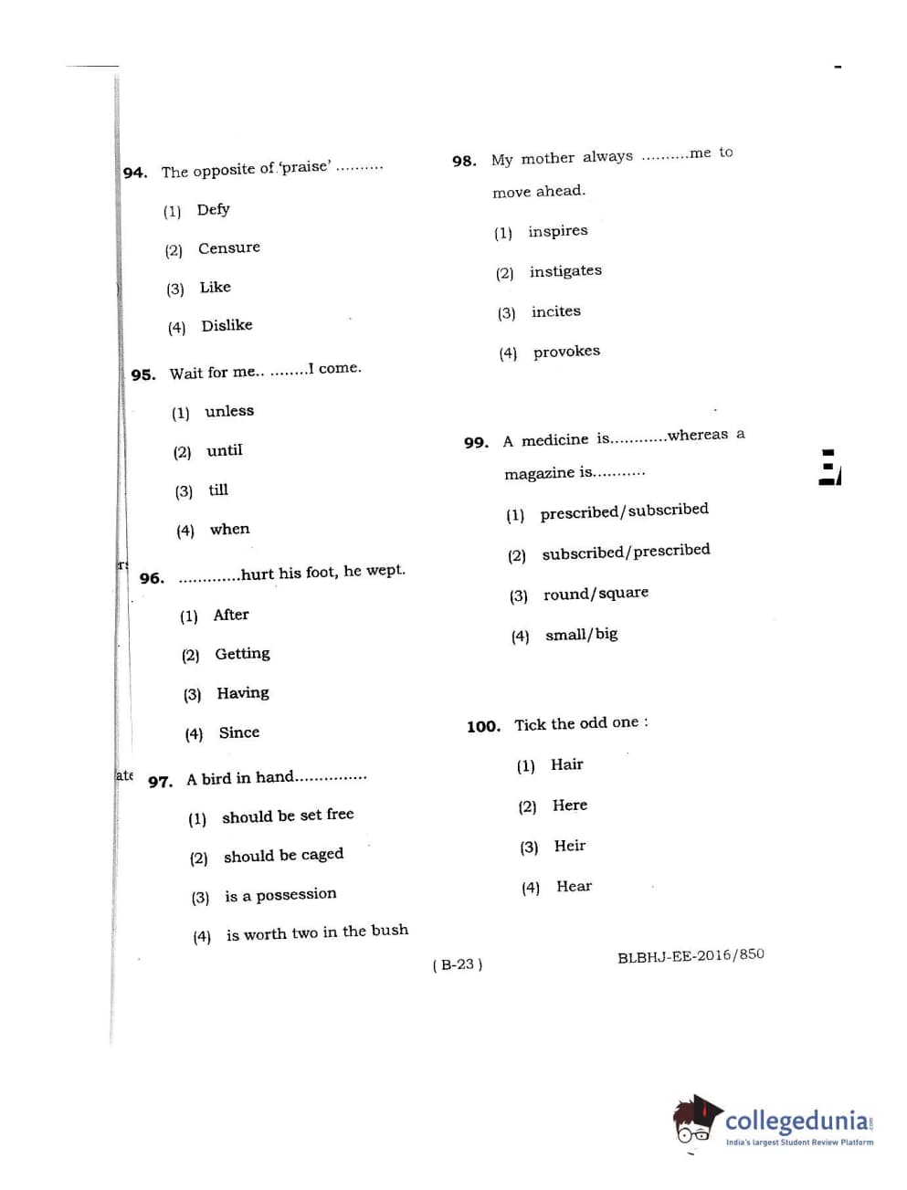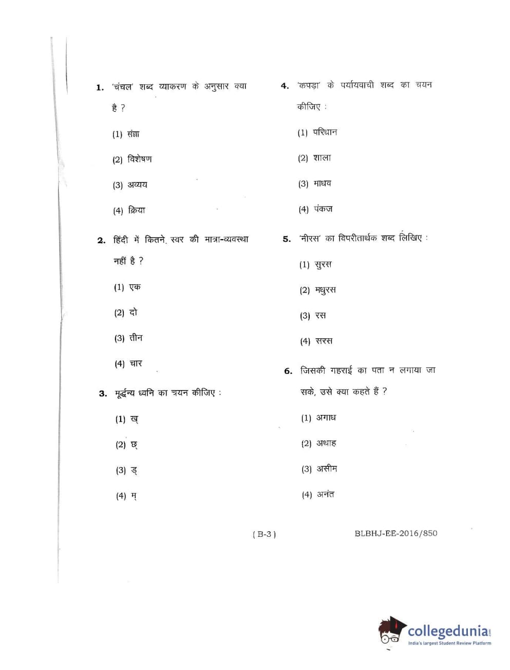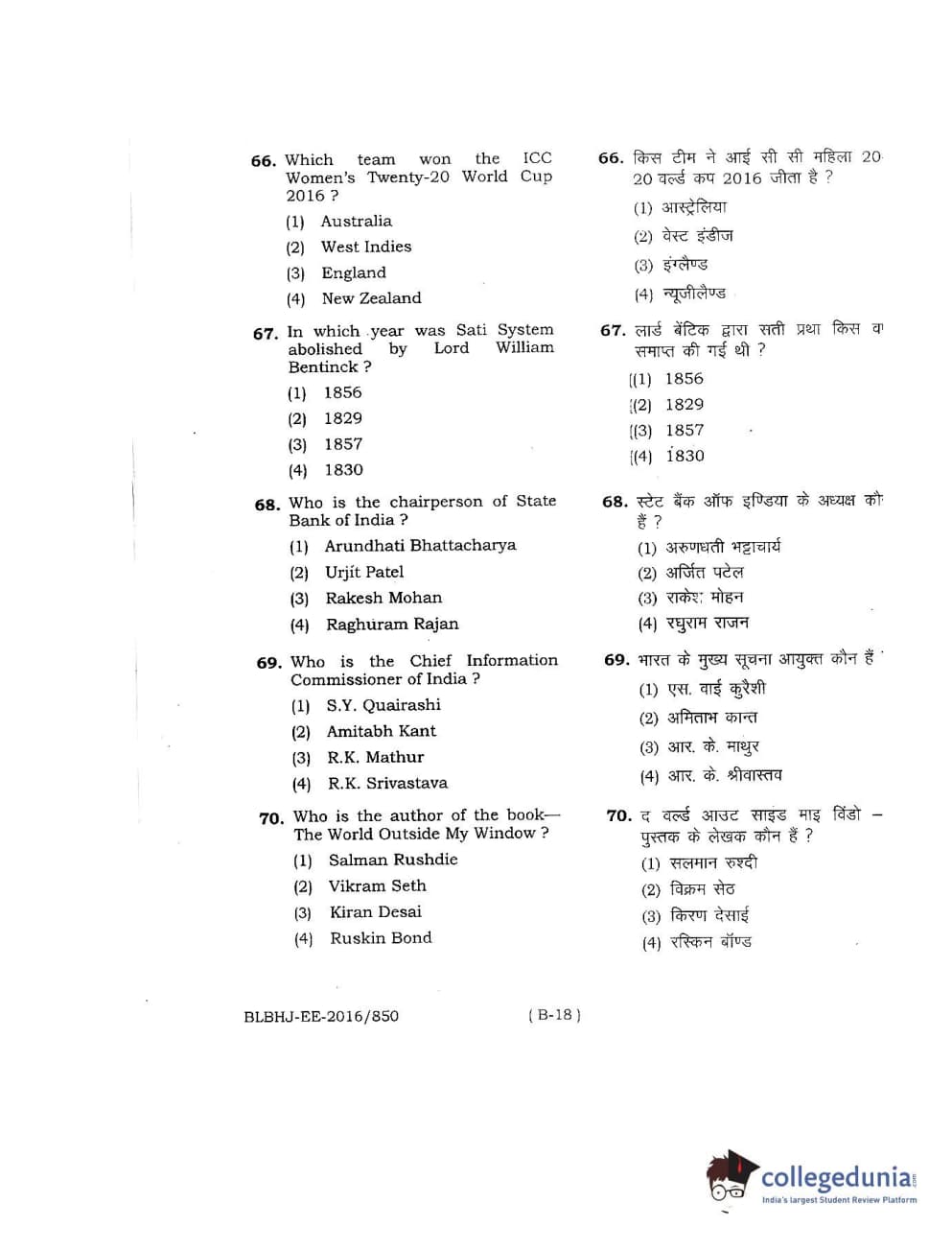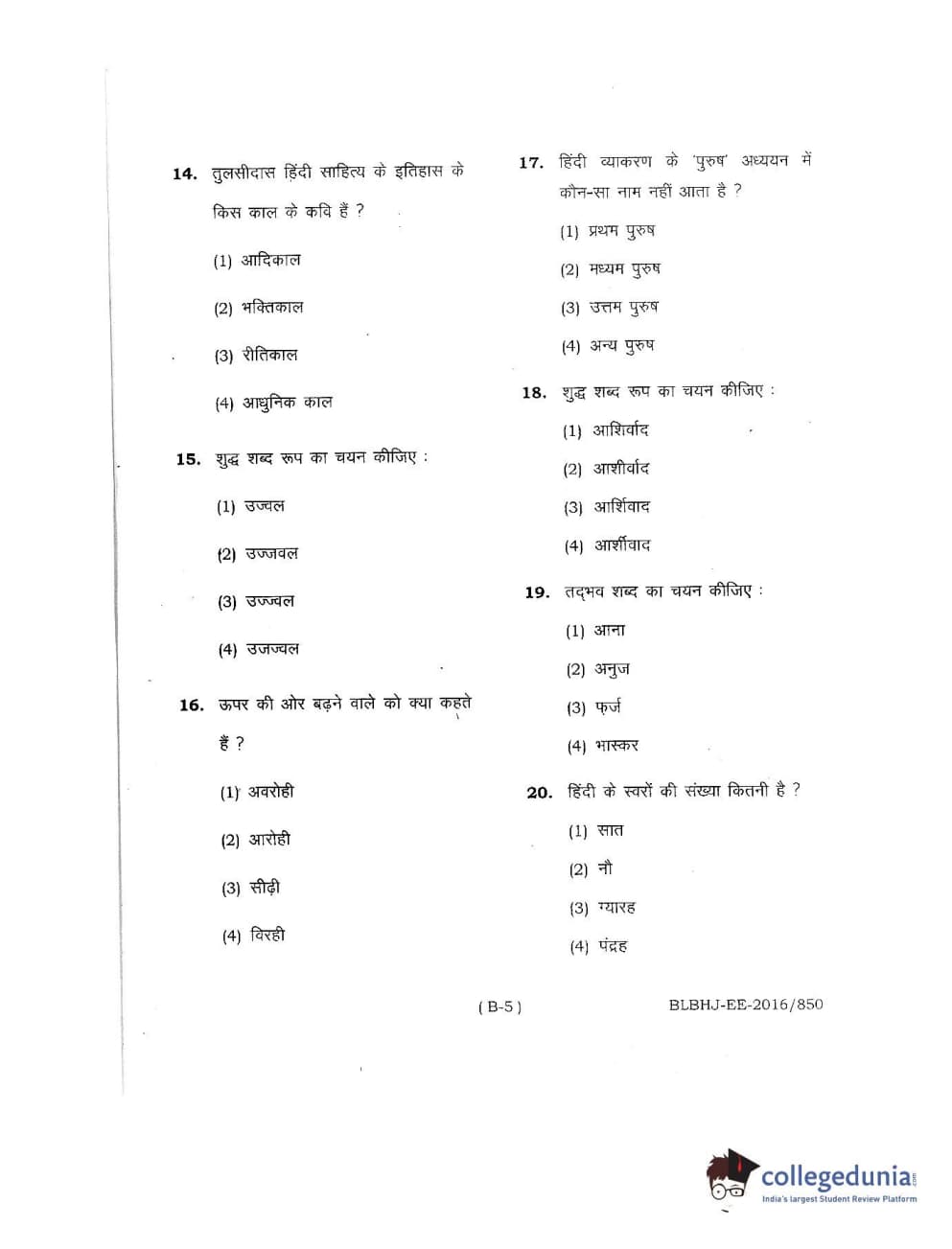 MDUCEE 2016 LL.B. (Hons) 5 Year Integrated Set B Question Paper with Answer Key PDFs