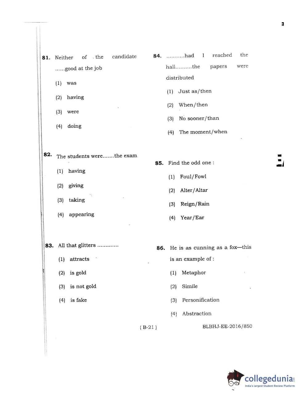 | MDUCEE 2016 LL.B. (Hons) 5 Year Integrated Set B Question Paper PDF | MDUCEE 2016 LL.B. (Hons) 5 Year Integrated Set B Answer Key PDF |