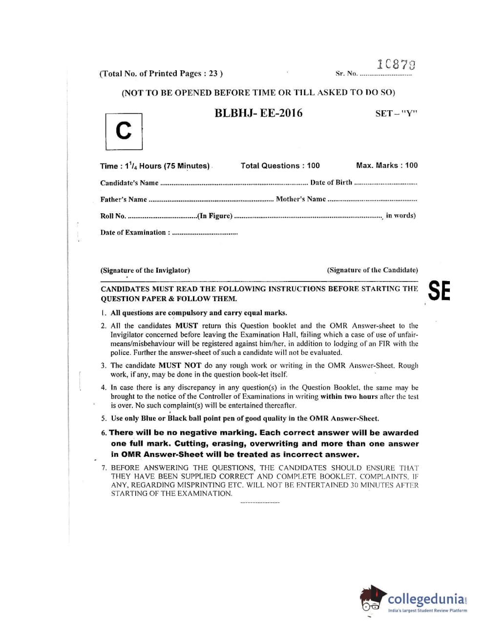 MDUCEE 2016 LL.B. (Hons) 5 Year Integrated Set C Question paper with answer key pdf is available for download. The exam was successfully organized by Maharishi Dayanand University. The question paper comprised a total of 100 questions.
