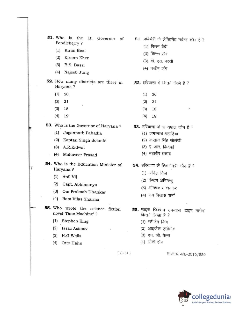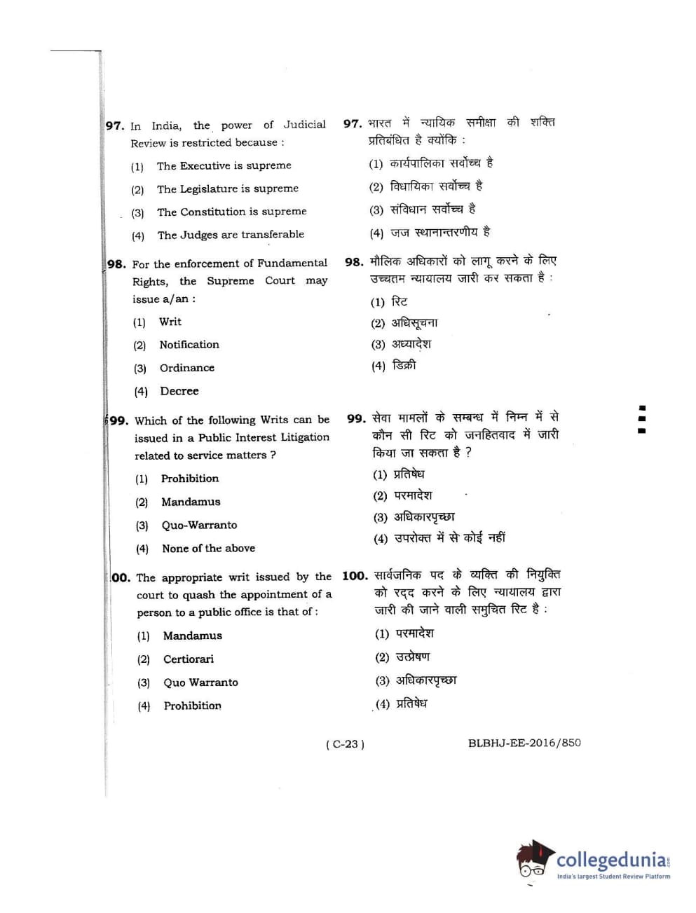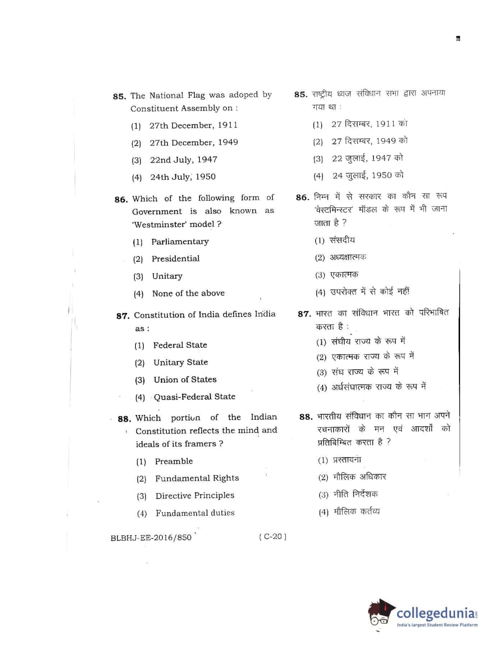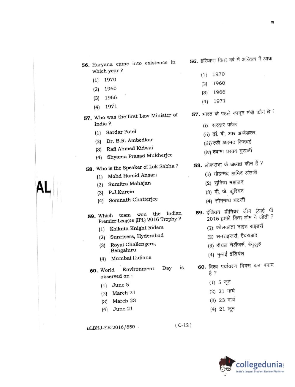 MDUCEE 2016 LL.B. (Hons) 5 Year Integrated Set C Question Paper with Answer Key PDFs