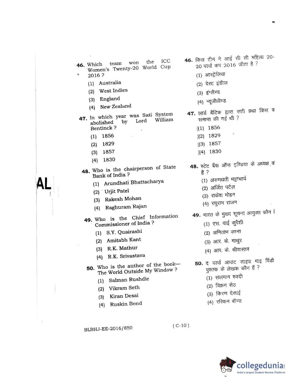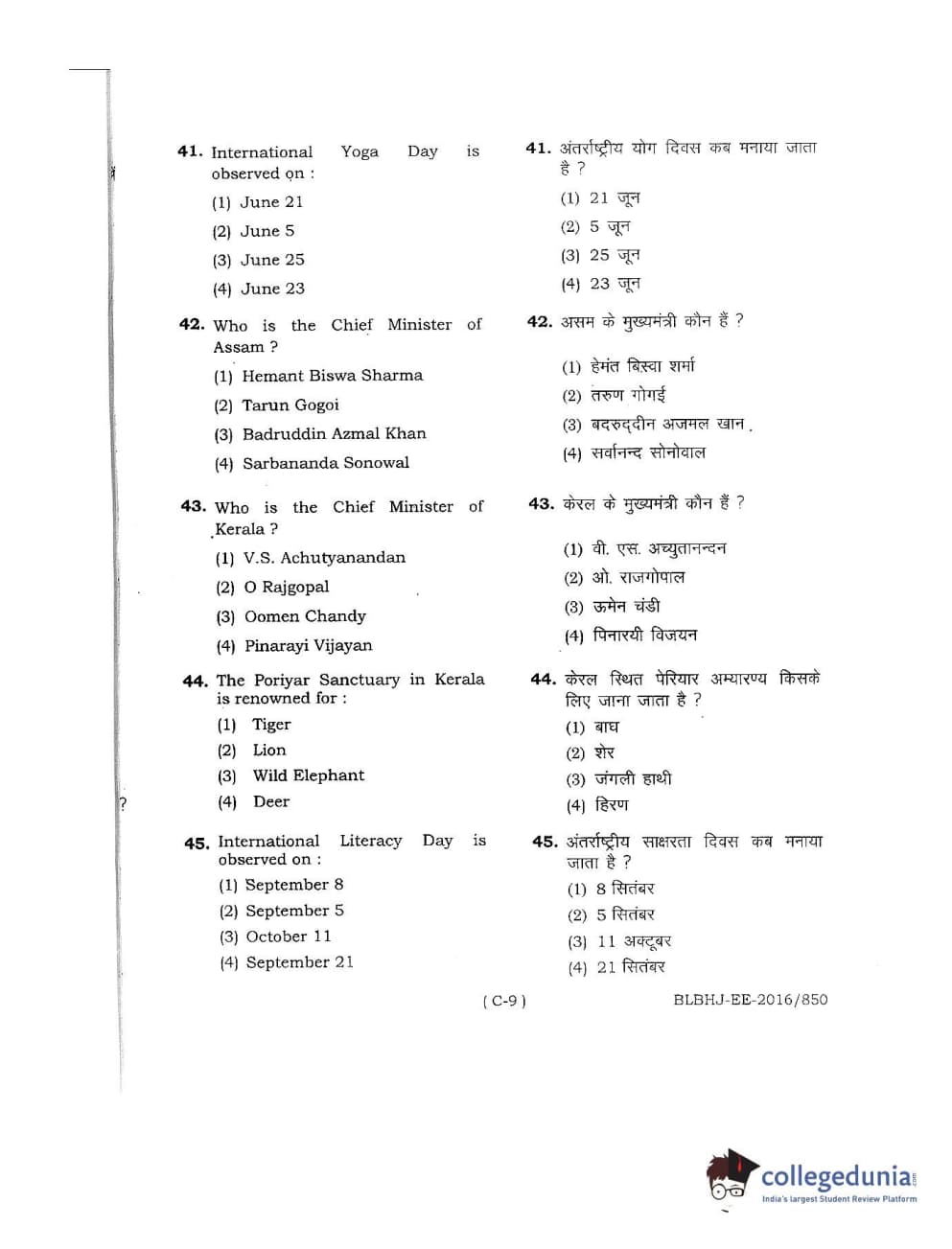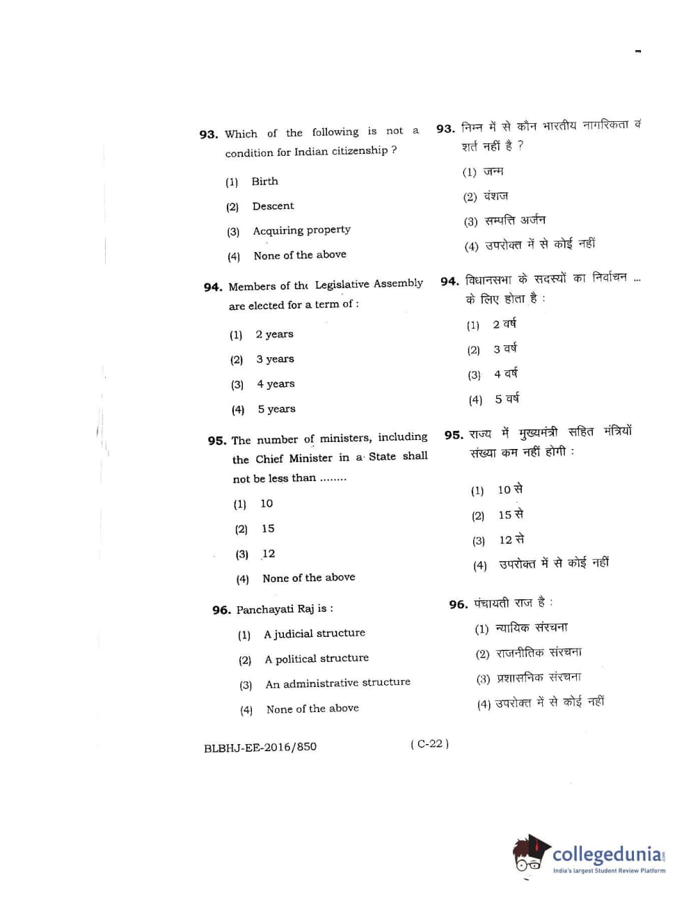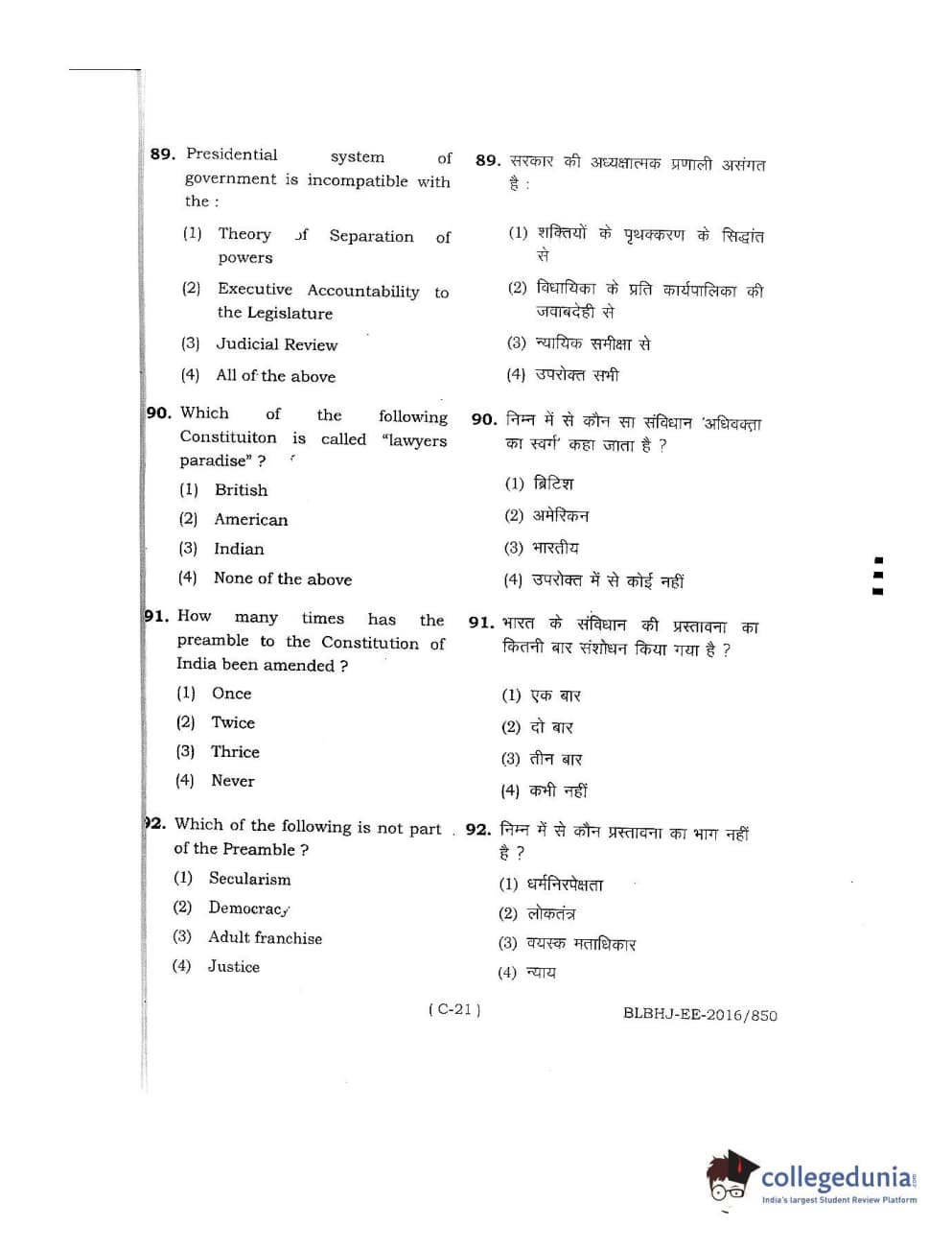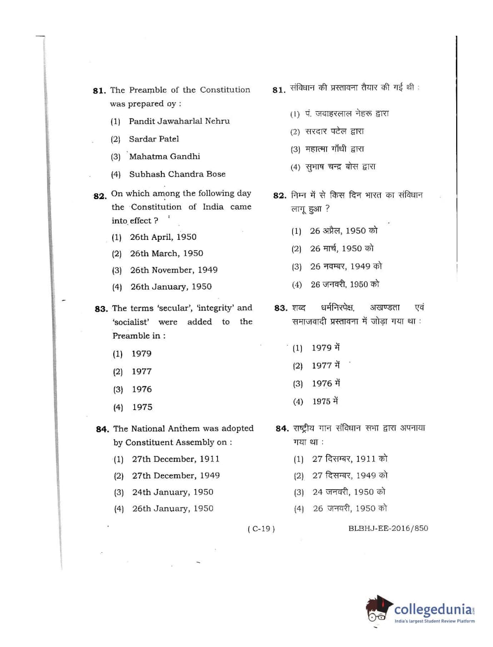 MDUCEE 2016 LL.B. (Hons) 5 Year Integrated Set C Question Paper with Answer Key PDFs