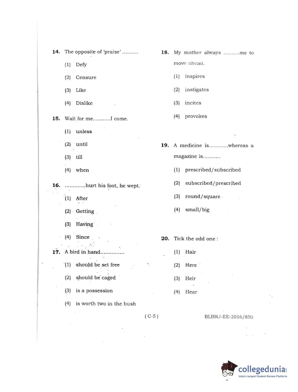 | MDUCEE 2016 LL.B. (Hons) 5 Year Integrated Set C Question Paper PDF | MDUCEE 2016 LL.B. (Hons) 5 Year Integrated Set C Answer Key PDF |