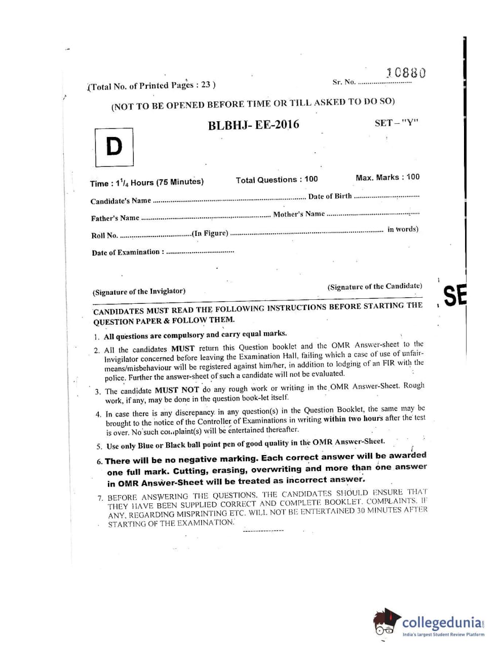 MDUCEE 2016 LL.B. (Hons) 5 Year Integrated Set D Question paper with answer key pdf is available for download. The exam was successfully organized by Maharishi Dayanand University. The question paper comprised a total of 100 questions.