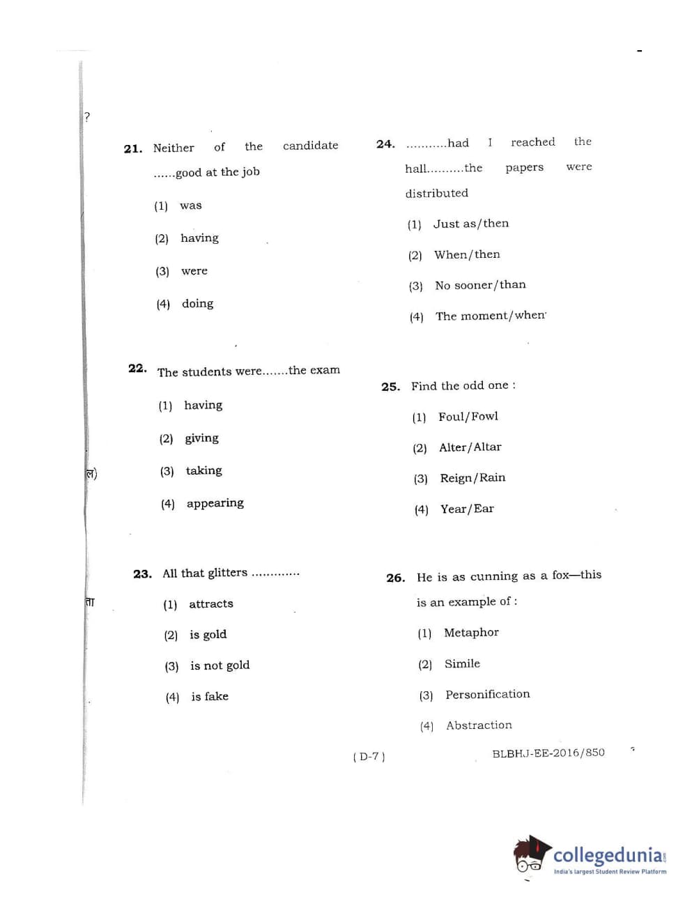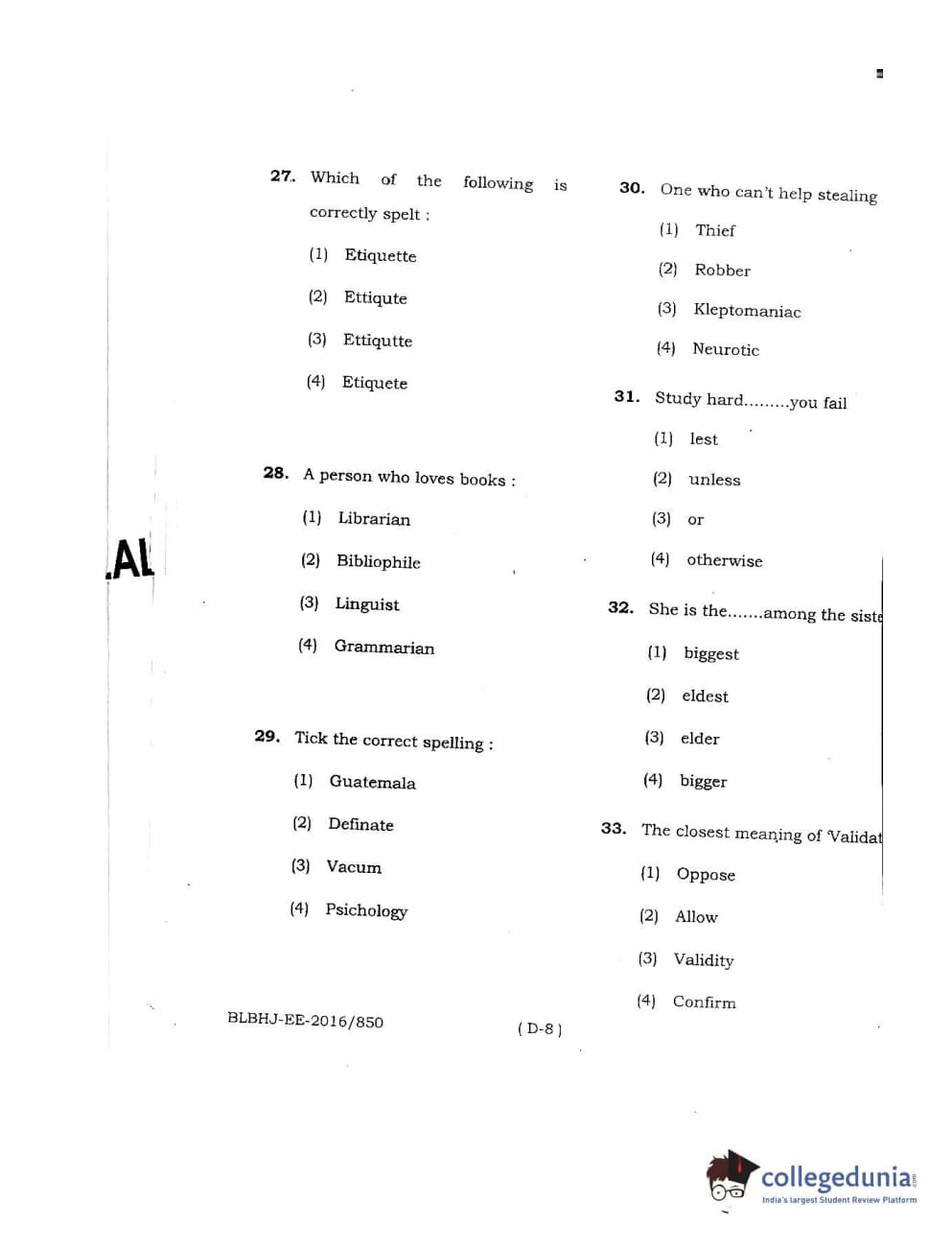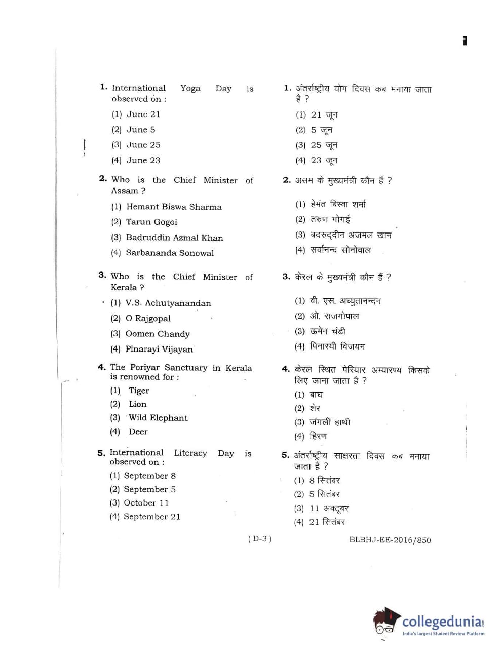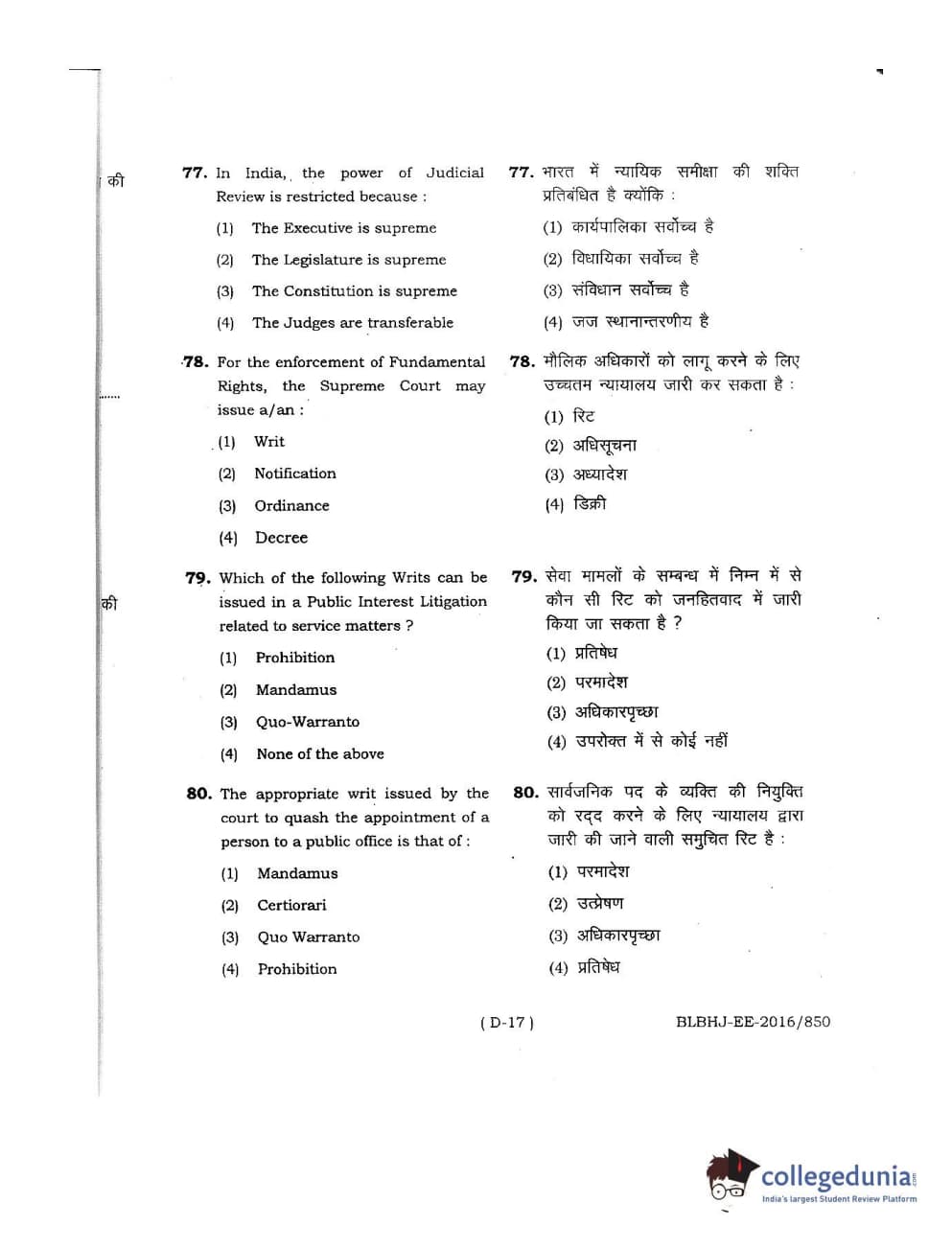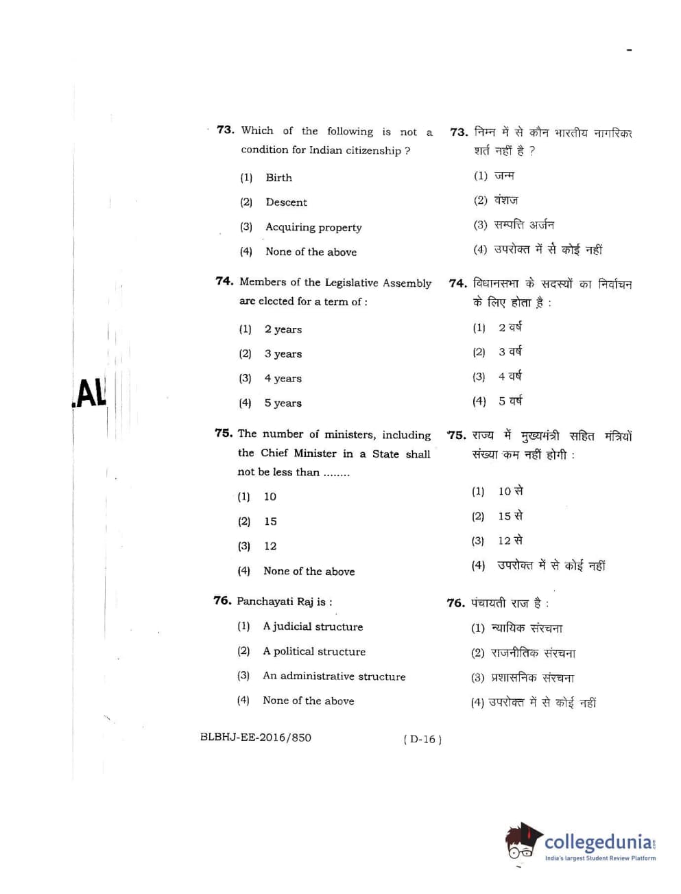 MDUCEE 2016 LL.B. (Hons) 5 Year Integrated Set D Question Paper with Answer Key PDFs
