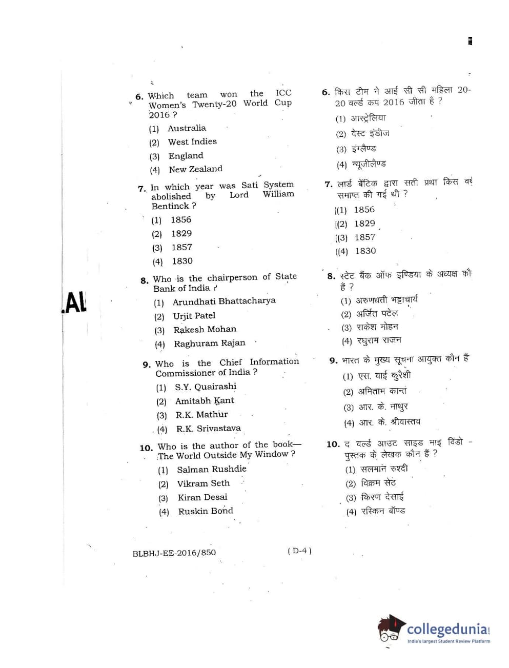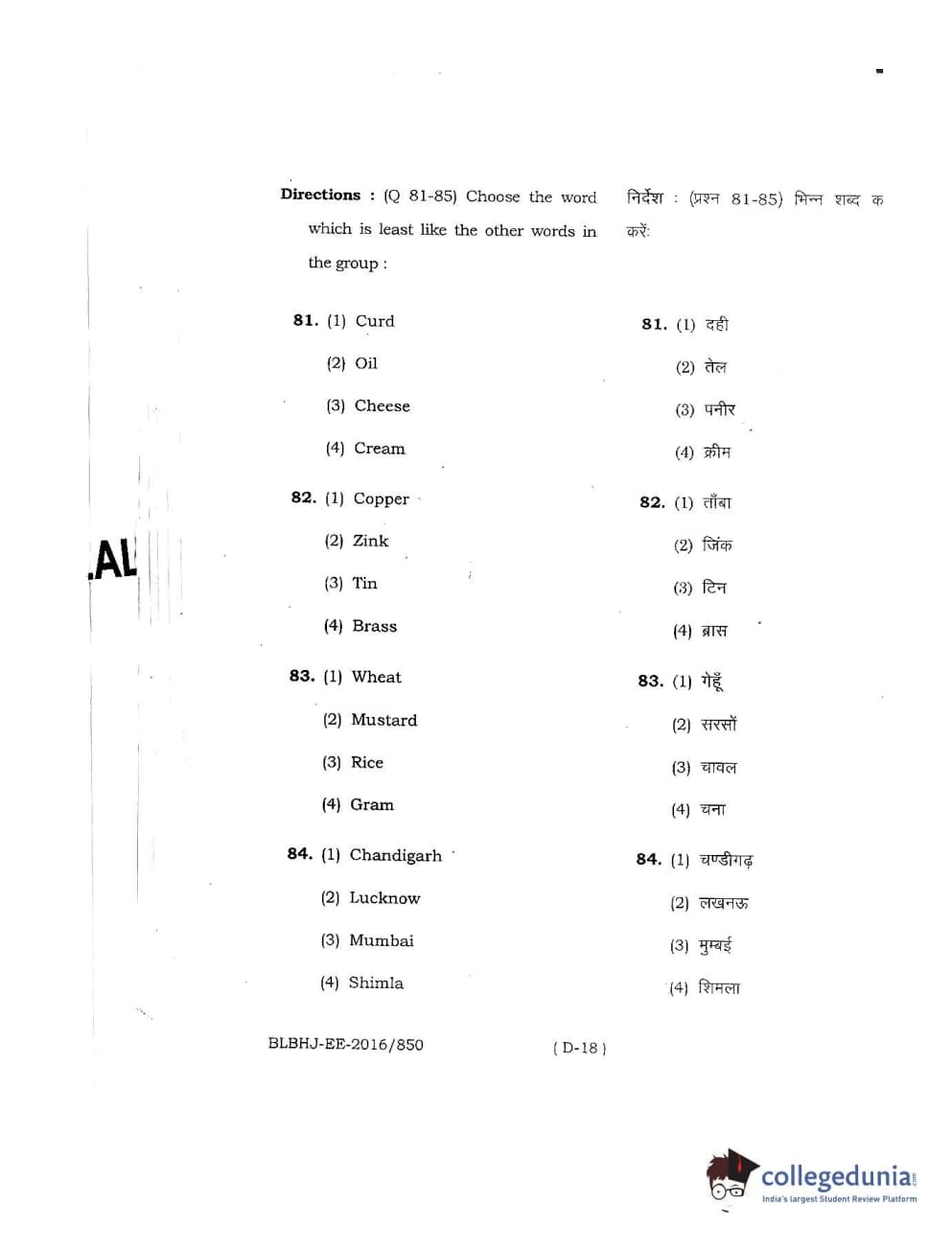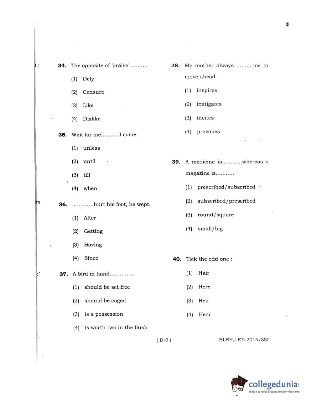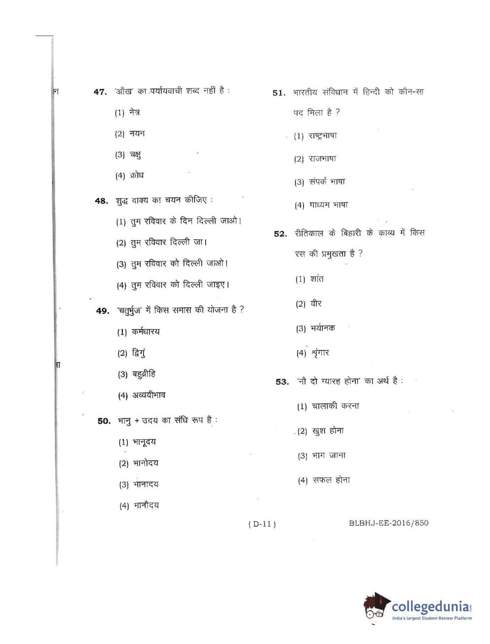 MDUCEE 2016 LL.B. (Hons) 5 Year Integrated Set D Question Paper with Answer Key PDFs