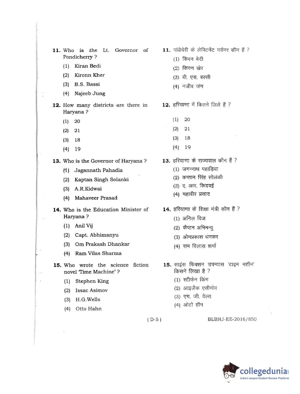 | MDUCEE 2016 LL.B. (Hons) 5 Year Integrated Set D Question Paper PDF | MDUCEE 2016 LL.B. (Hons) 5 Year Integrated Set D Answer Key PDF |