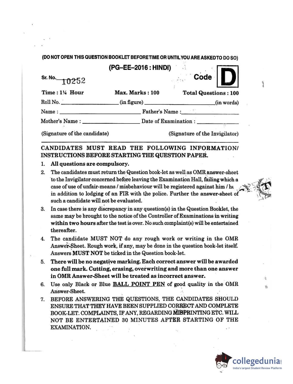 MDUCEE 2016 M.A. (Hindi) Set D Question paper with answer key pdf is available for download. The exam was successfully organized by Maharishi Dayanand University. The question paper comprised a total of 100 questions.