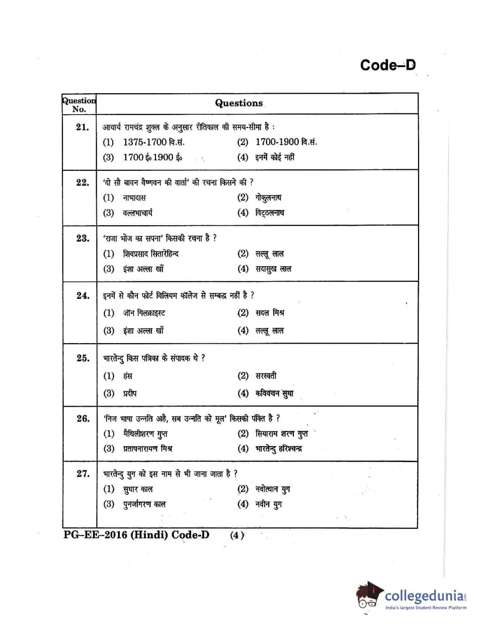 | MDUCEE 2016 M.A. (Hindi) Set D Question Paper PDF | MDUCEE 2016 M.A. (Hindi) Set D Answer Key PDF |