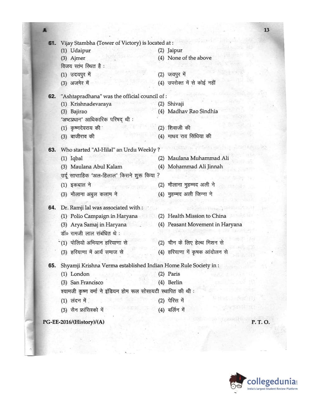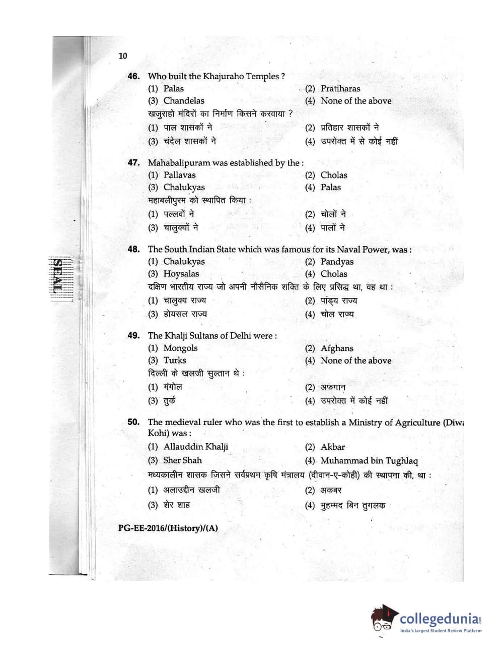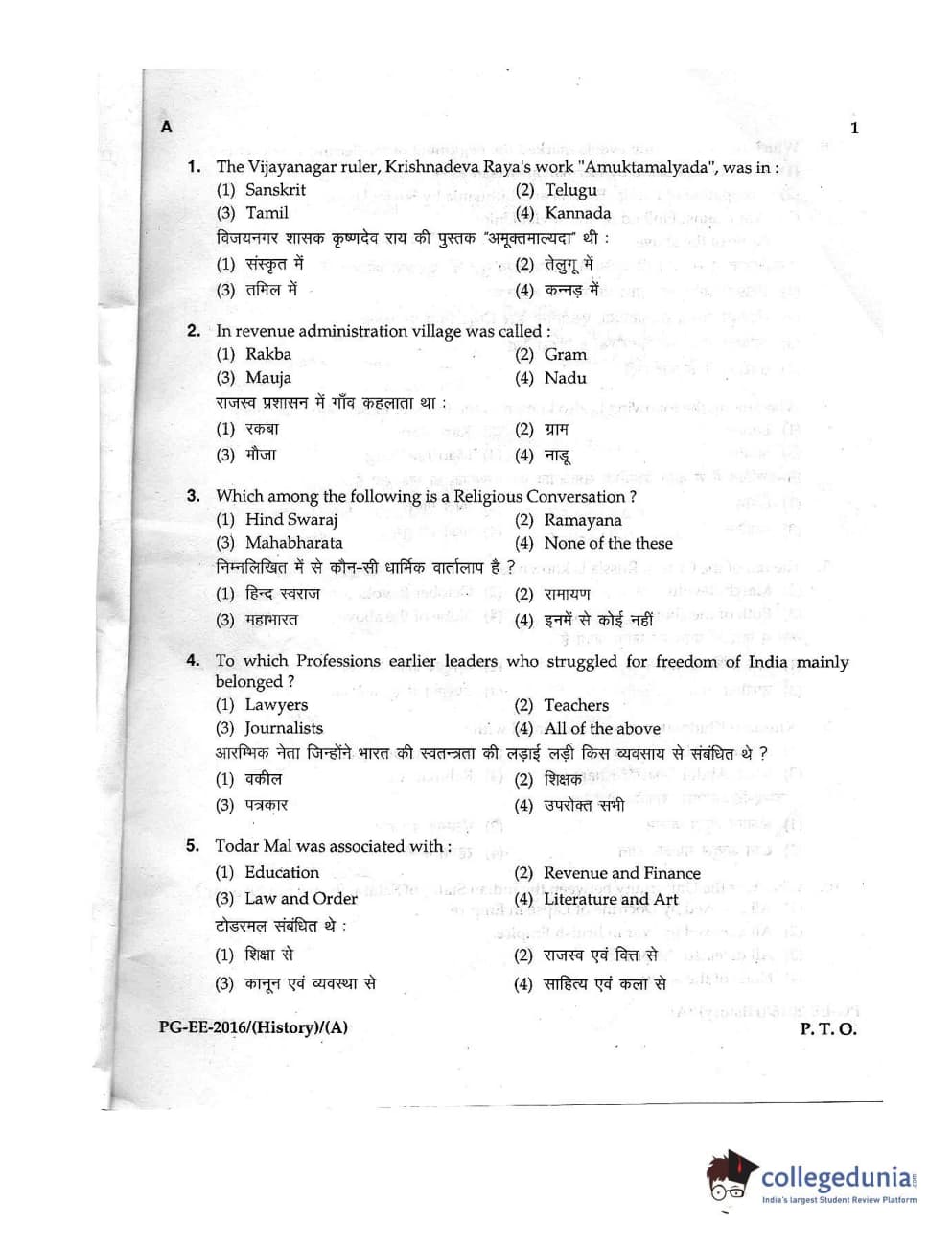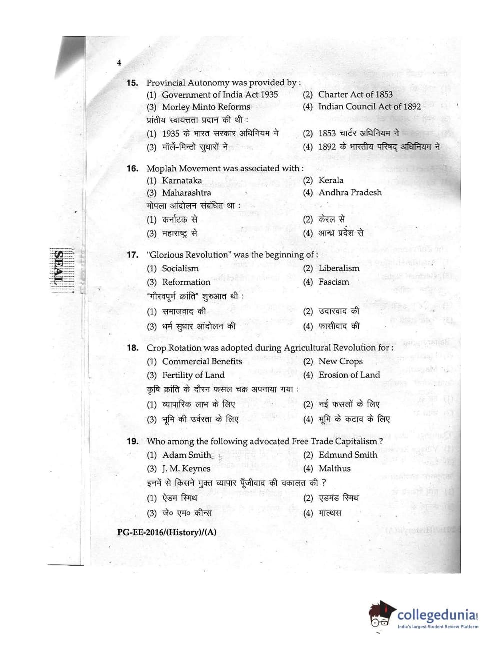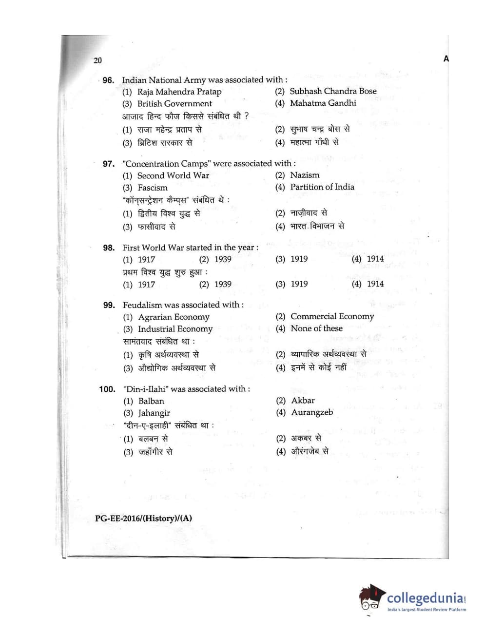 MDUCEE 2016 M.A. (History) Set A Question Paper with Answer Key PDFs