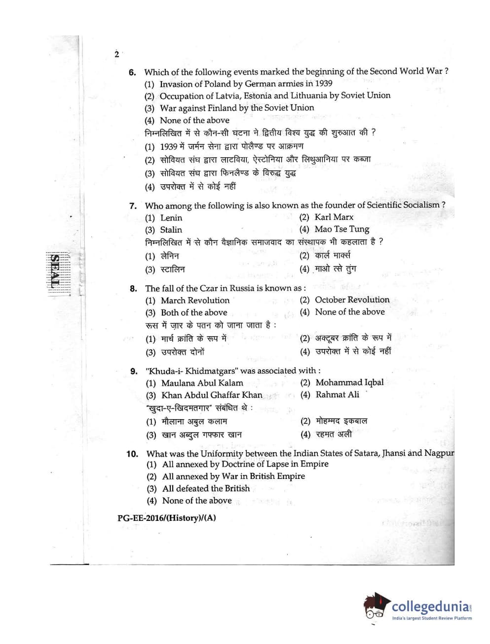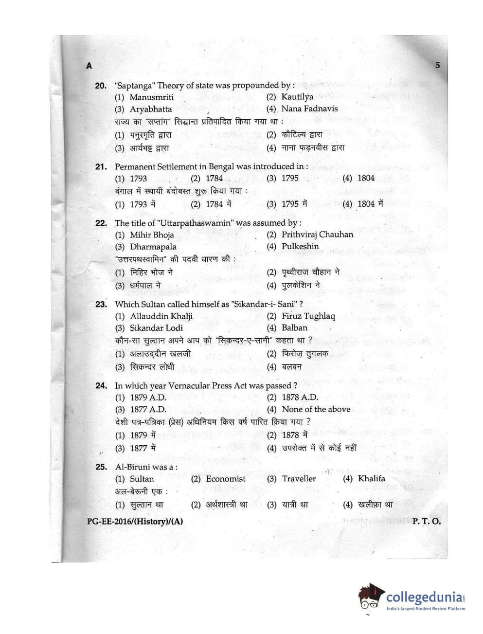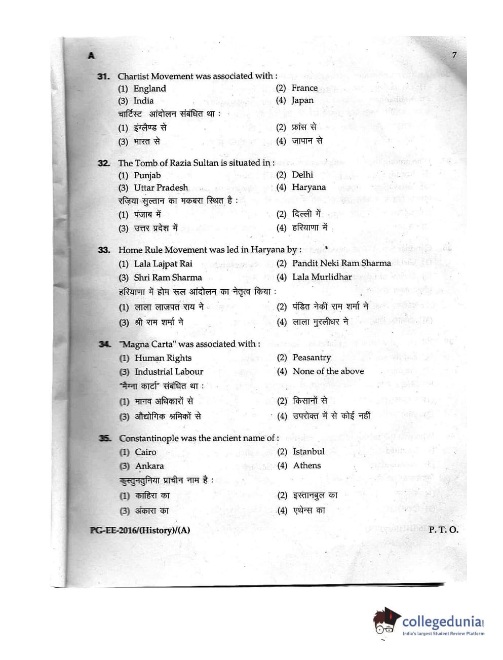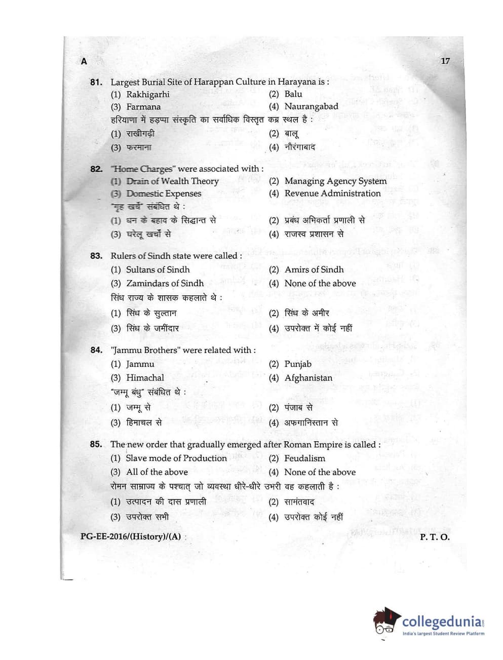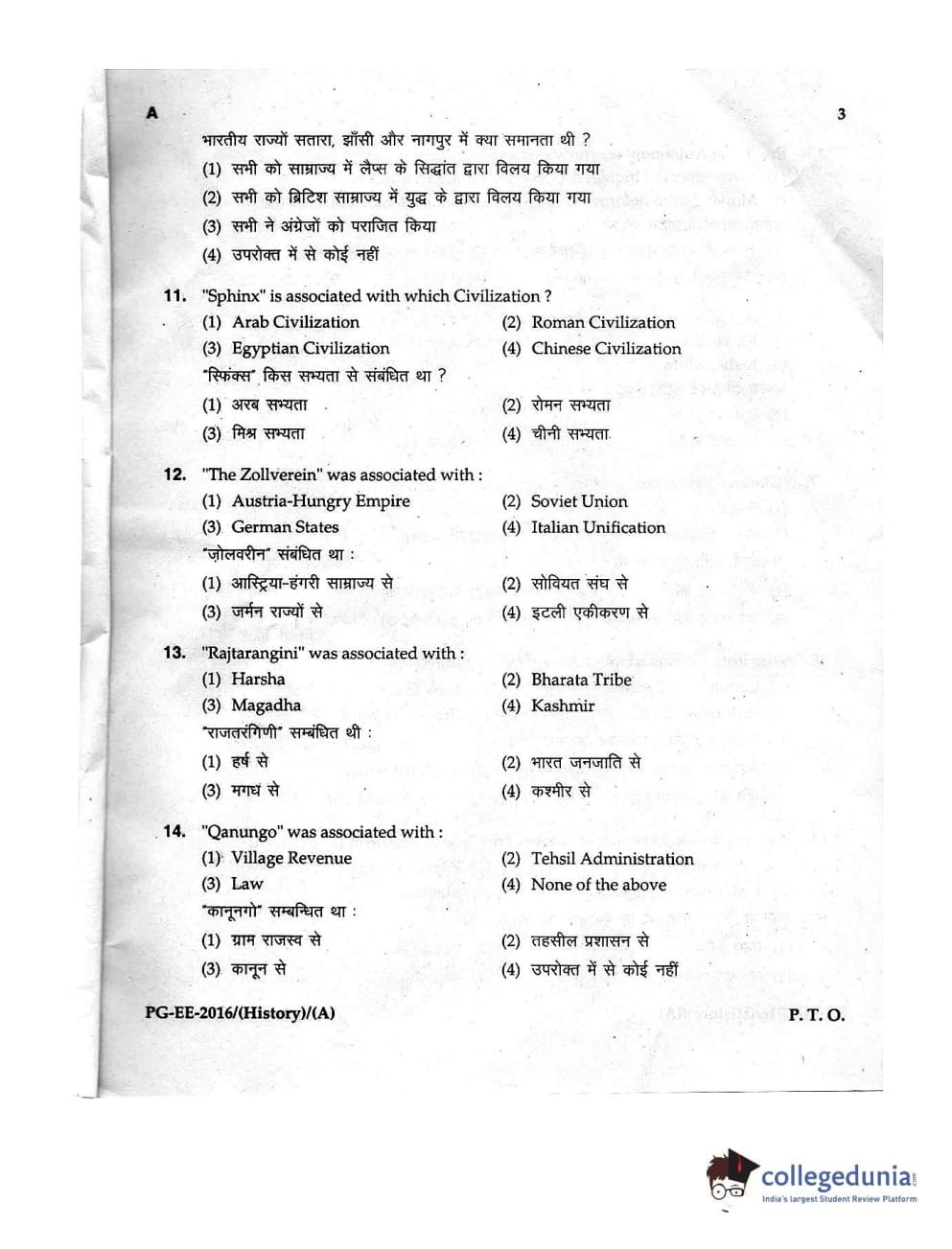 MDUCEE 2016 M.A. (History) Set A Question Paper with Answer Key PDFs