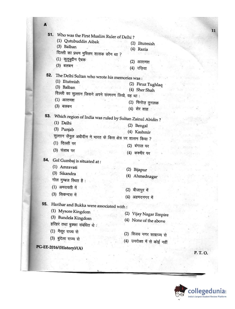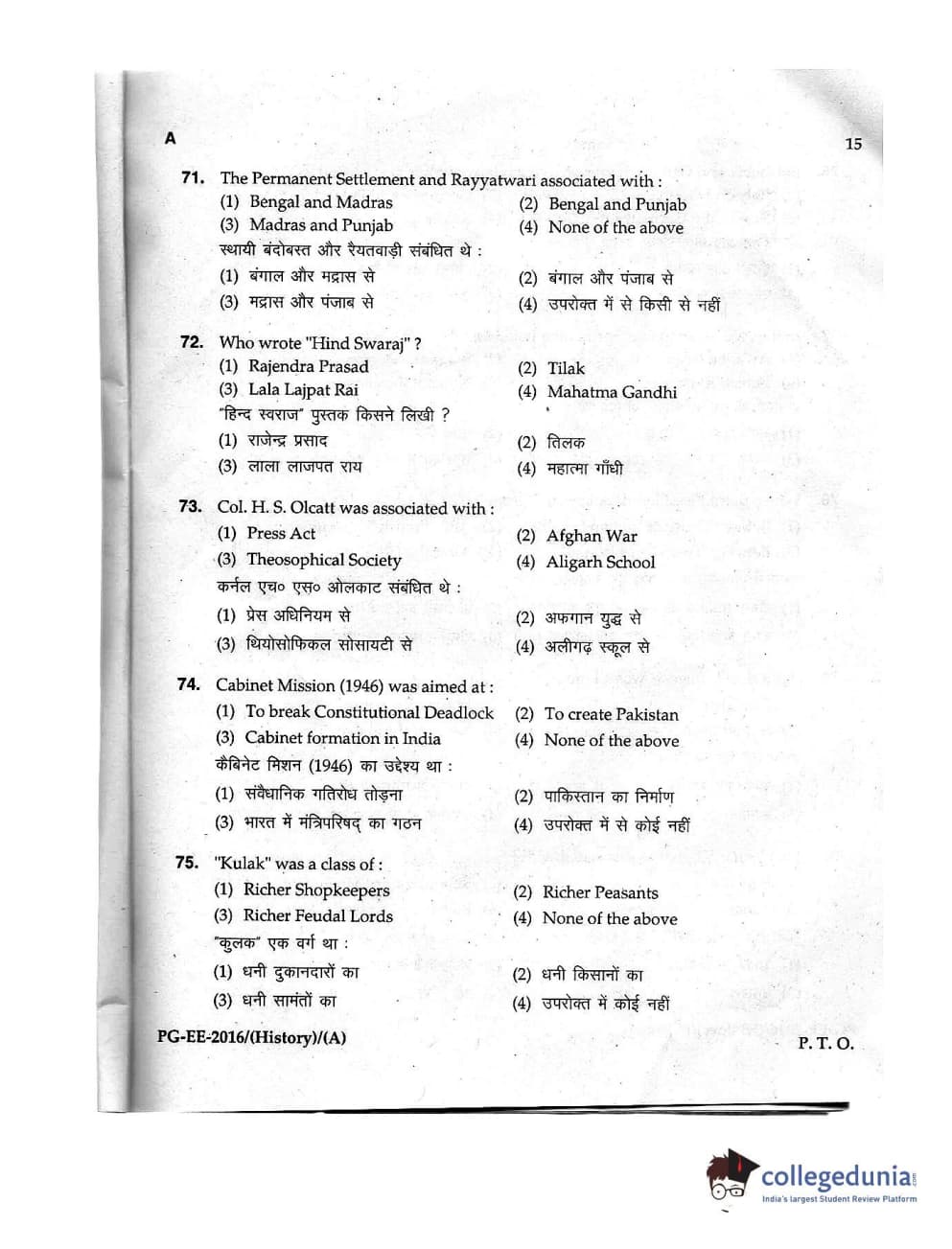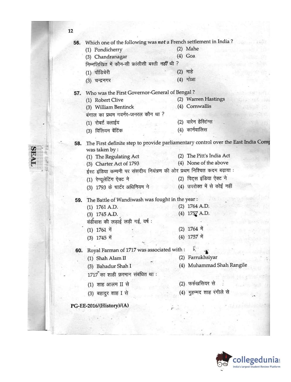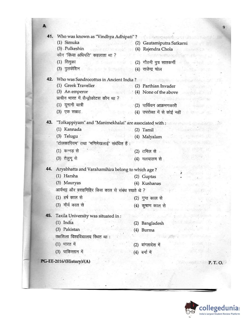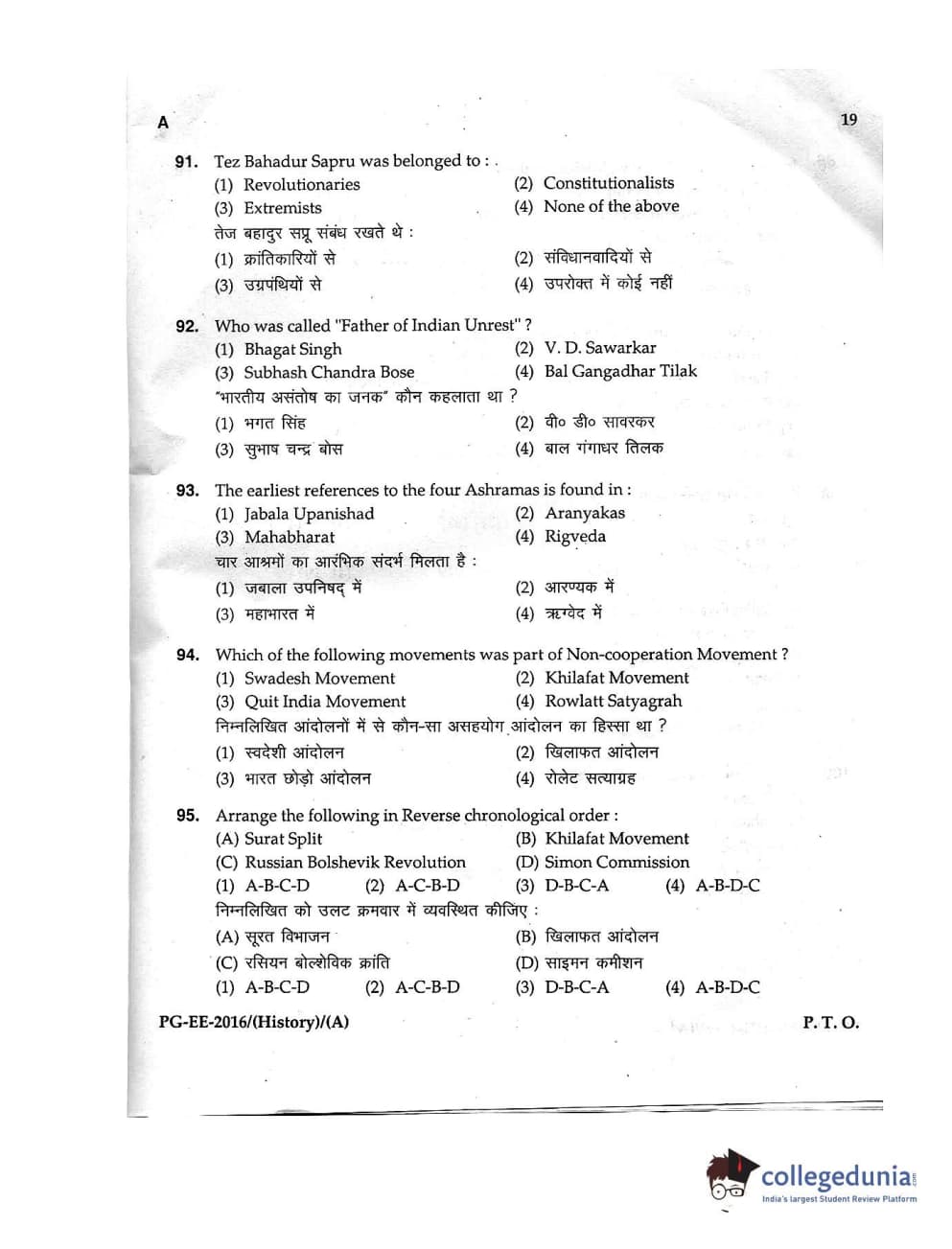 MDUCEE 2016 M.A. (History) Set A Question Paper with Answer Key PDFs