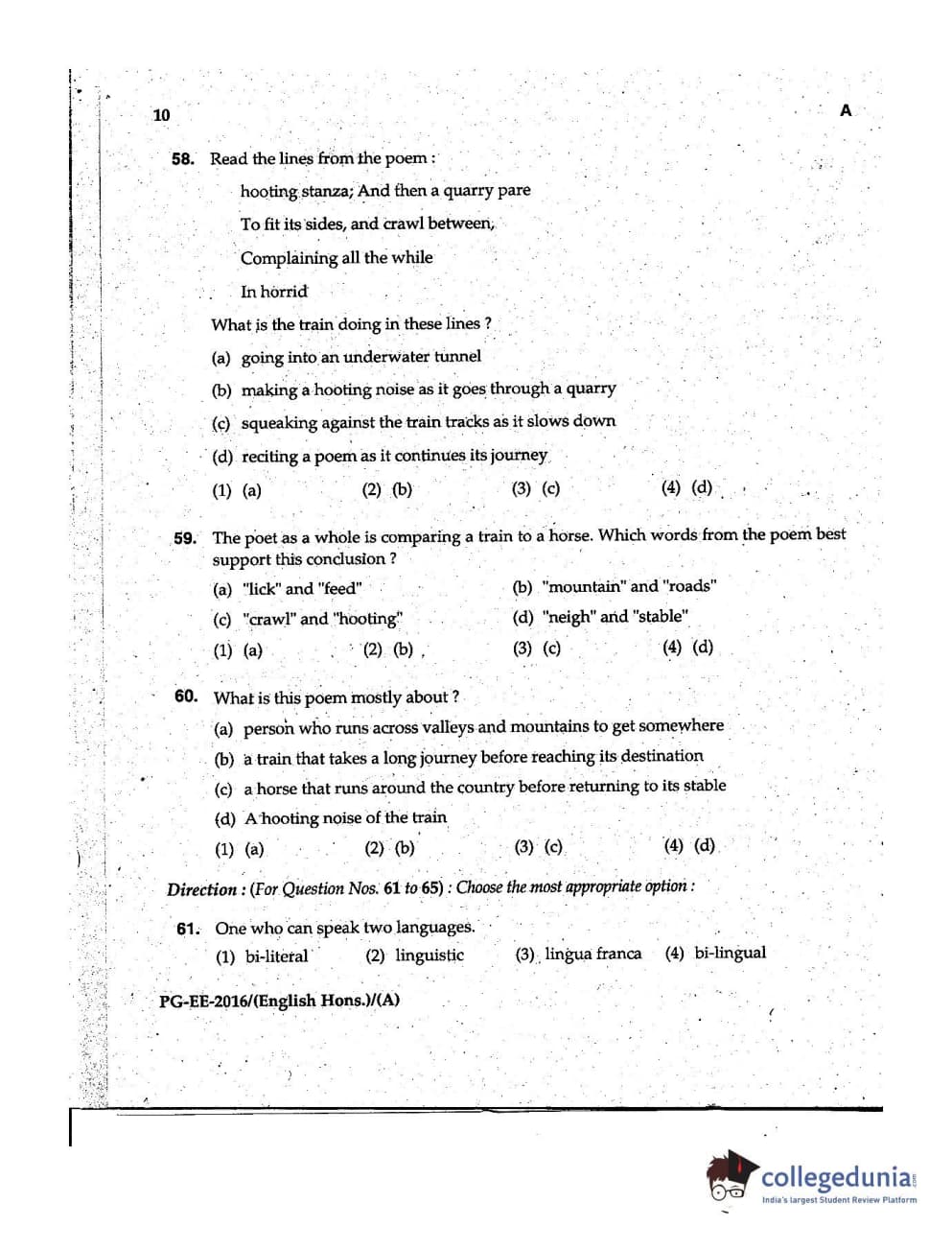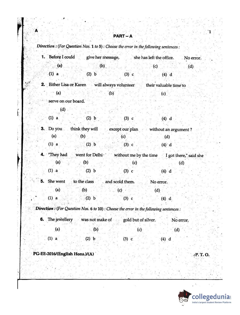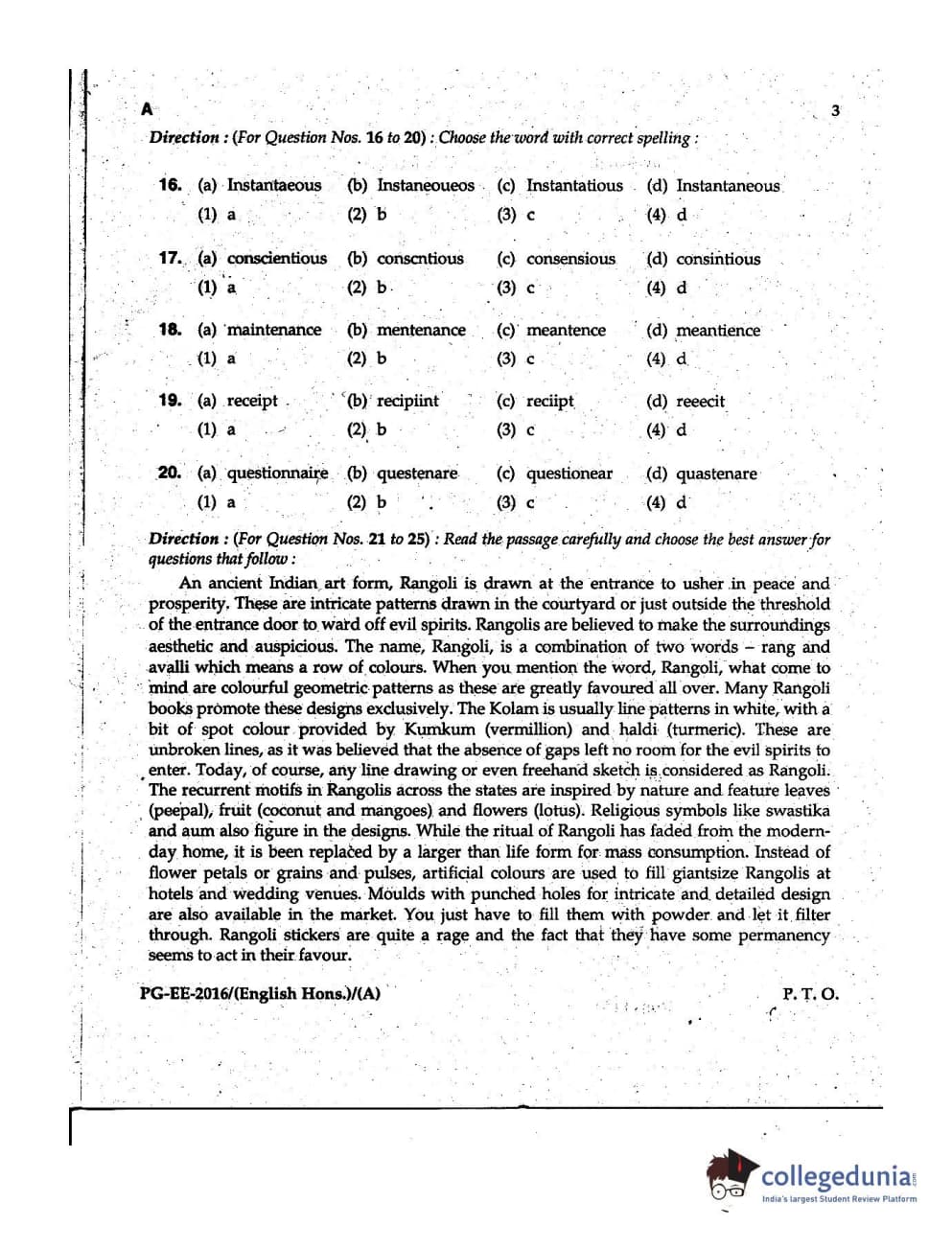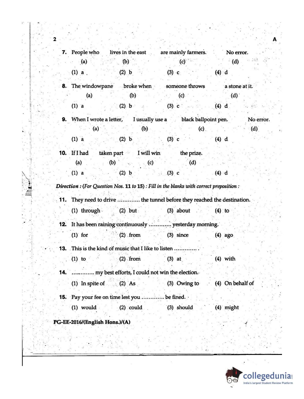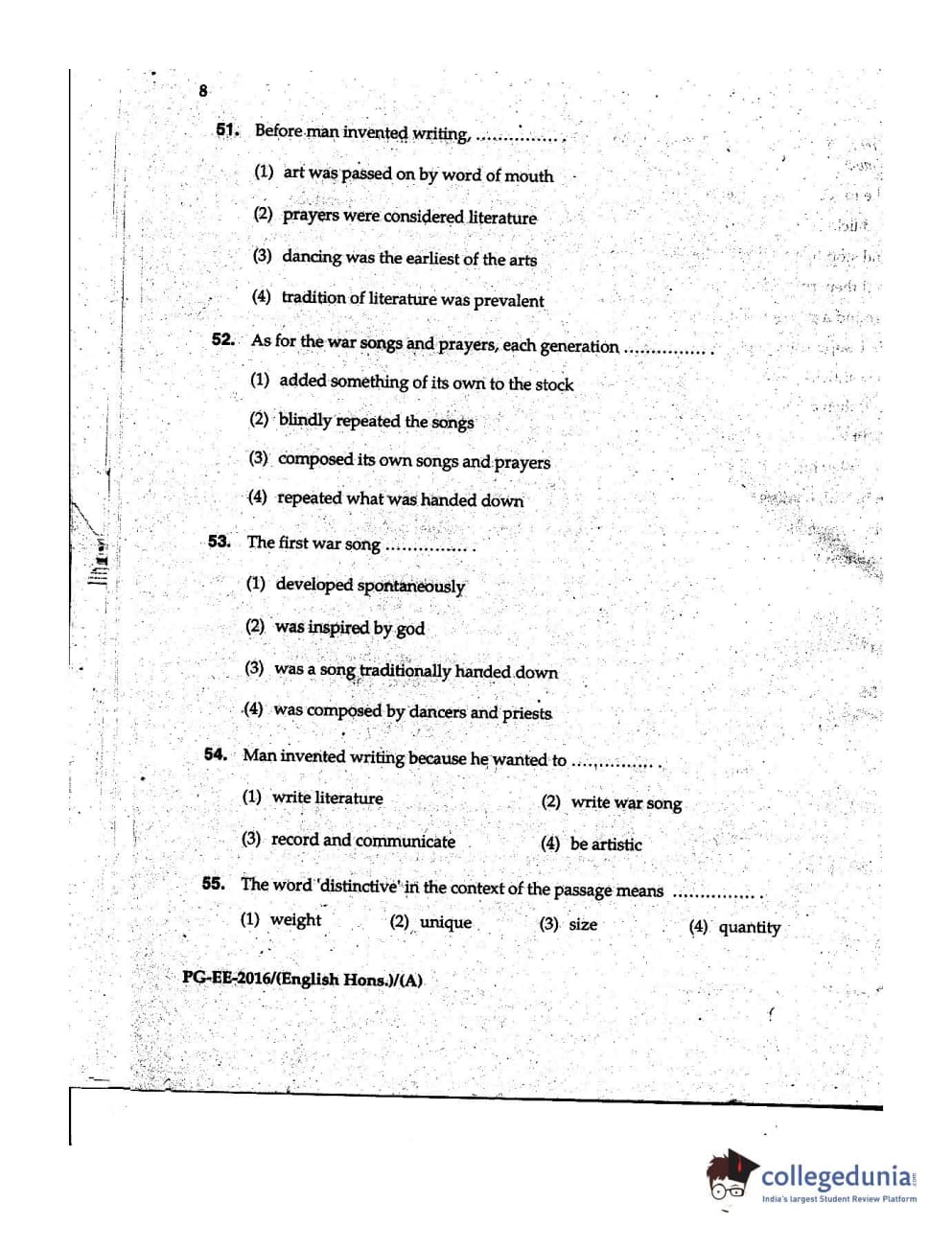 MDUCEE 2016 M.A. (Hons.) English 5 year Integrated Set A Question Paper with Answer Key PDFs