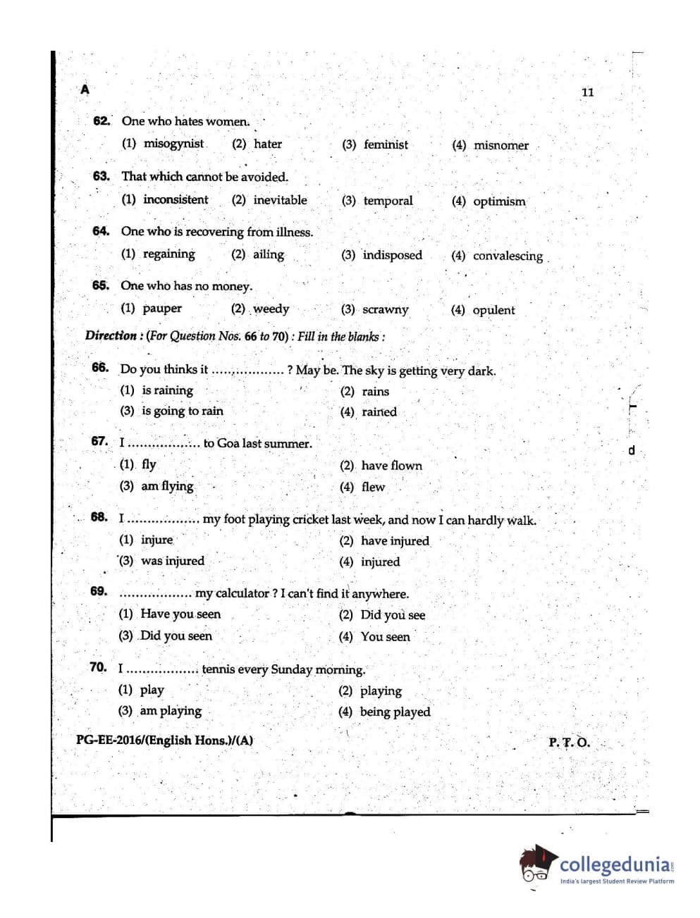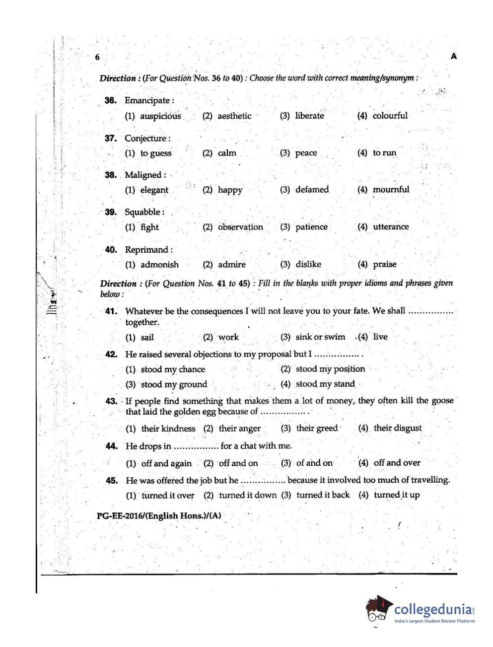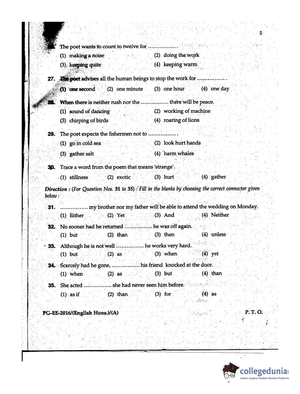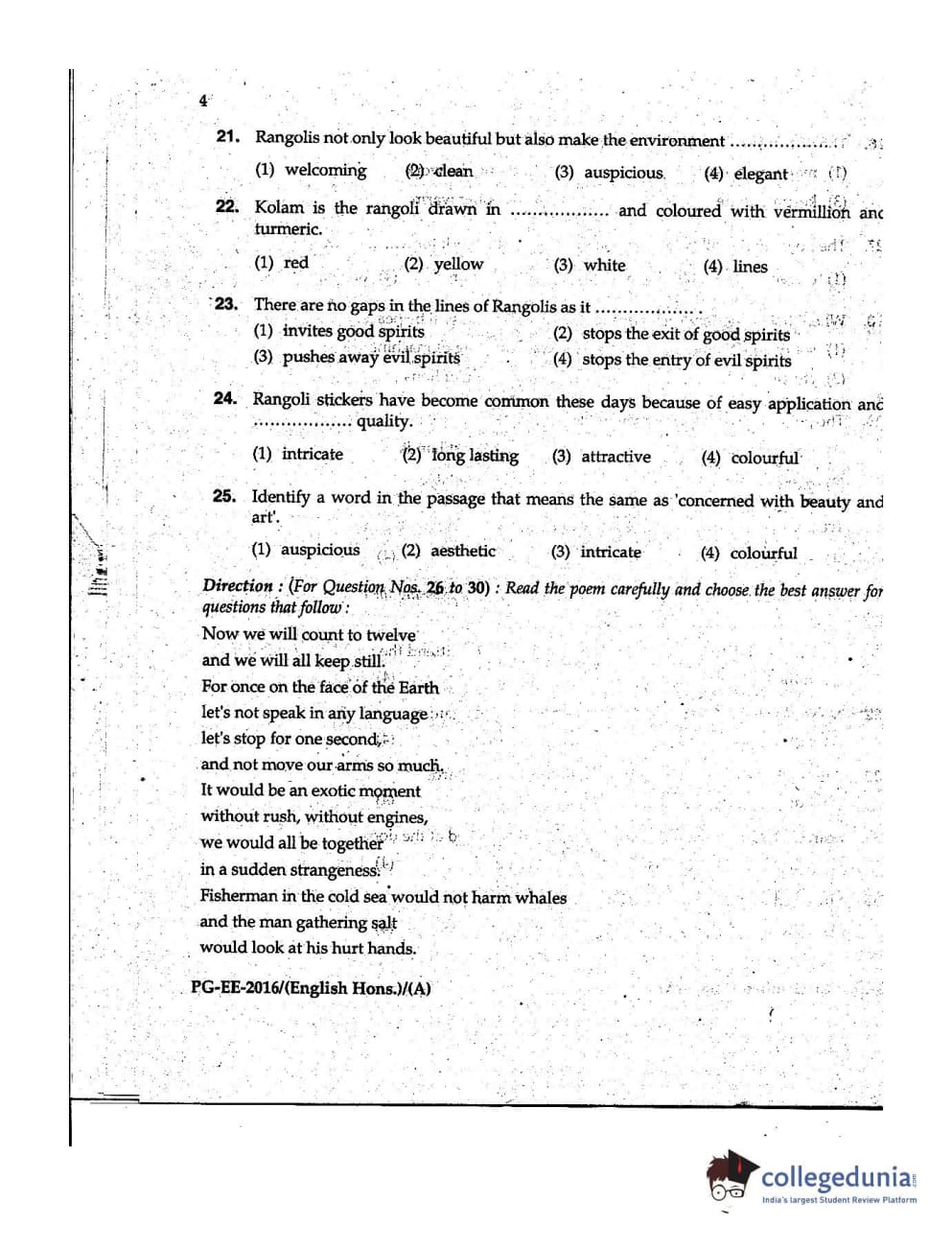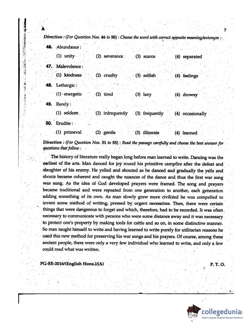 MDUCEE 2016 M.A. (Hons.) English 5 year Integrated Set A Question Paper with Answer Key PDFs