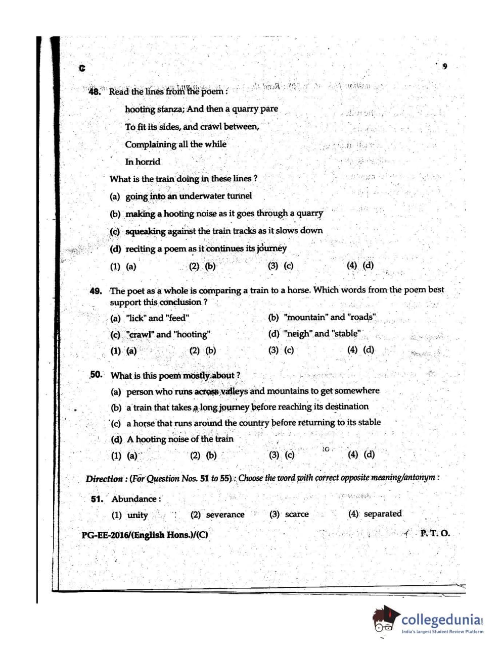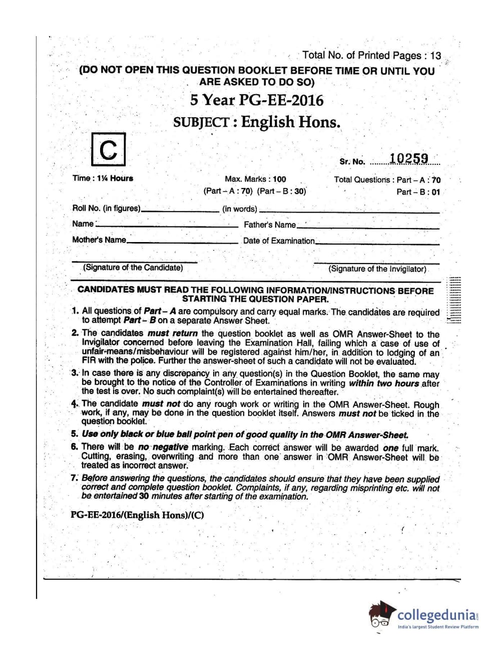 MDUCEE 2016 M.A. (Hons.) English 5 year Integrated Set C Question paper with answer key pdf is available for download. The exam was successfully organized by Maharishi Dayanand University. The question paper comprised a total of 100 questions.