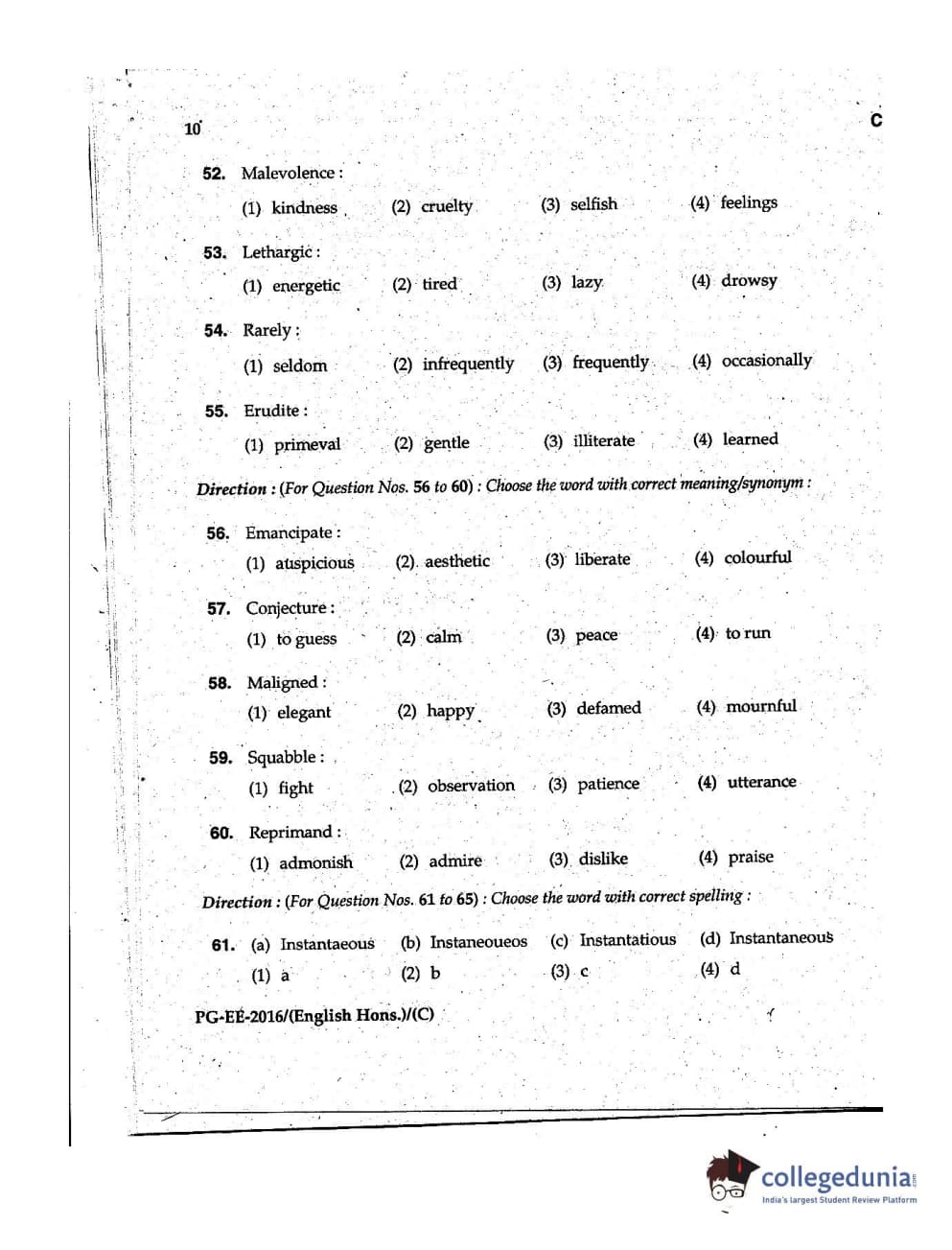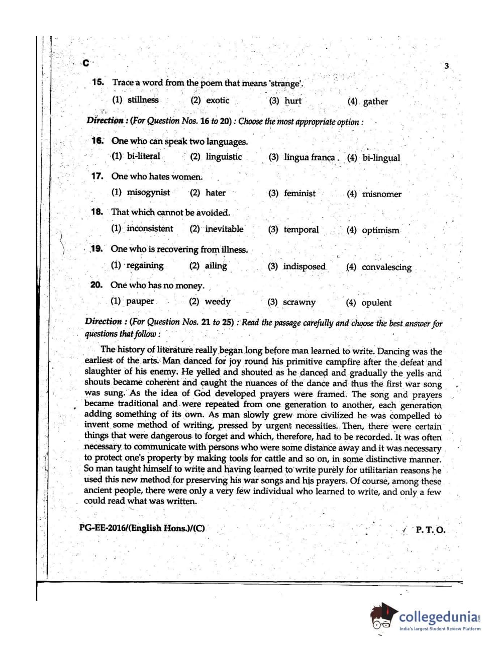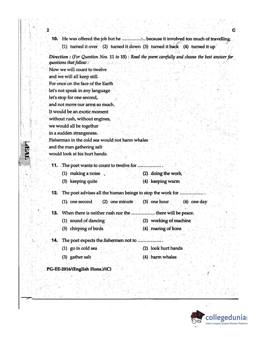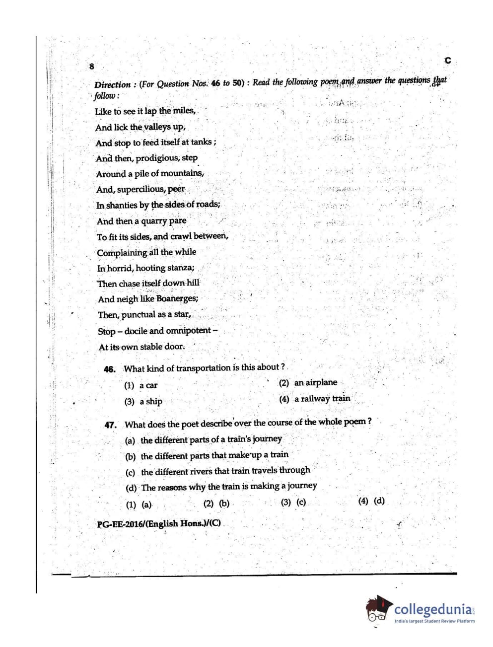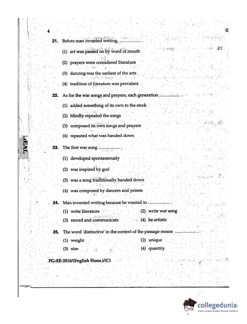 MDUCEE 2016 M.A. (Hons.) English 5 year Integrated Set C Question Paper with Answer Key PDFs