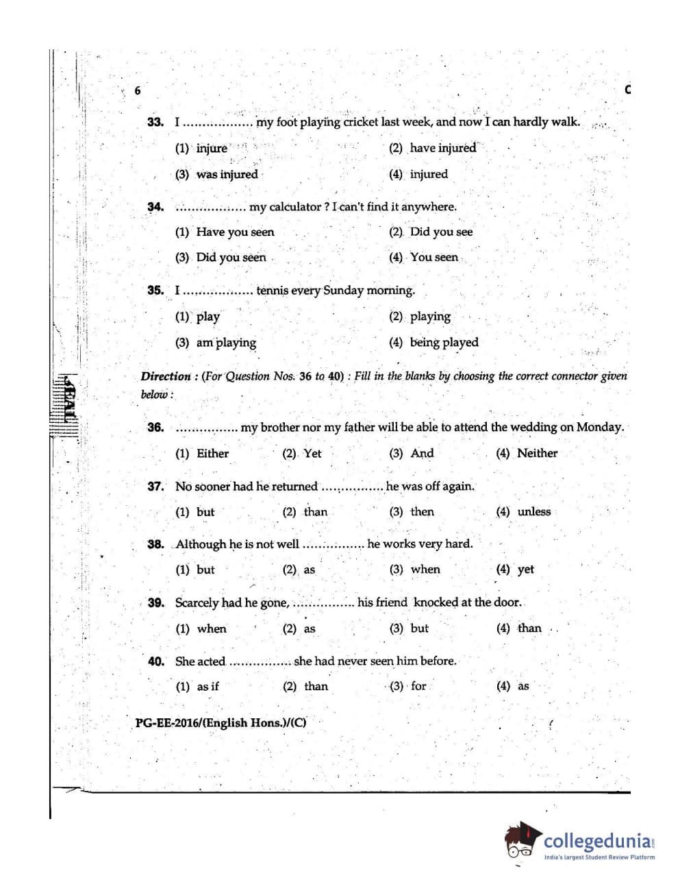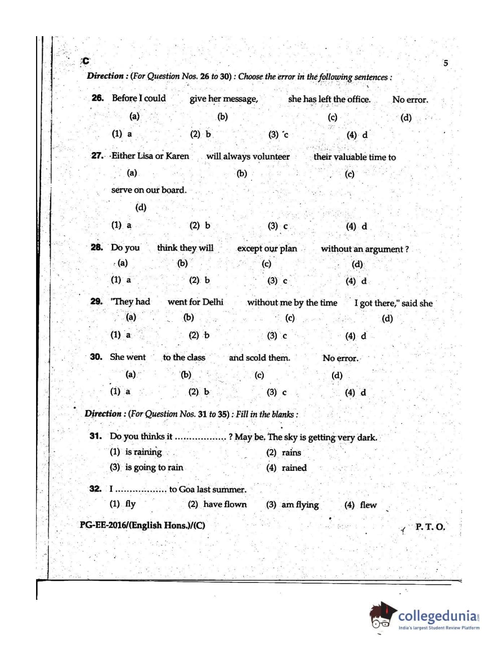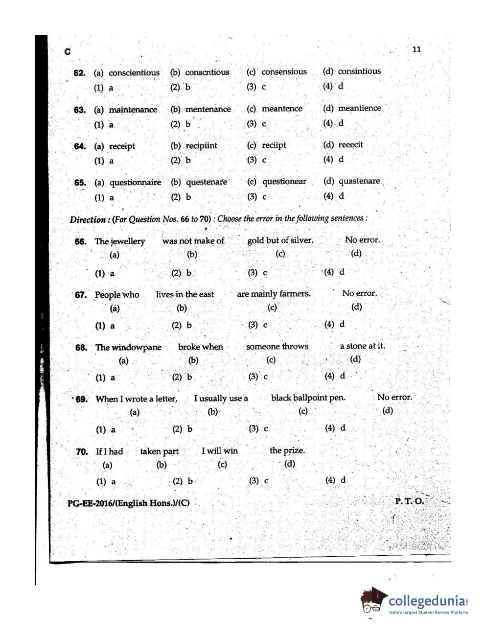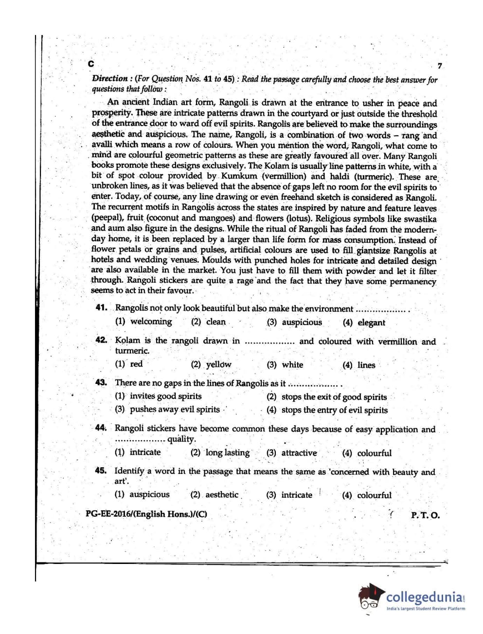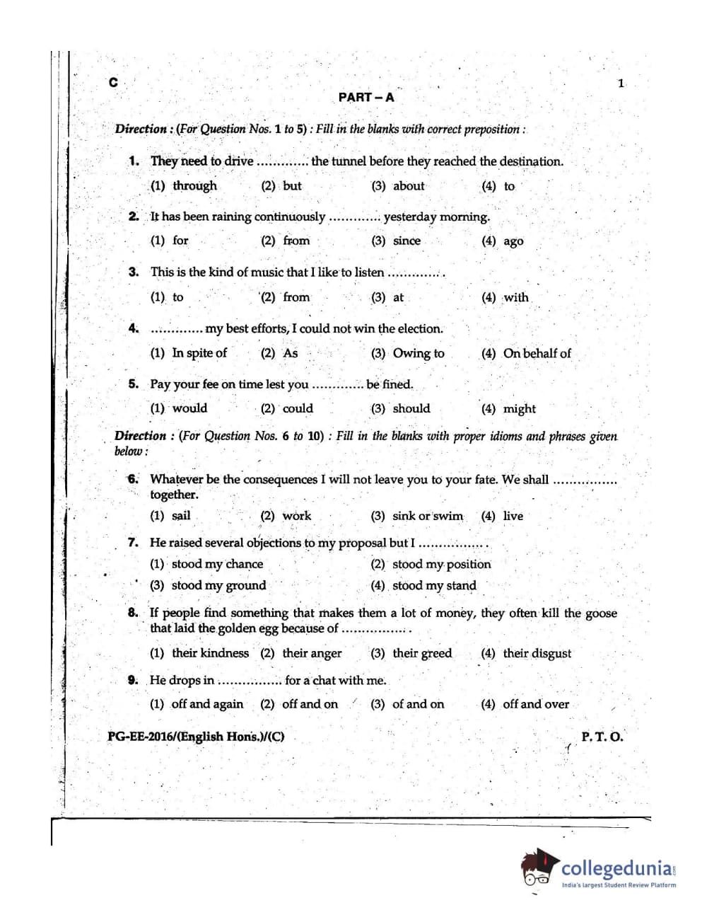 MDUCEE 2016 M.A. (Hons.) English 5 year Integrated Set C Question Paper with Answer Key PDFs