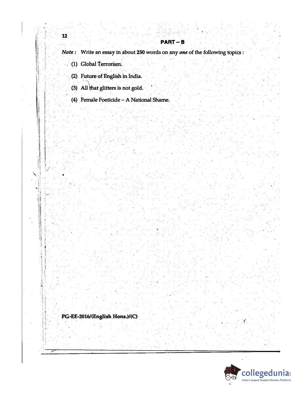 | MDUCEE 2016 M.A. (Hons.) English 5 year Integrated Set C Question Paper PDF | MDUCEE 2016 M.A. (Hons.) English 5 year Integrated Set C Answer Key PDF |
