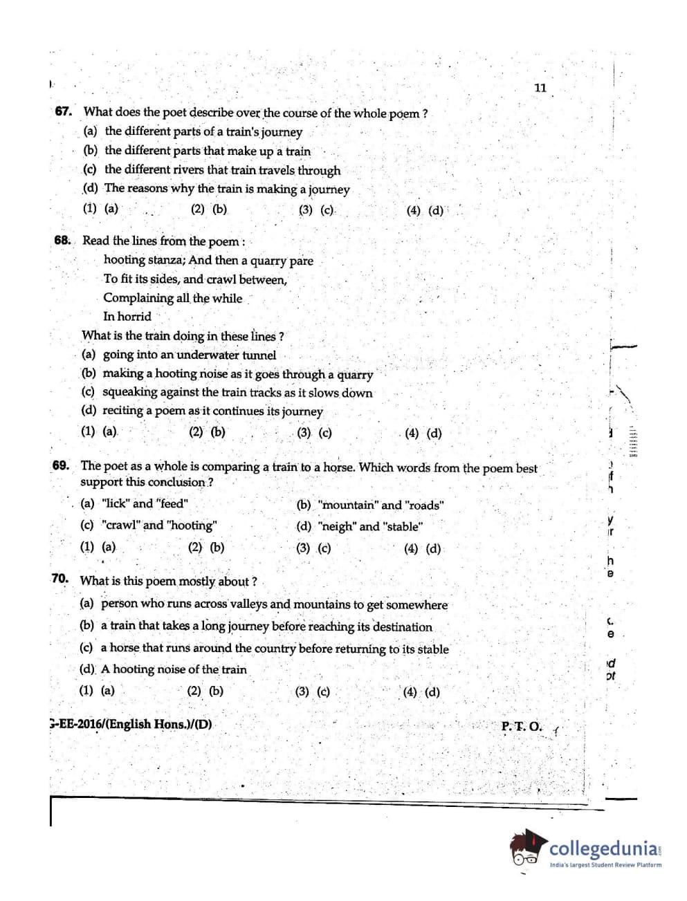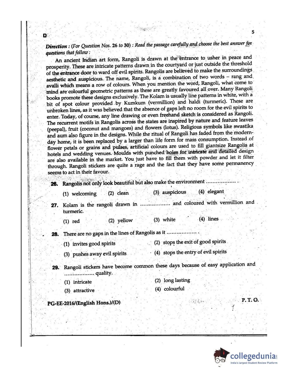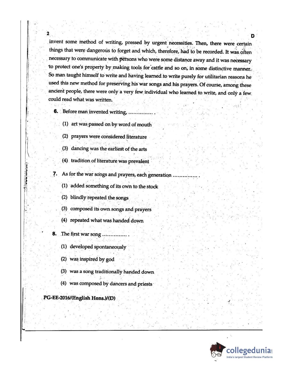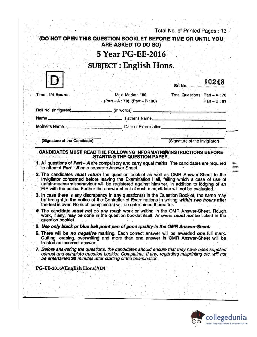 MDUCEE 2016 M.A. (Hons.) English 5 year Integrated Set D Question Paper with Answer Key PDFs