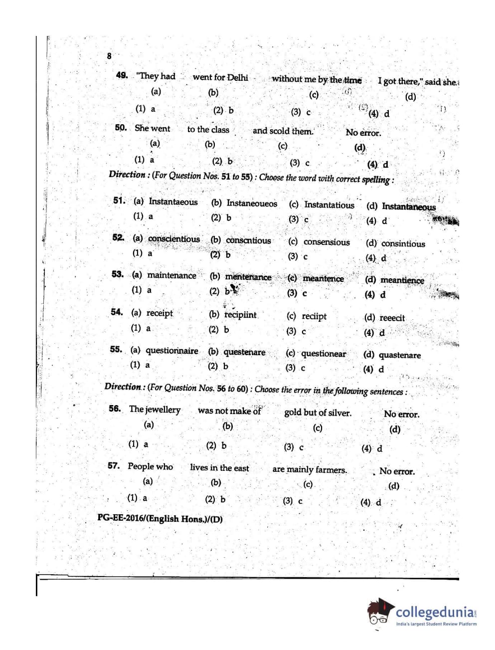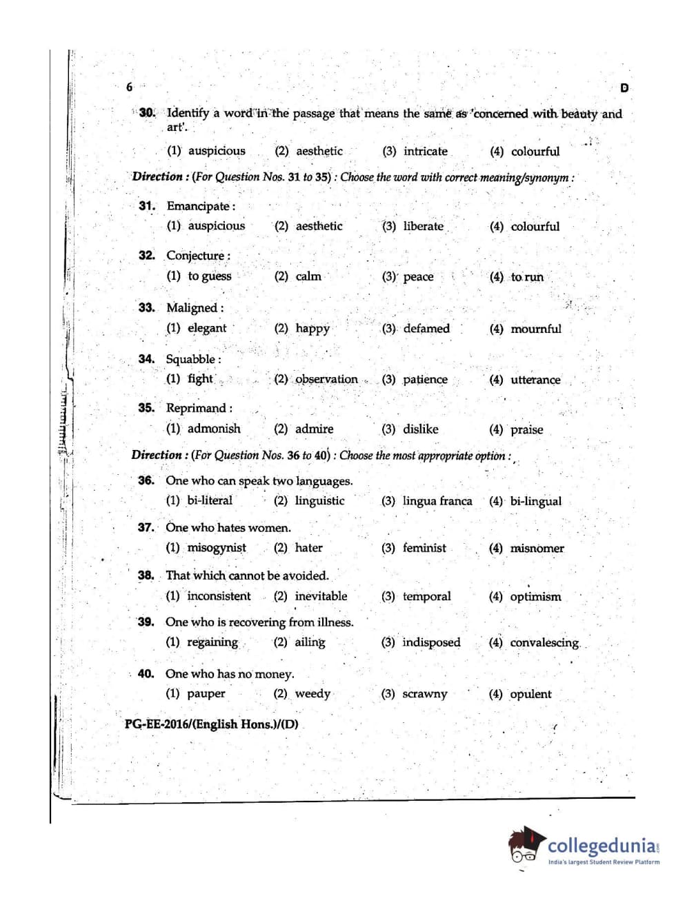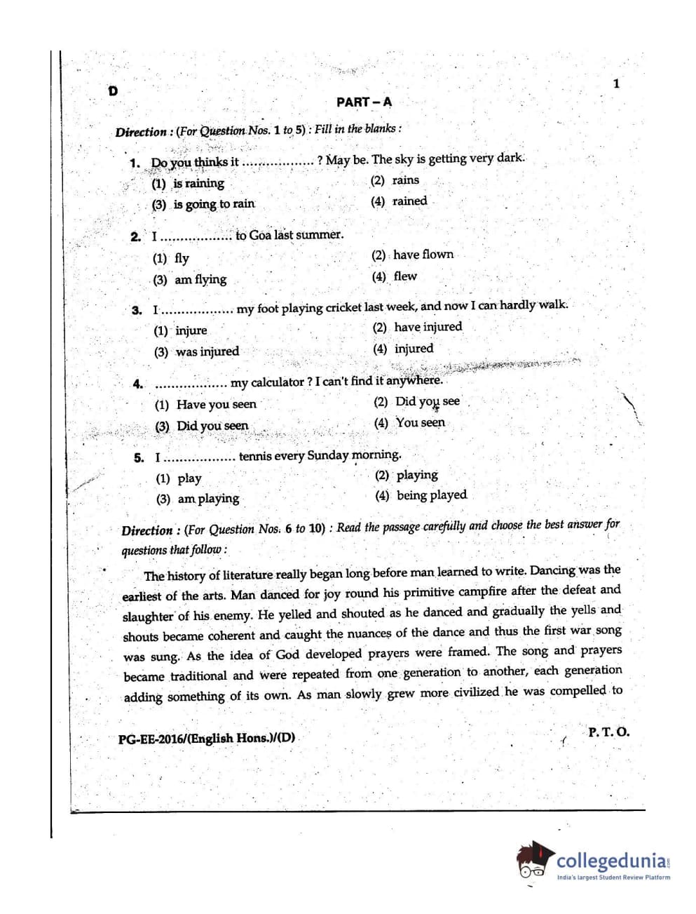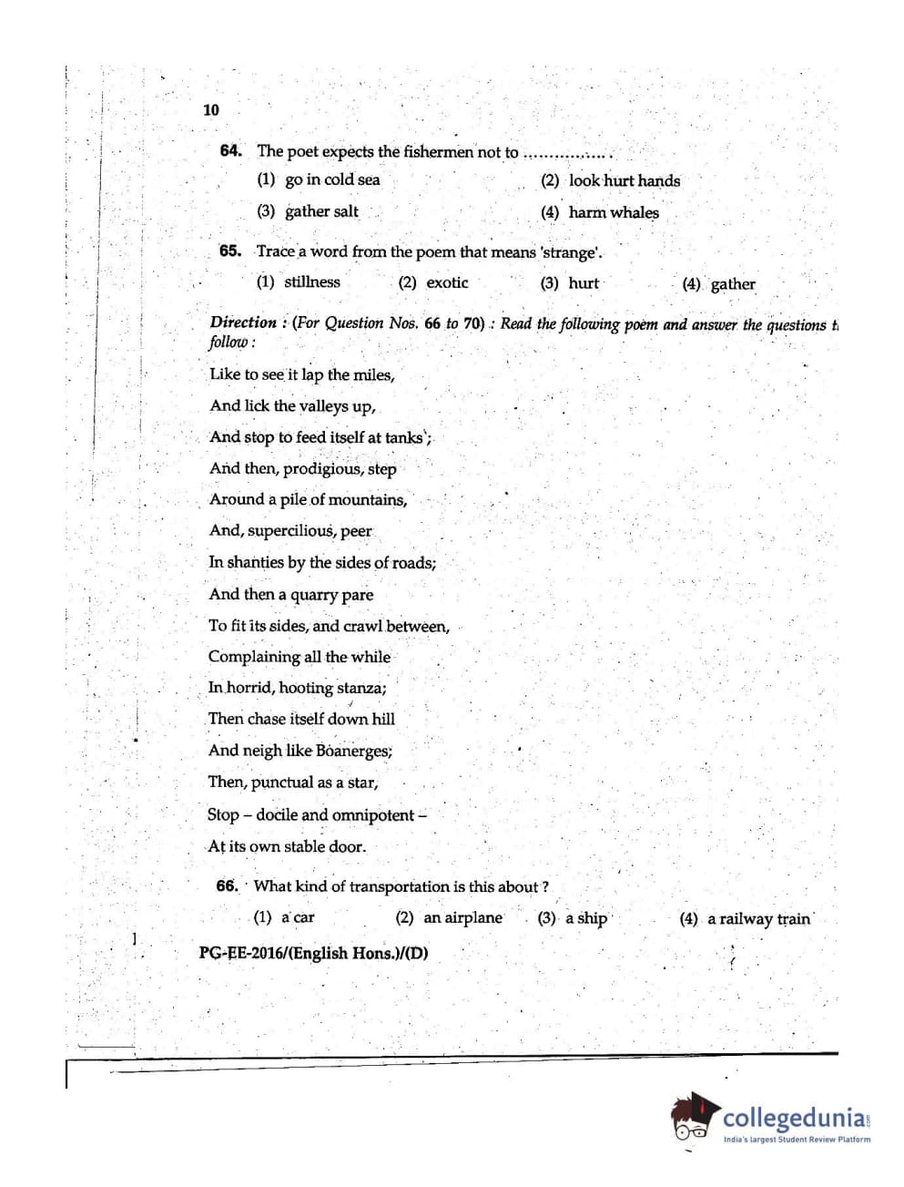 MDUCEE 2016 M.A. (Hons.) English 5 year Integrated Set D Question Paper with Answer Key PDFs