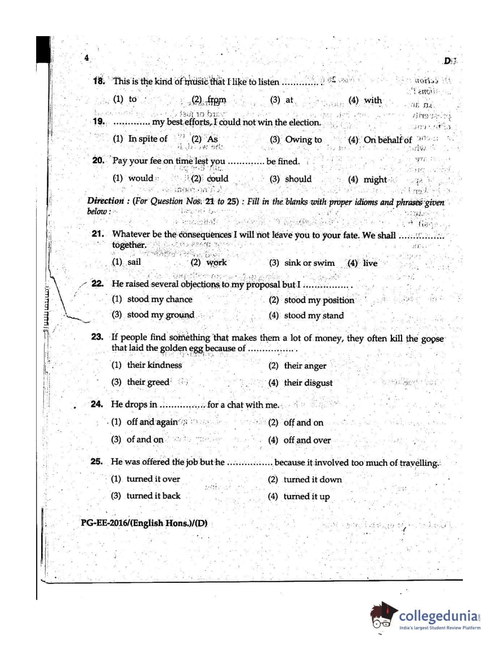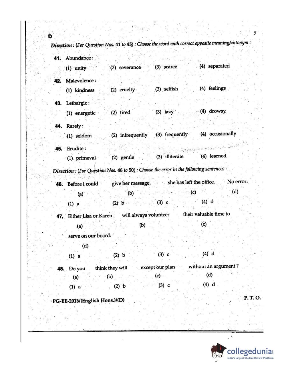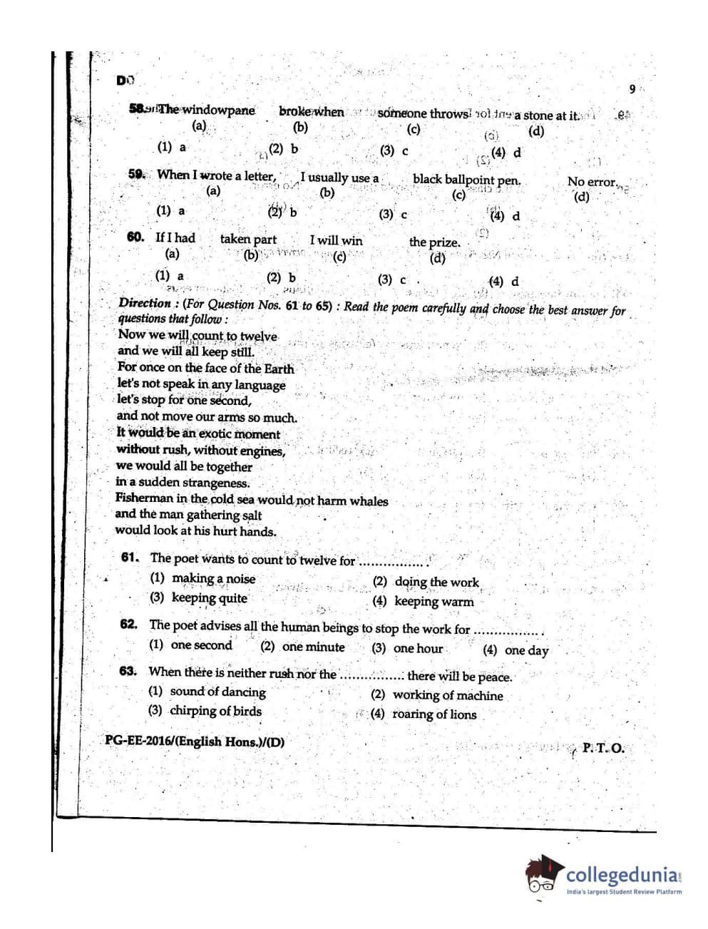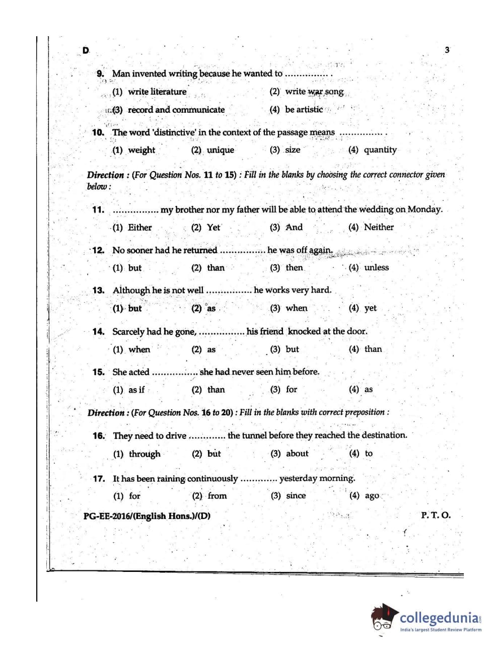 MDUCEE 2016 M.A. (Hons.) English 5 year Integrated Set D Question Paper with Answer Key PDFs