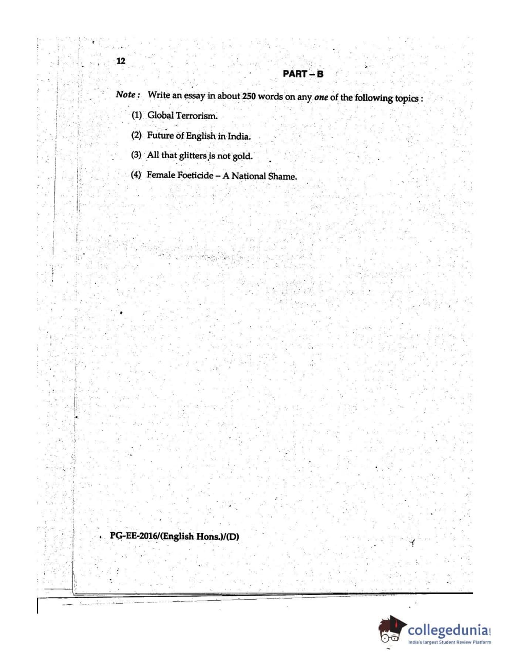 | MDUCEE 2016 M.A. (Hons.) English 5 year Integrated Set D Question Paper PDF | MDUCEE 2016 M.A. (Hons.) English 5 year Integrated Set D Answer Key PDF |