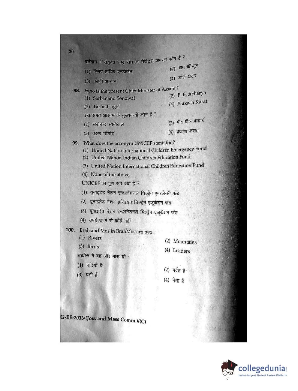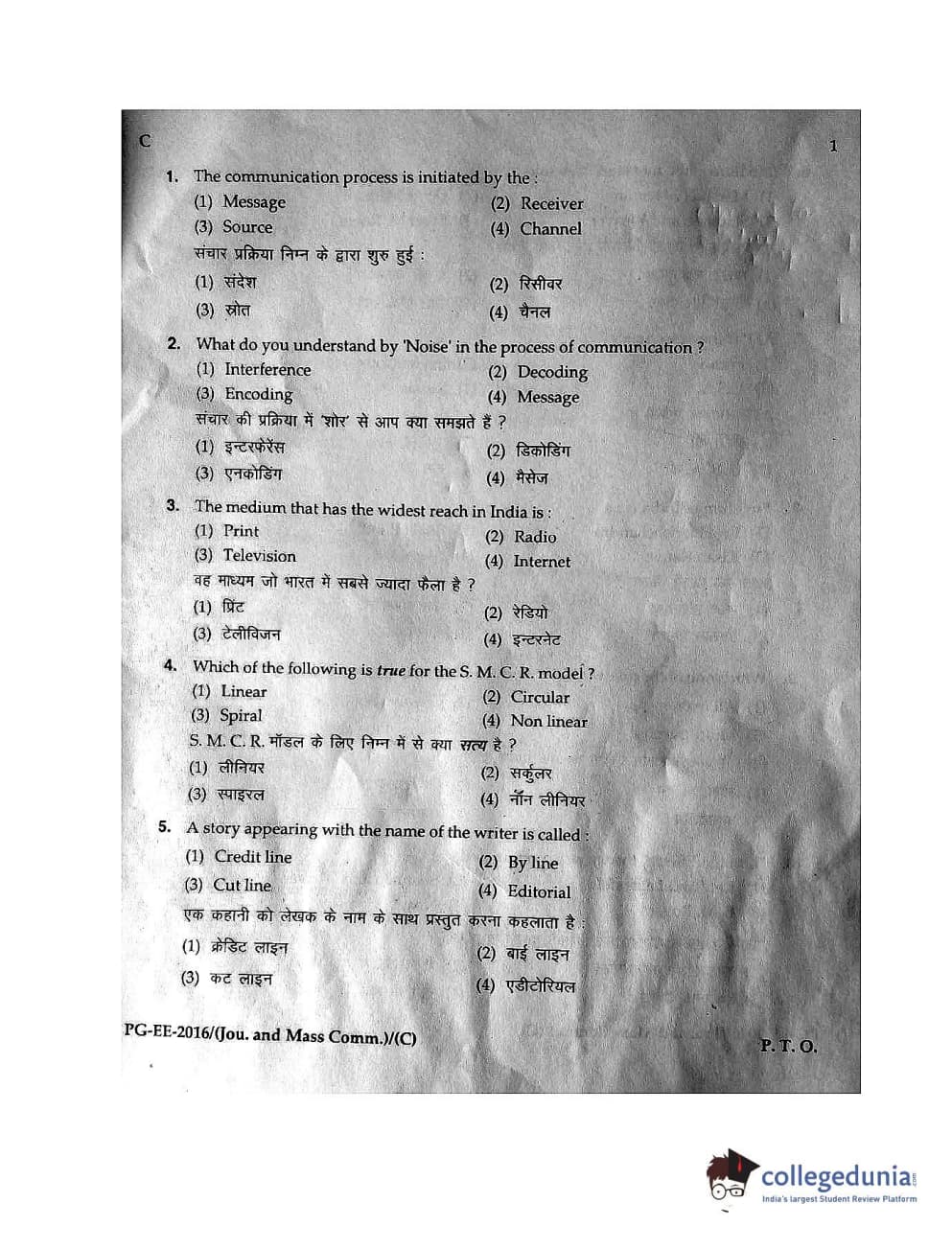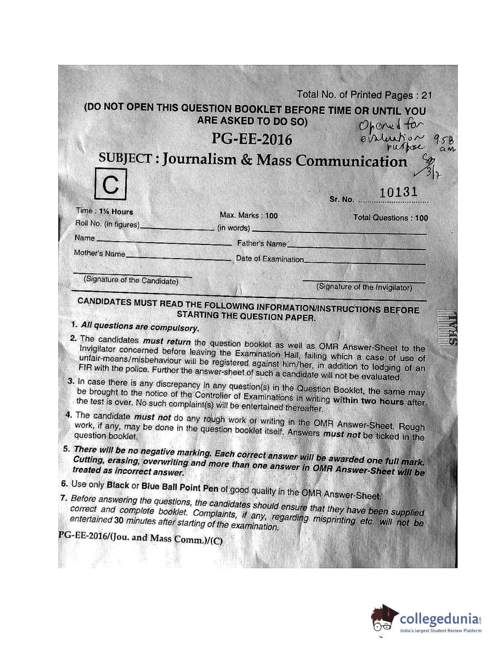 MDUCEE 2016 M.A. (Jounalism and Mass Communication) Set C Question paper with answer key pdf is available for download. The exam was successfully organized by Maharishi Dayanand University. The question paper comprised a total of 100 questions.