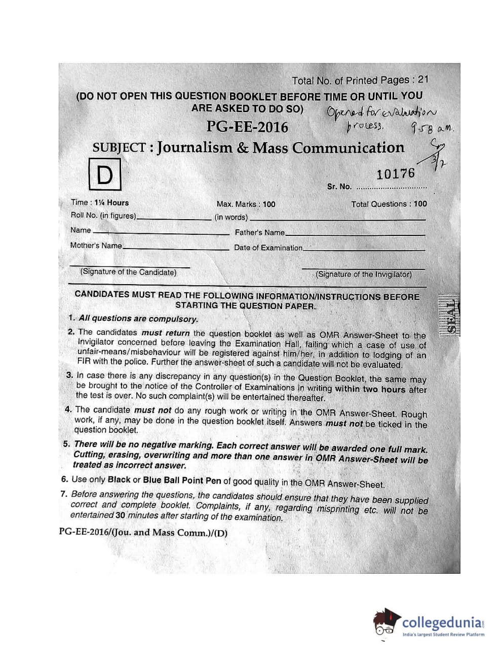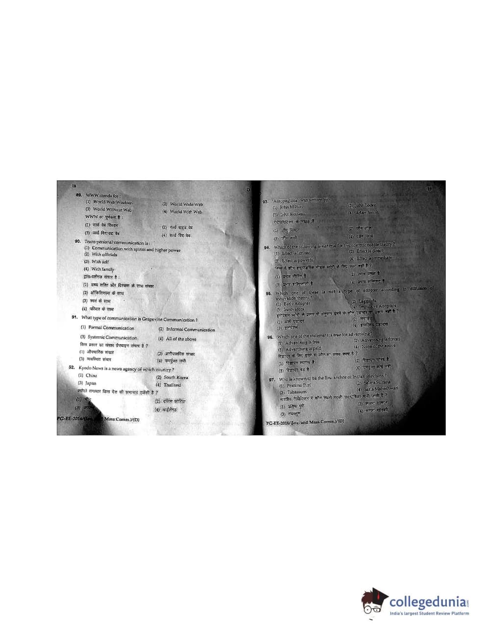 MDUCEE 2016 M.A. (Jounalism and Mass Communication) Set D Question paper with answer key pdf is available for download. The exam was successfully organized by Maharishi Dayanand University. The question paper comprised a total of 100 questions.