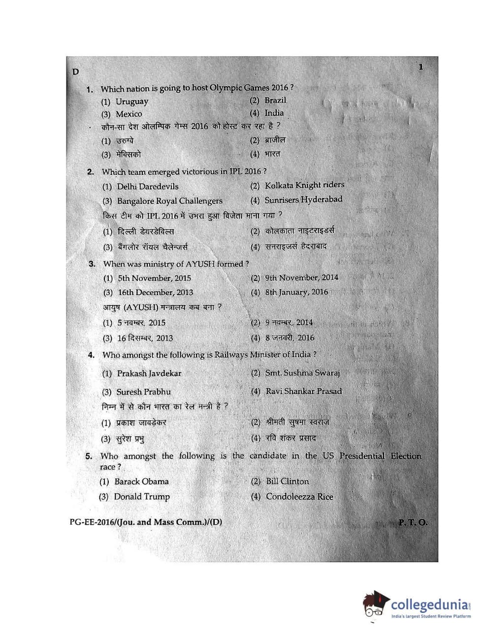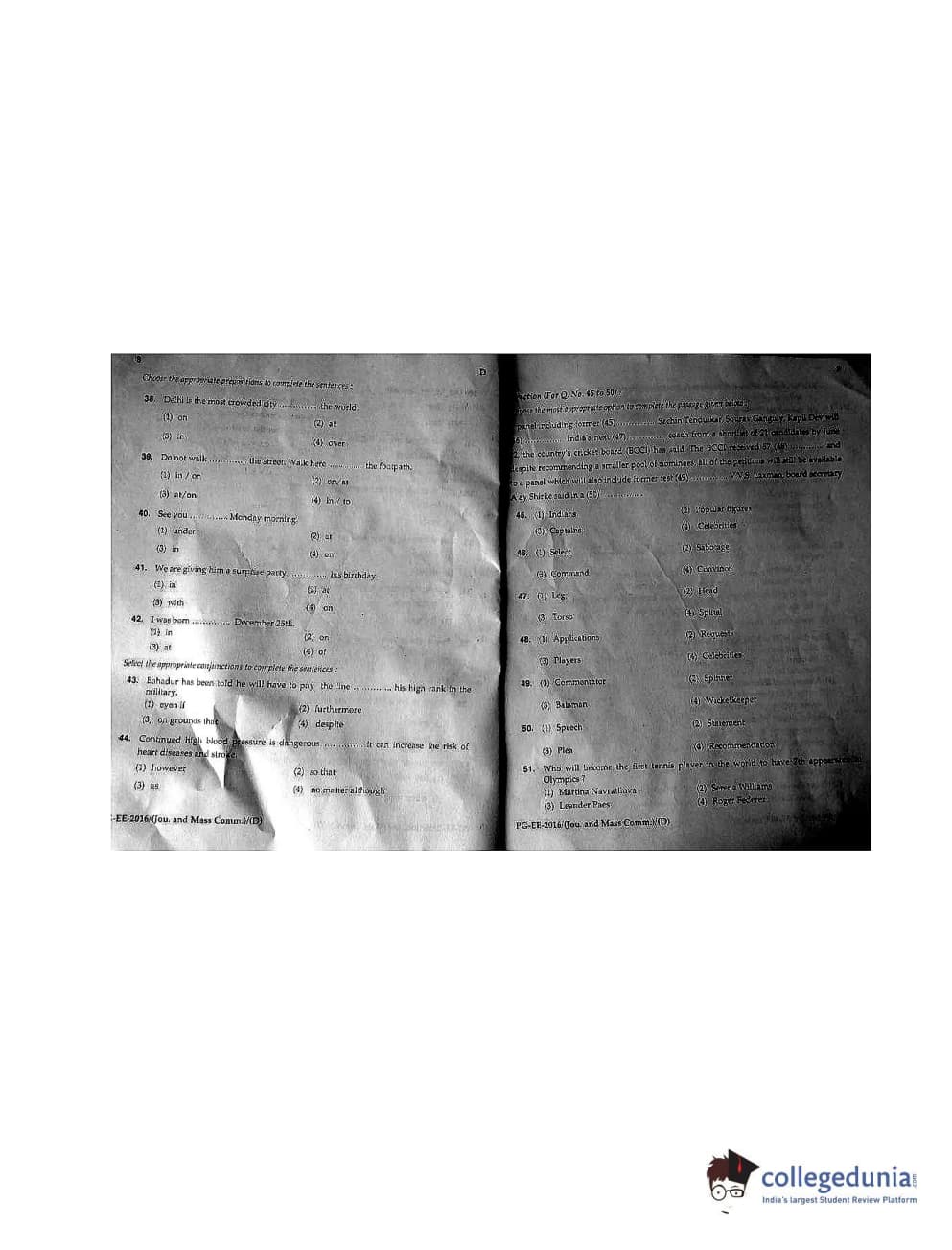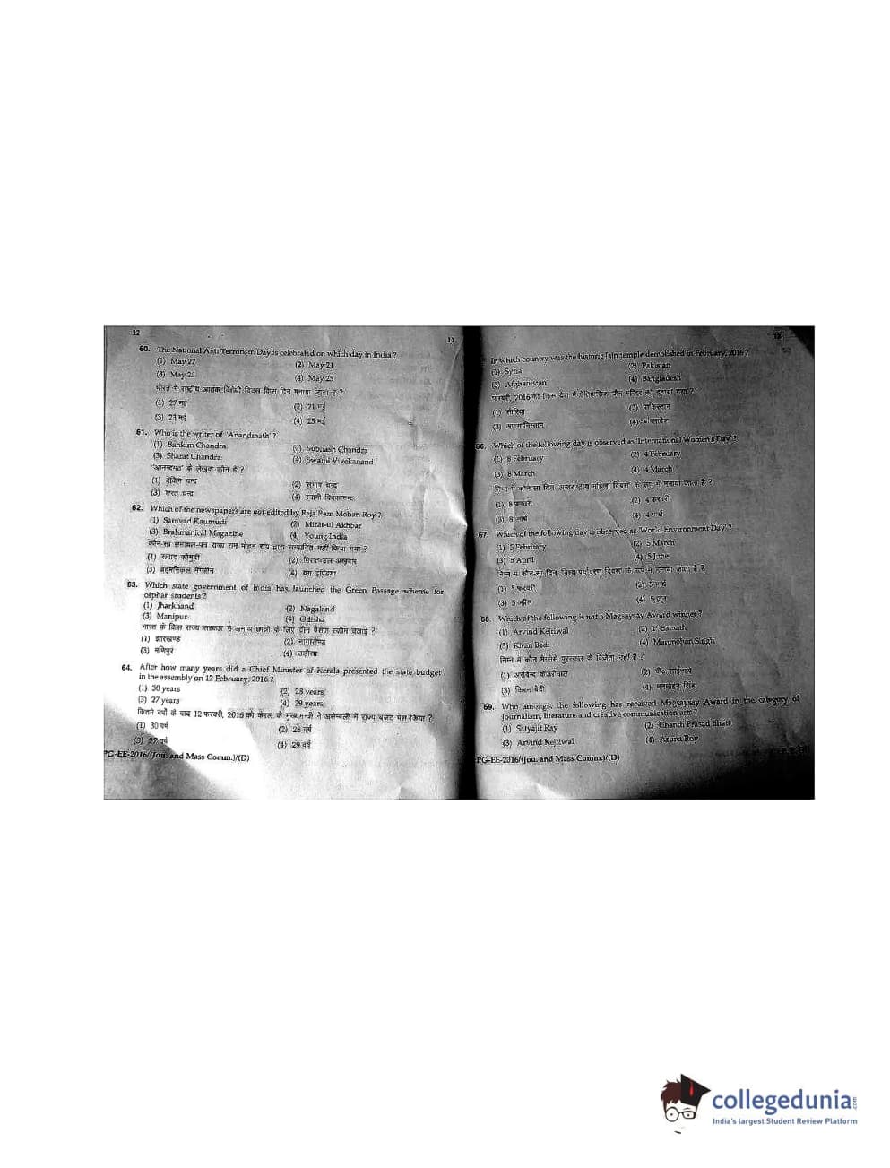 MDUCEE 2016 M.A. (Jounalism and Mass Communication) Set D Question Paper with Answer Key PDFs