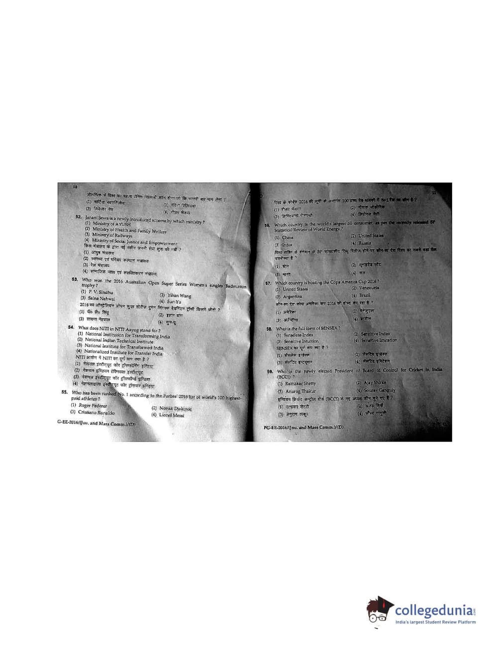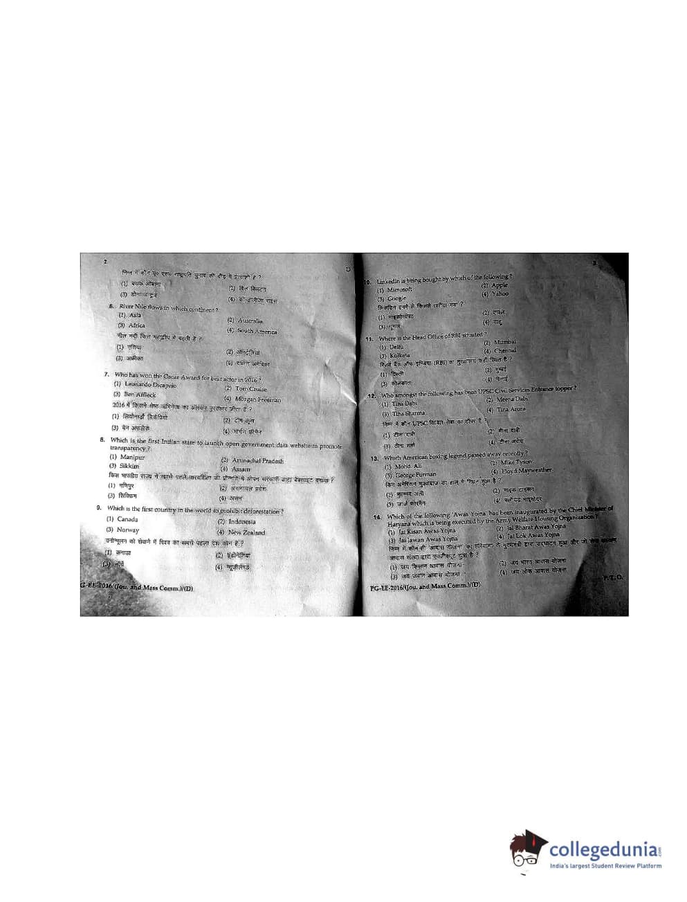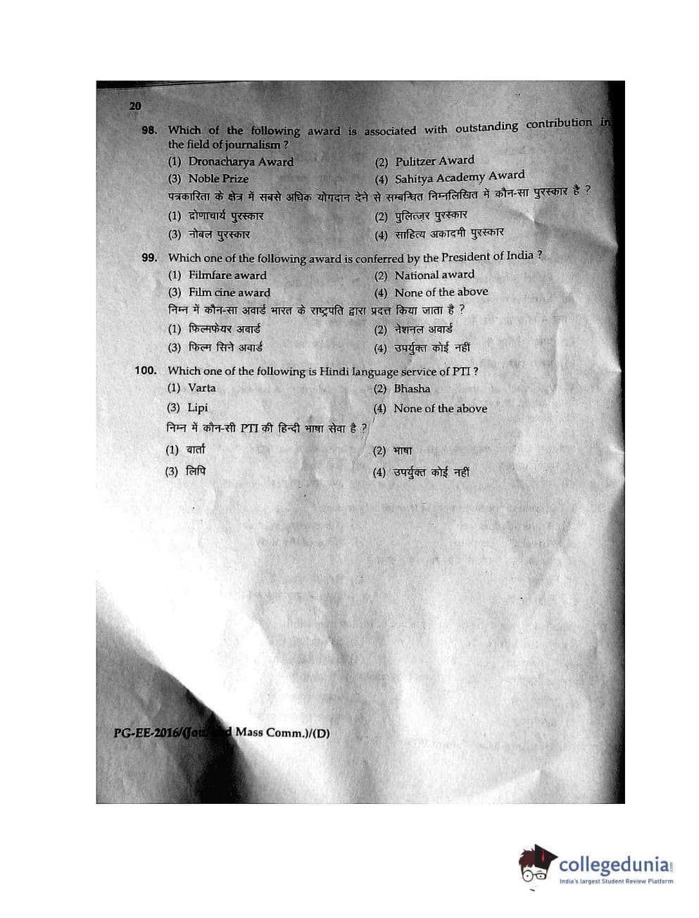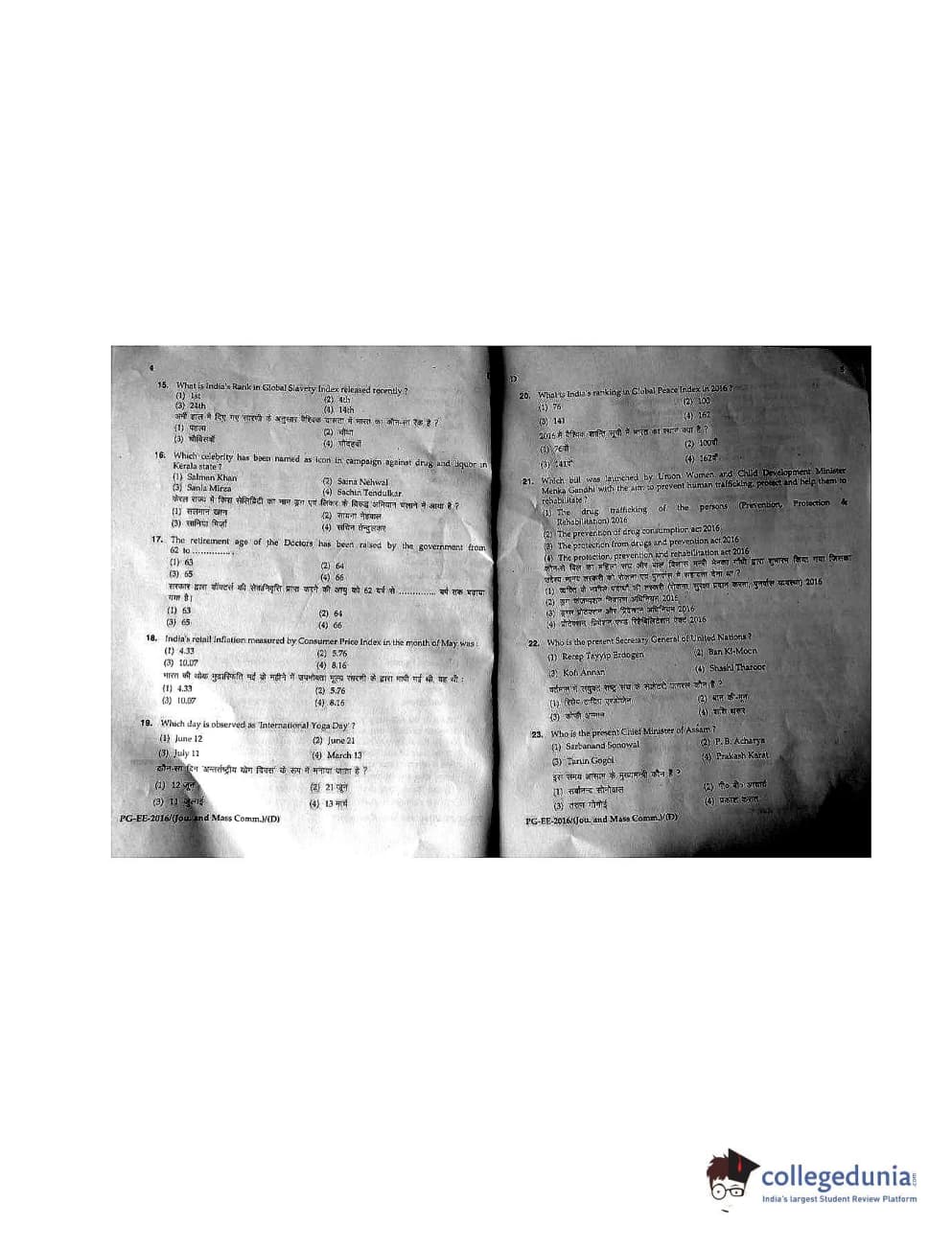 MDUCEE 2016 M.A. (Jounalism and Mass Communication) Set D Question Paper with Answer Key PDFs