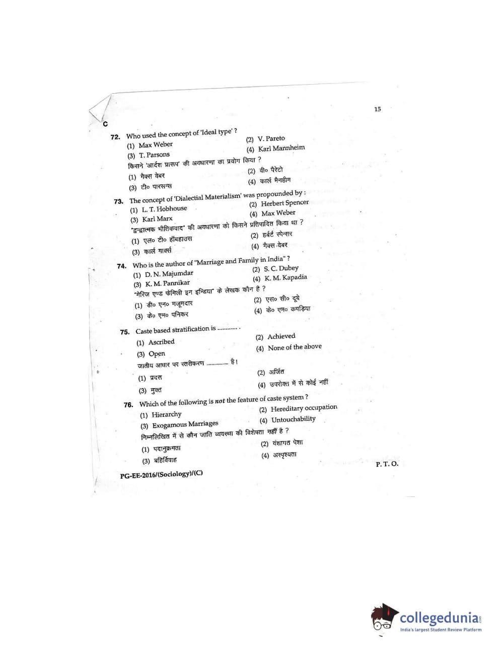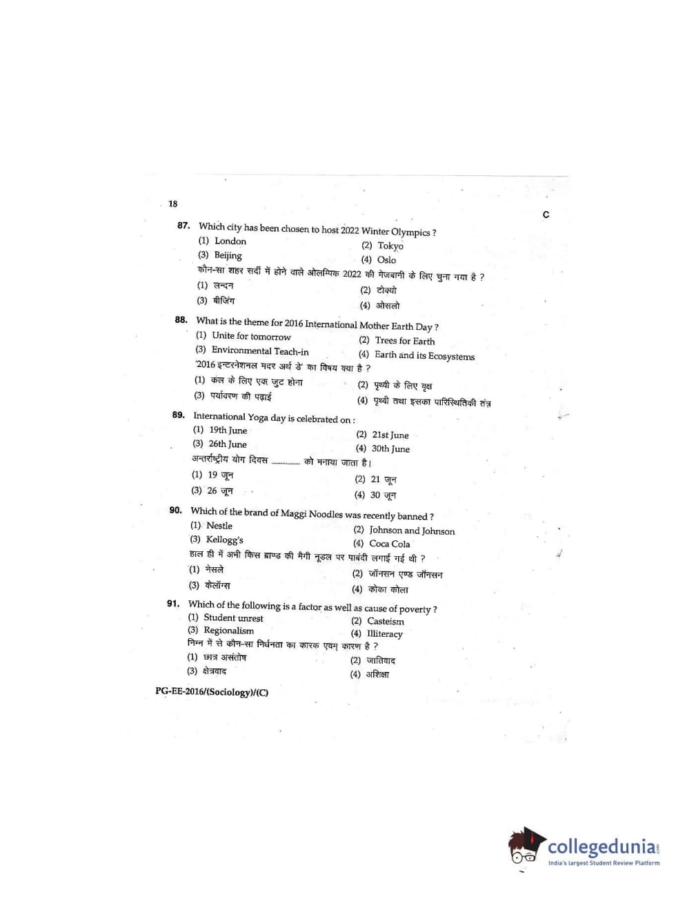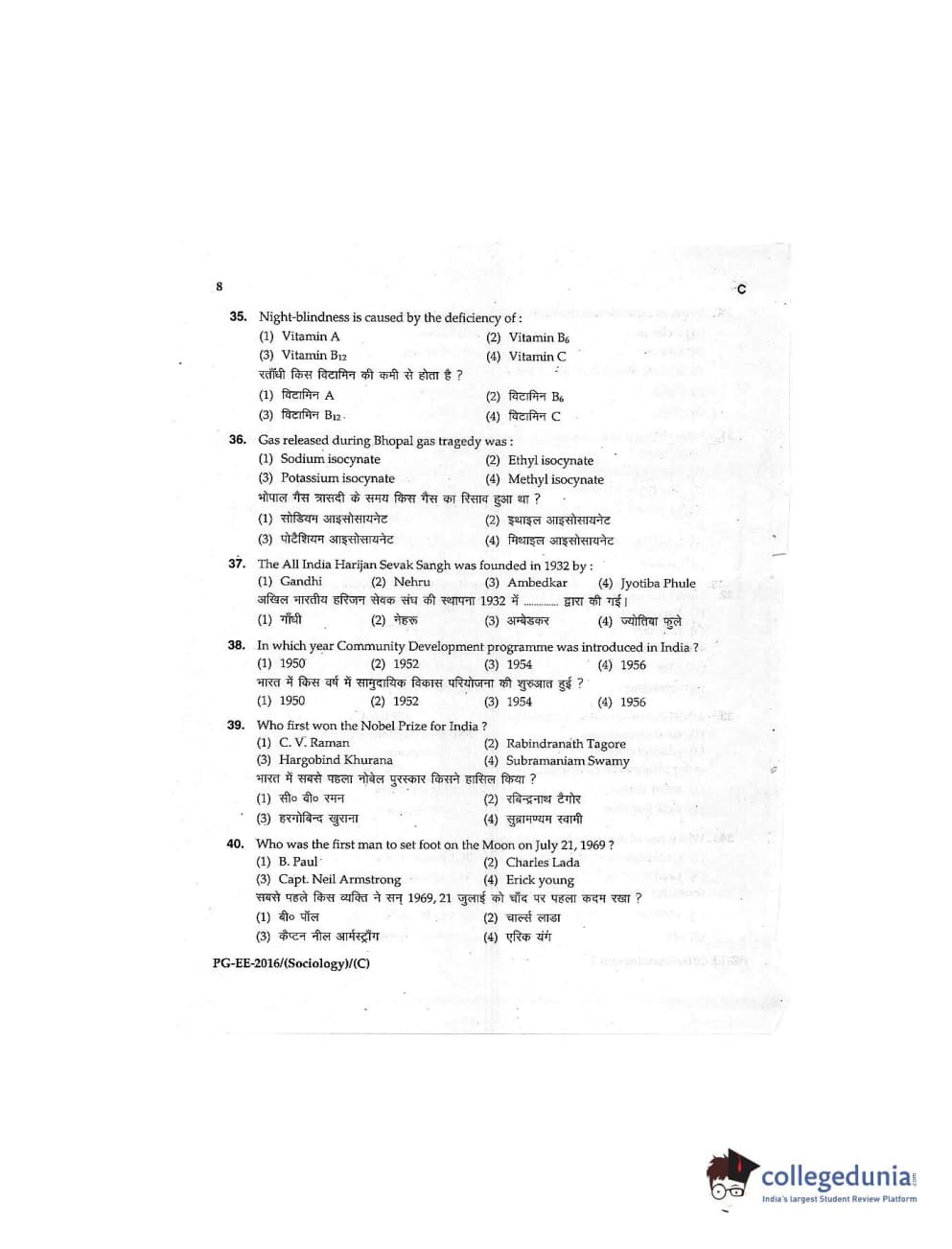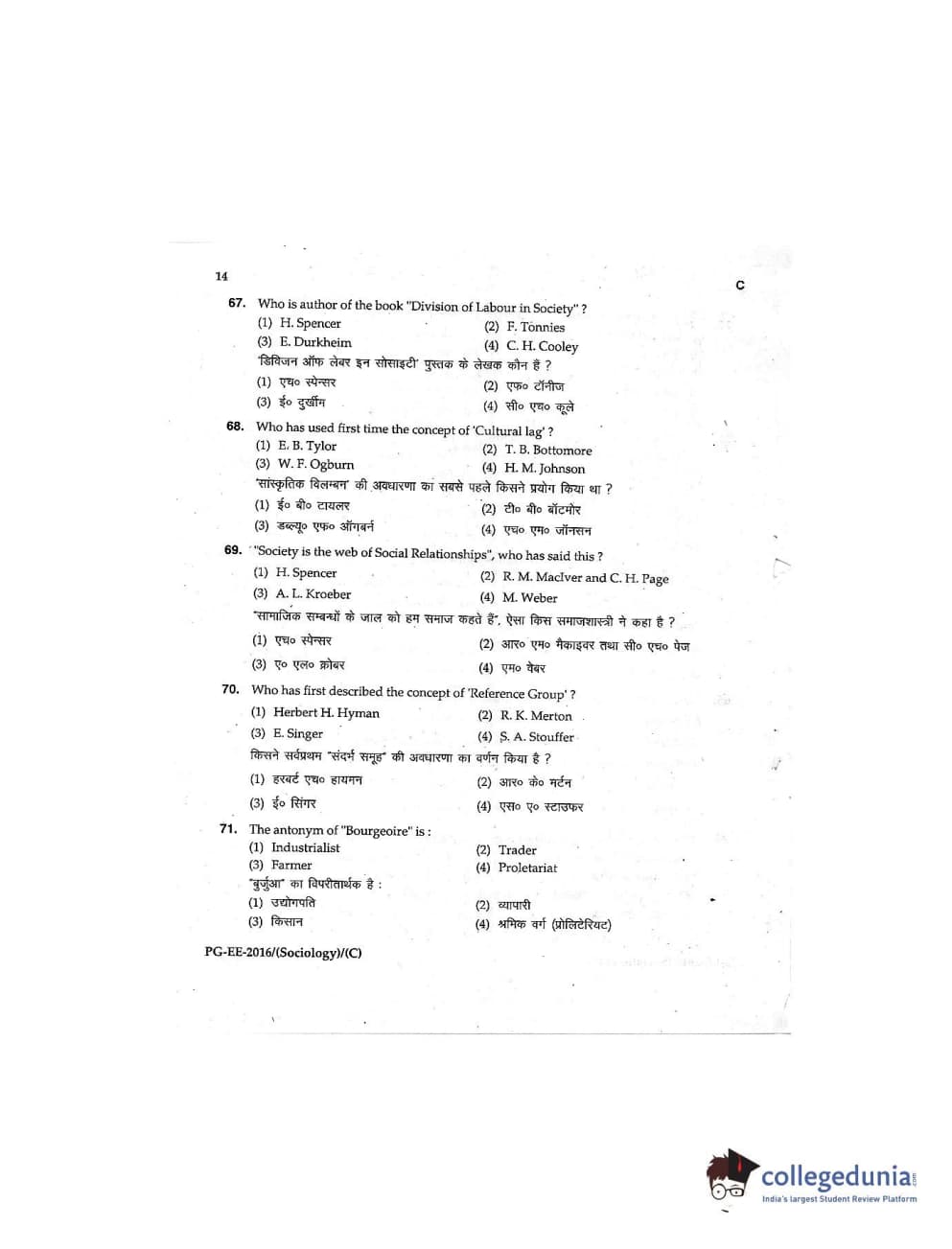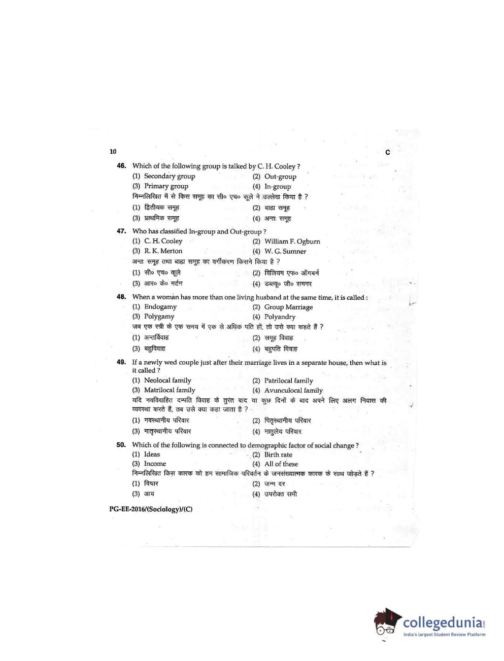 MDUCEE 2016 M.A (Sociology) Set C Question Paper with Answer Key PDFs