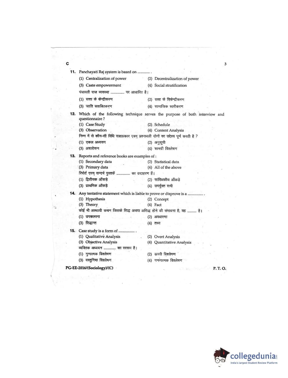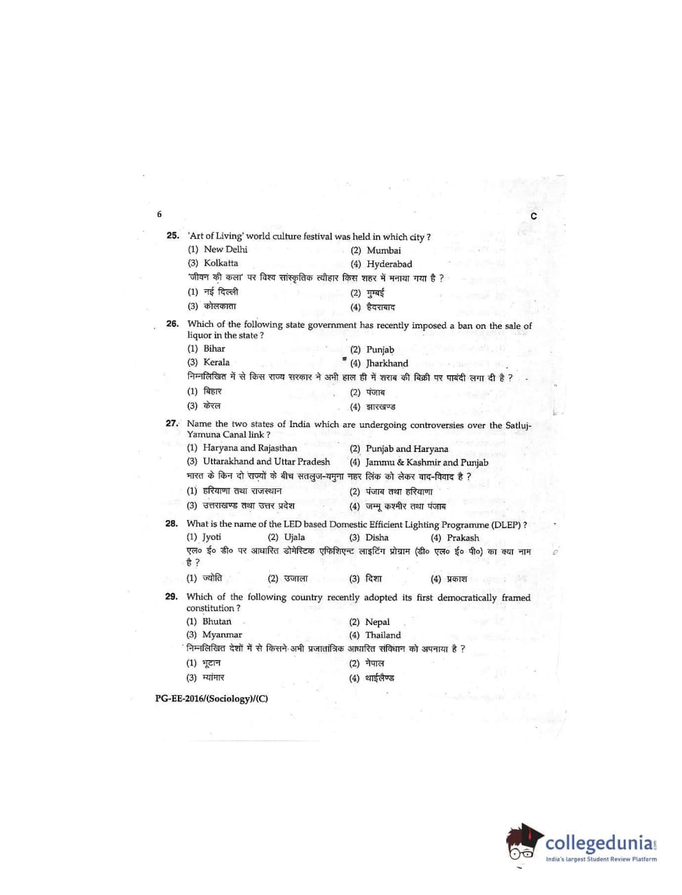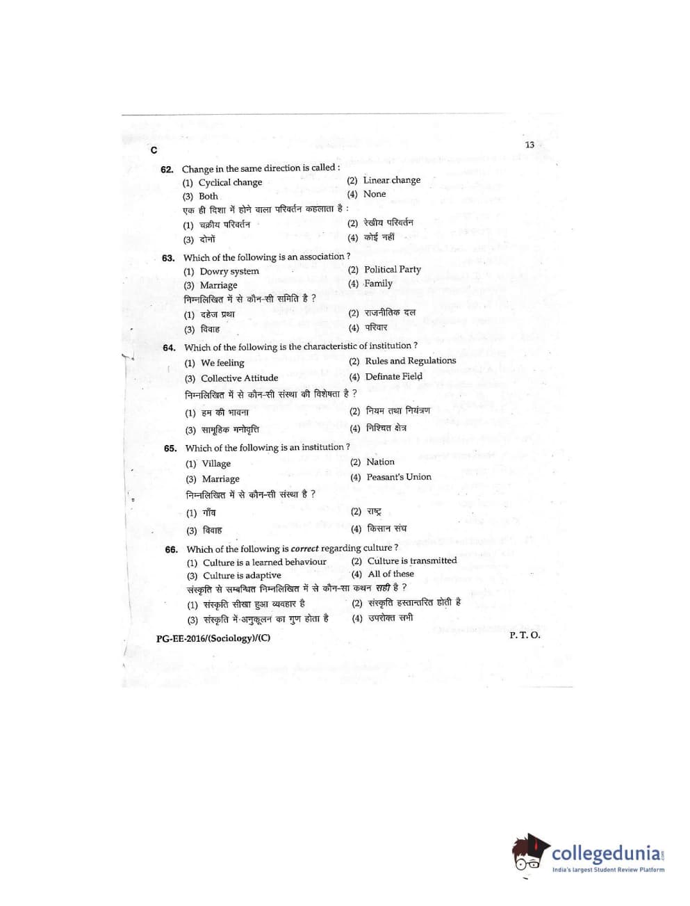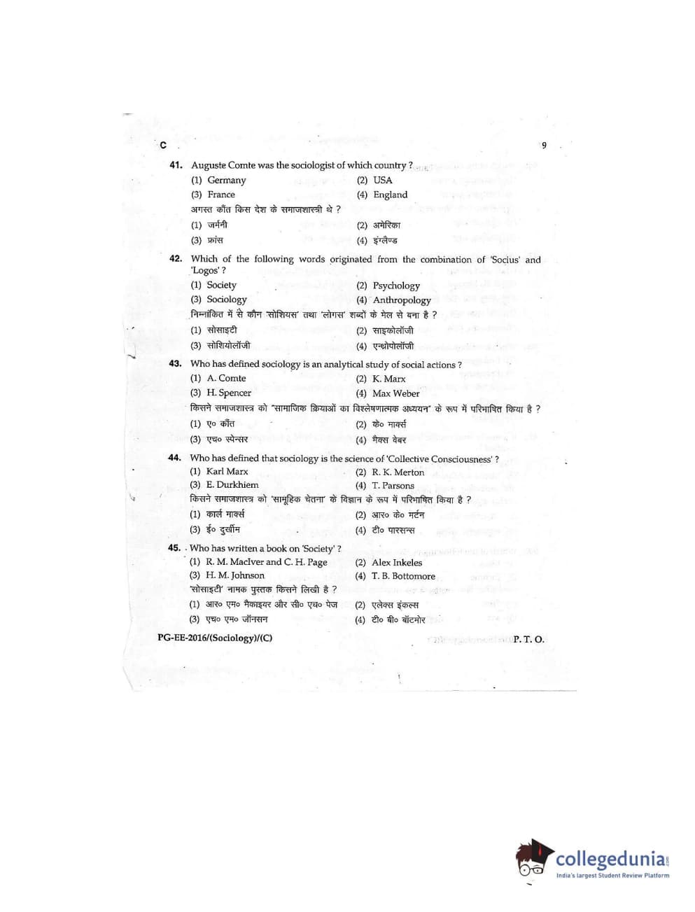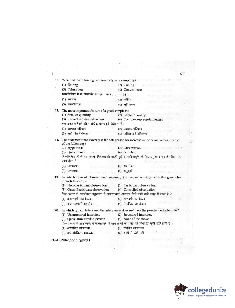 MDUCEE 2016 M.A (Sociology) Set C Question Paper with Answer Key PDFs