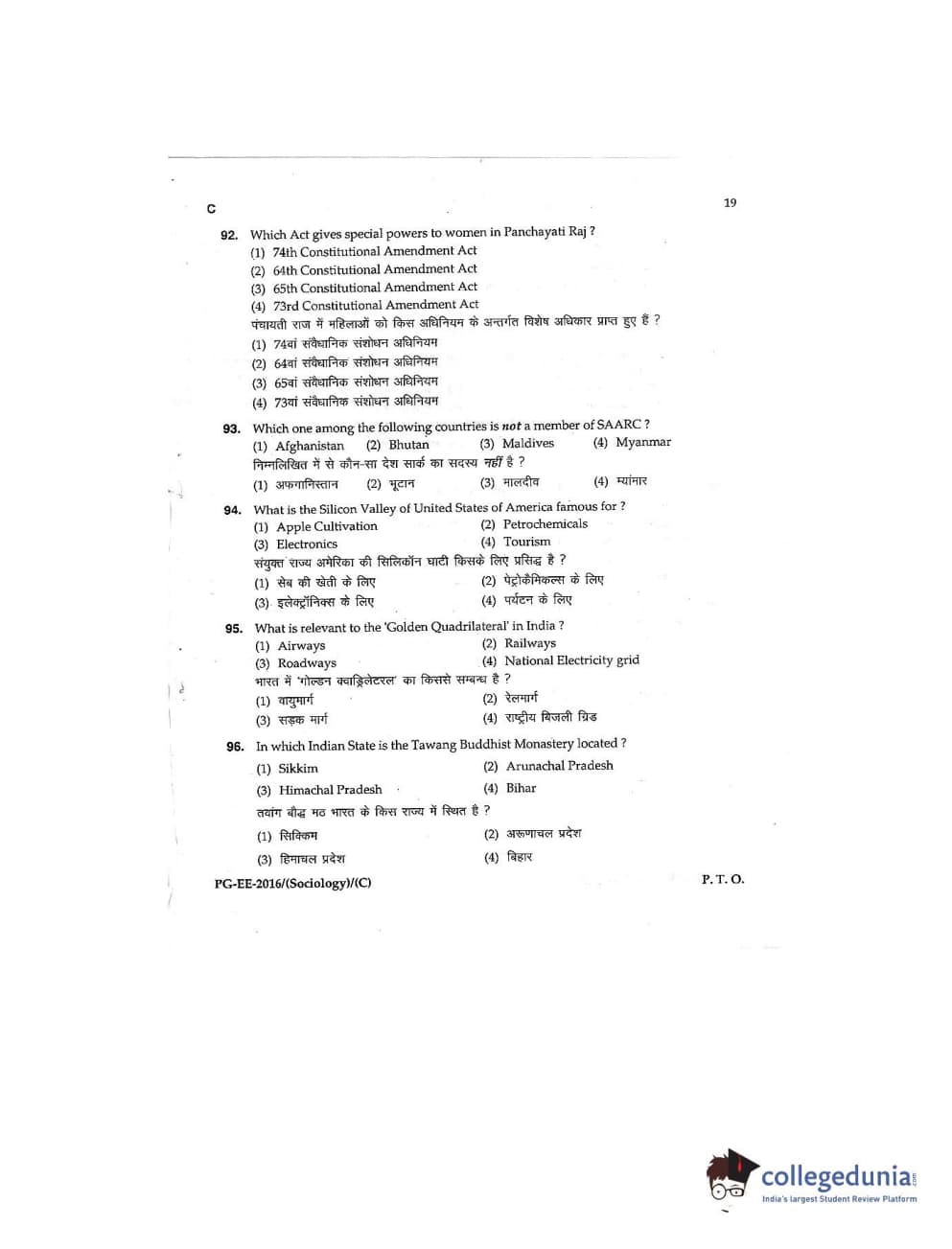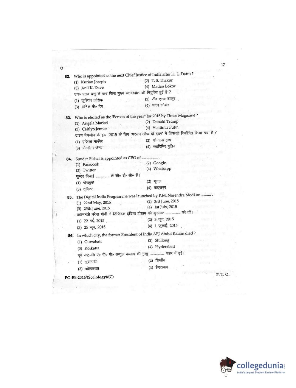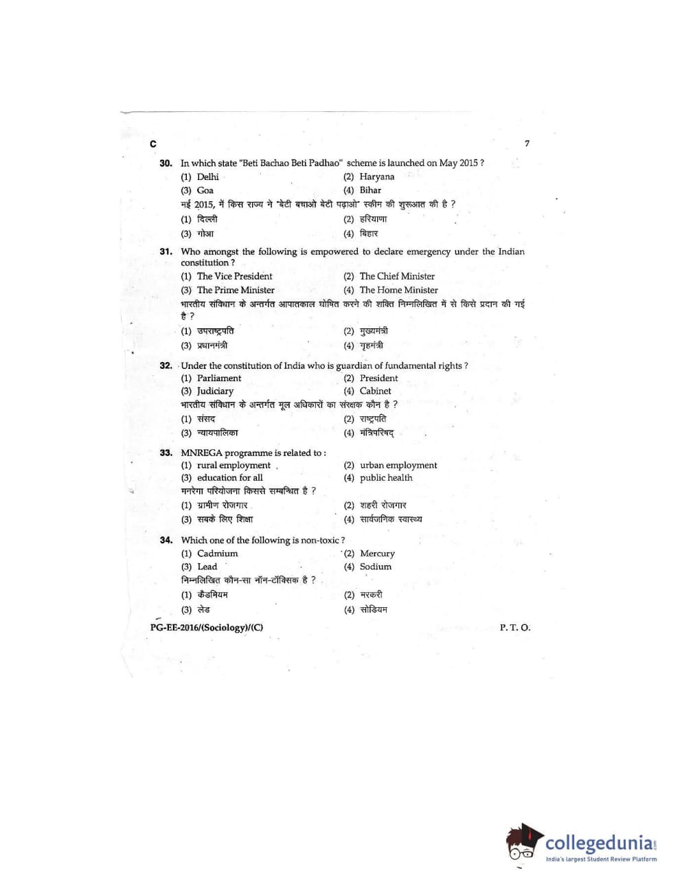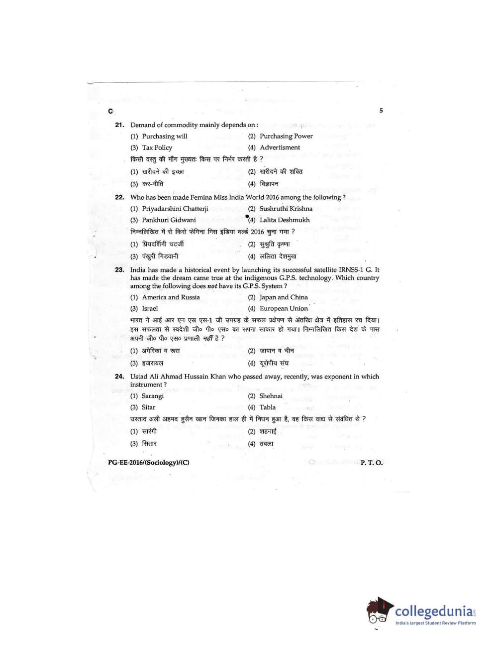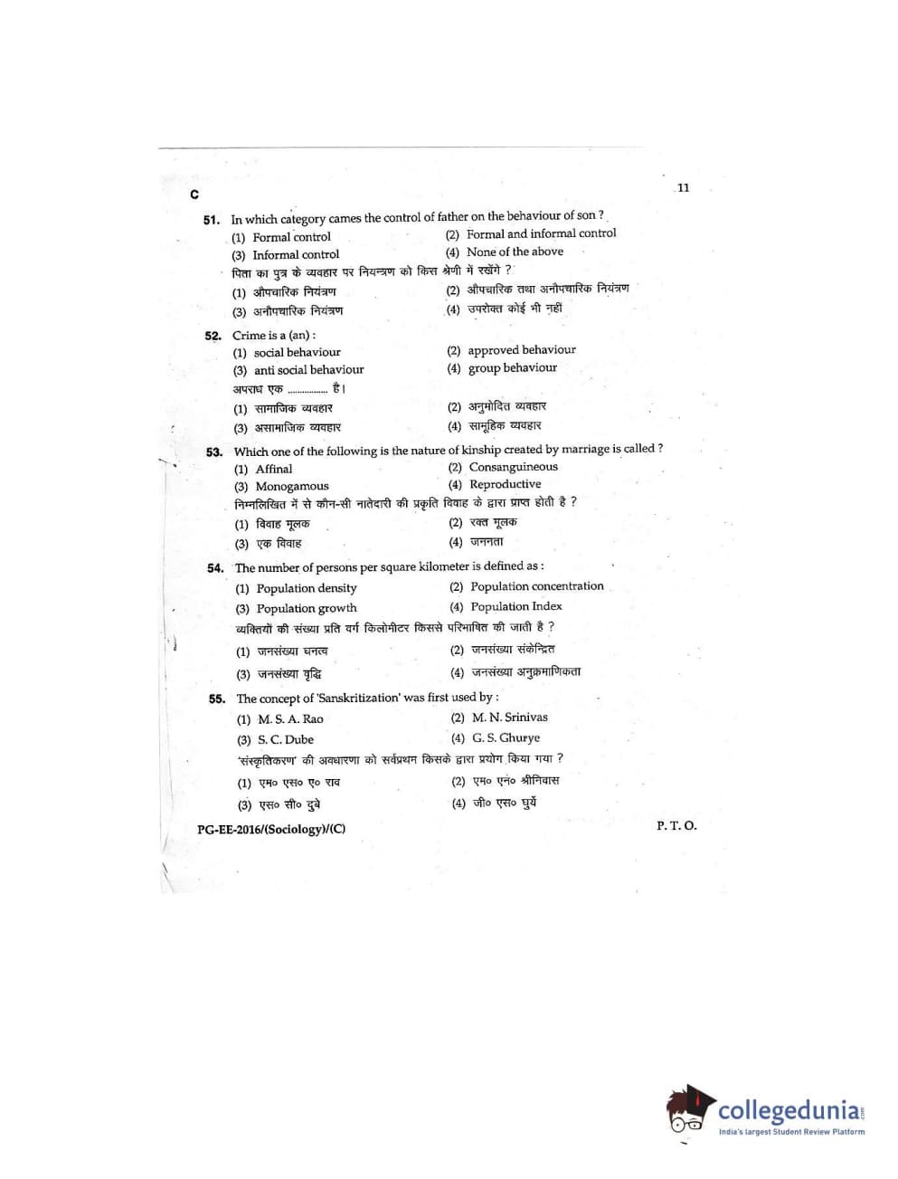 MDUCEE 2016 M.A (Sociology) Set C Question Paper with Answer Key PDFs