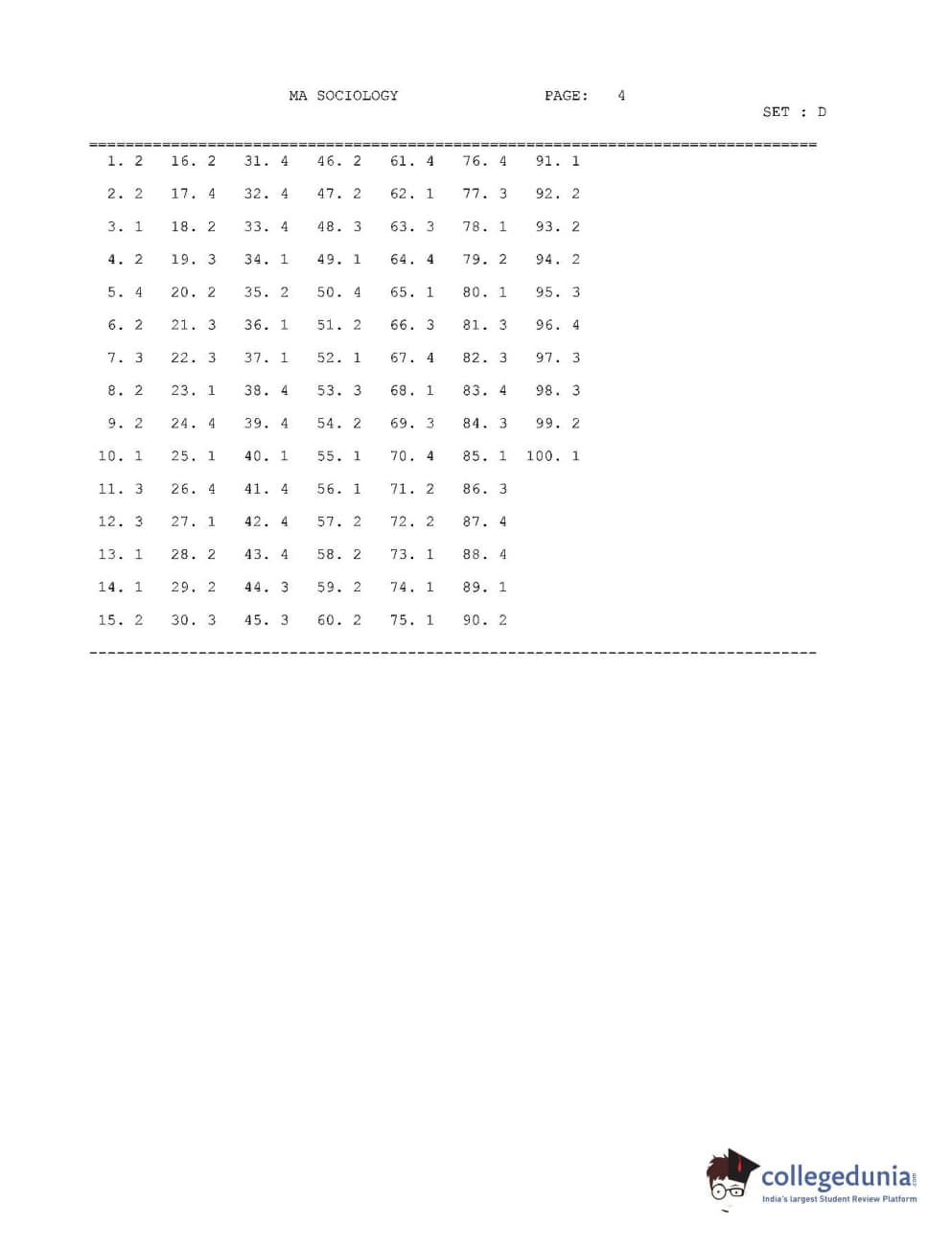 MDUCEE 2016 M.A (Sociology) Set D Question paper with answer key pdf is available for download. The exam was successfully organized by Maharishi Dayanand University. The question paper comprised a total of 100 questions.