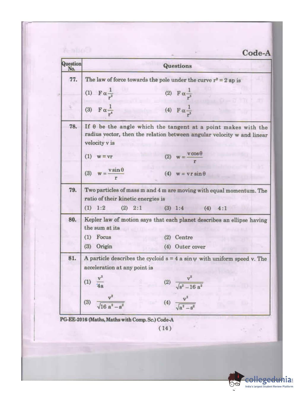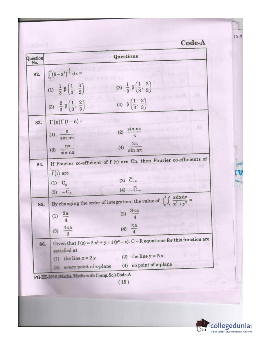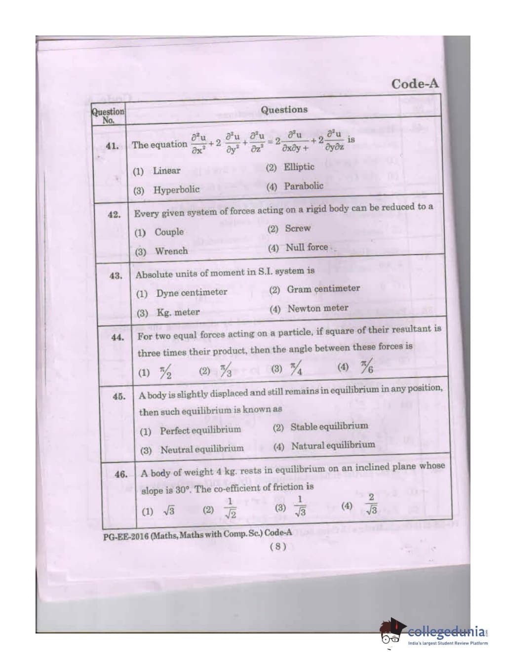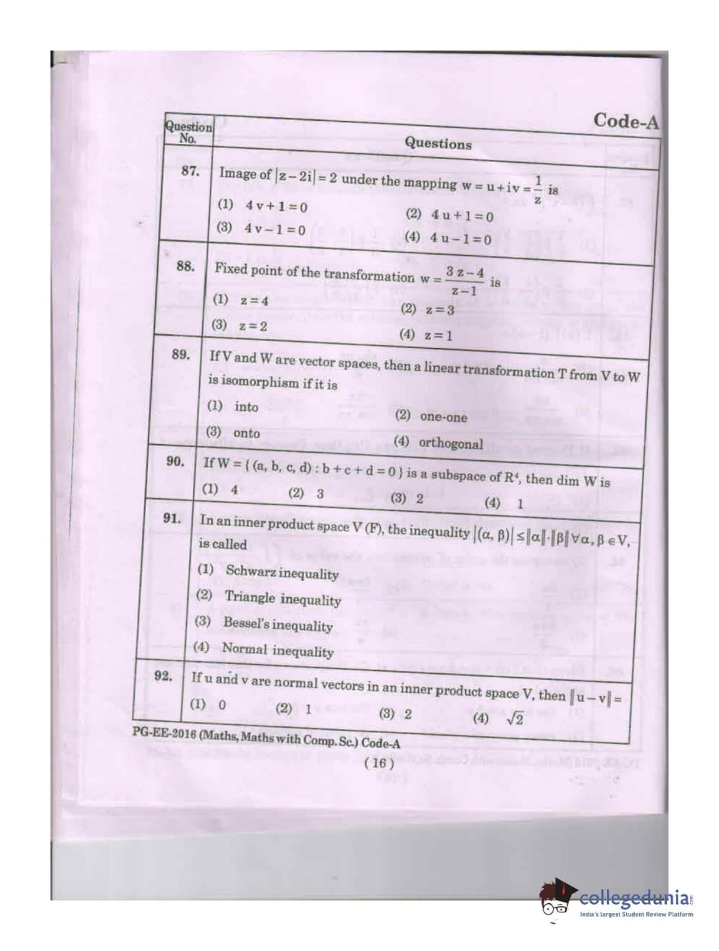 MDUCEE 2016 Math, Math With Computer Science Set A Question Paper with Answer Key PDFs