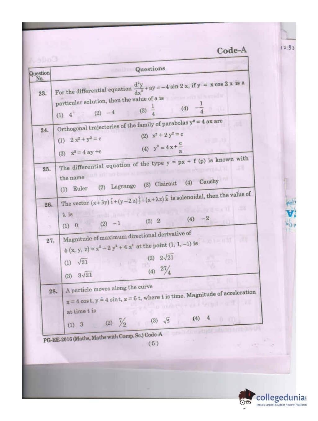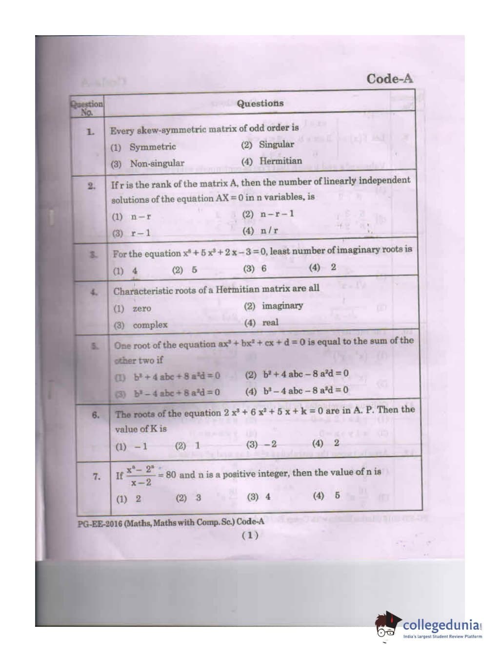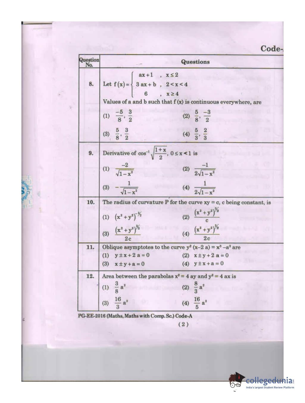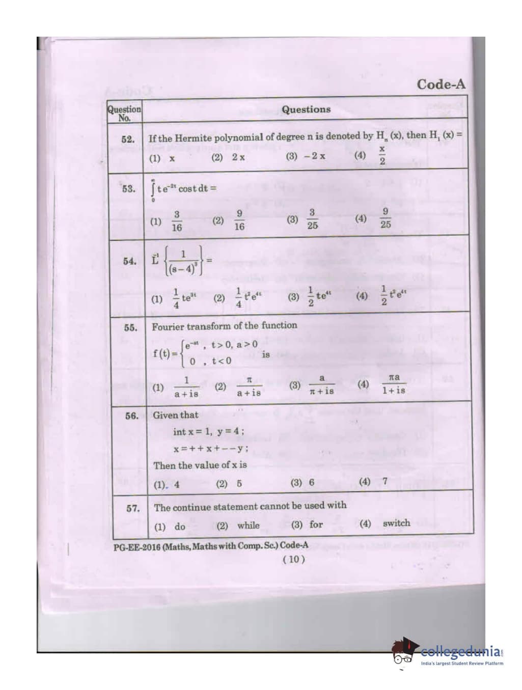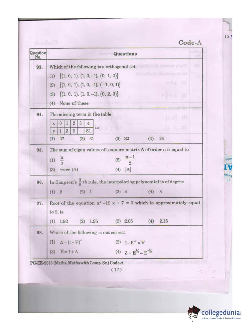MDUCEE 2016 Math, Math With Computer Science Set A Question Paper with Answer Key PDFs