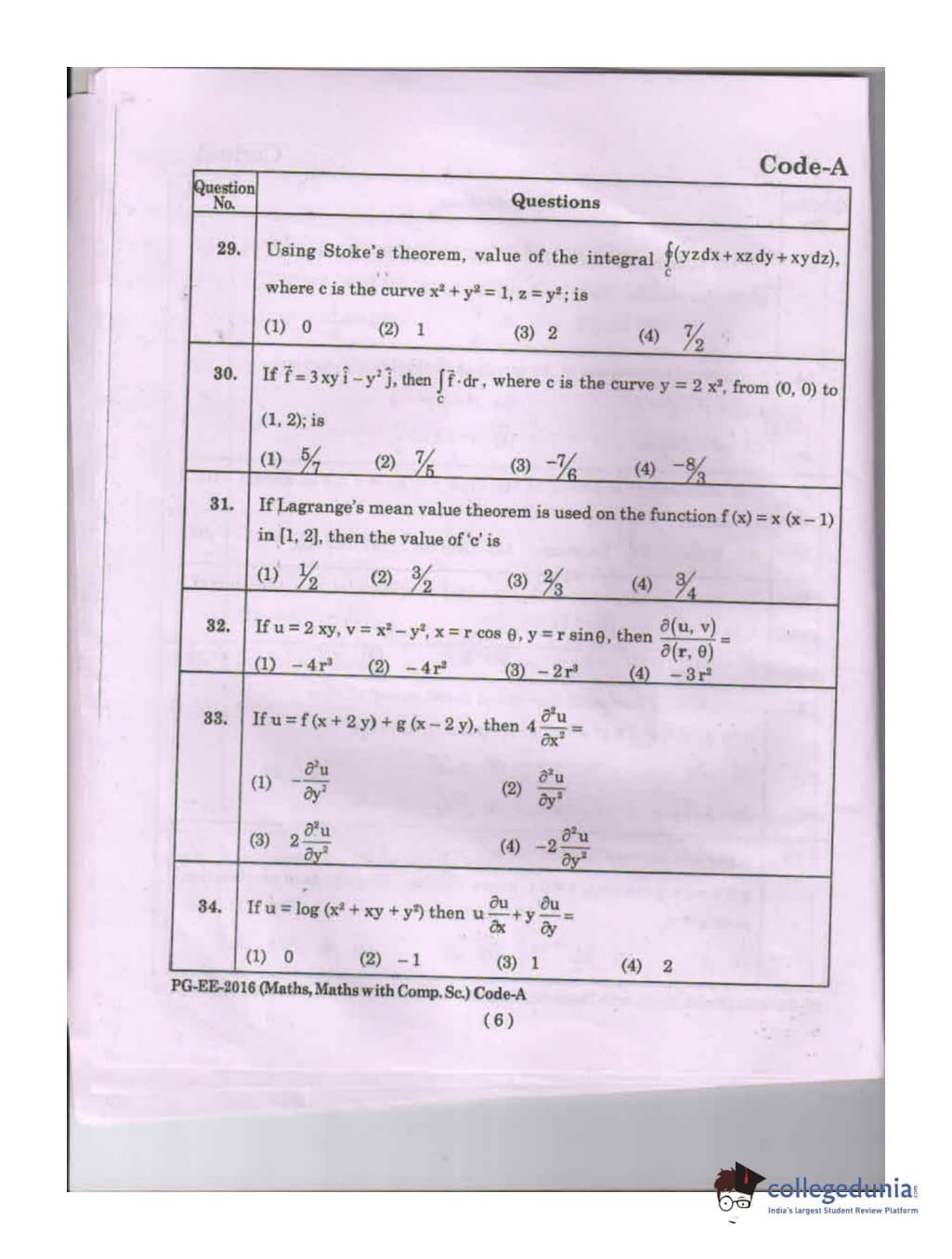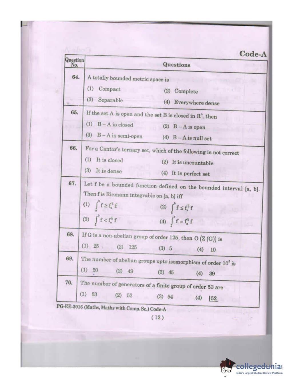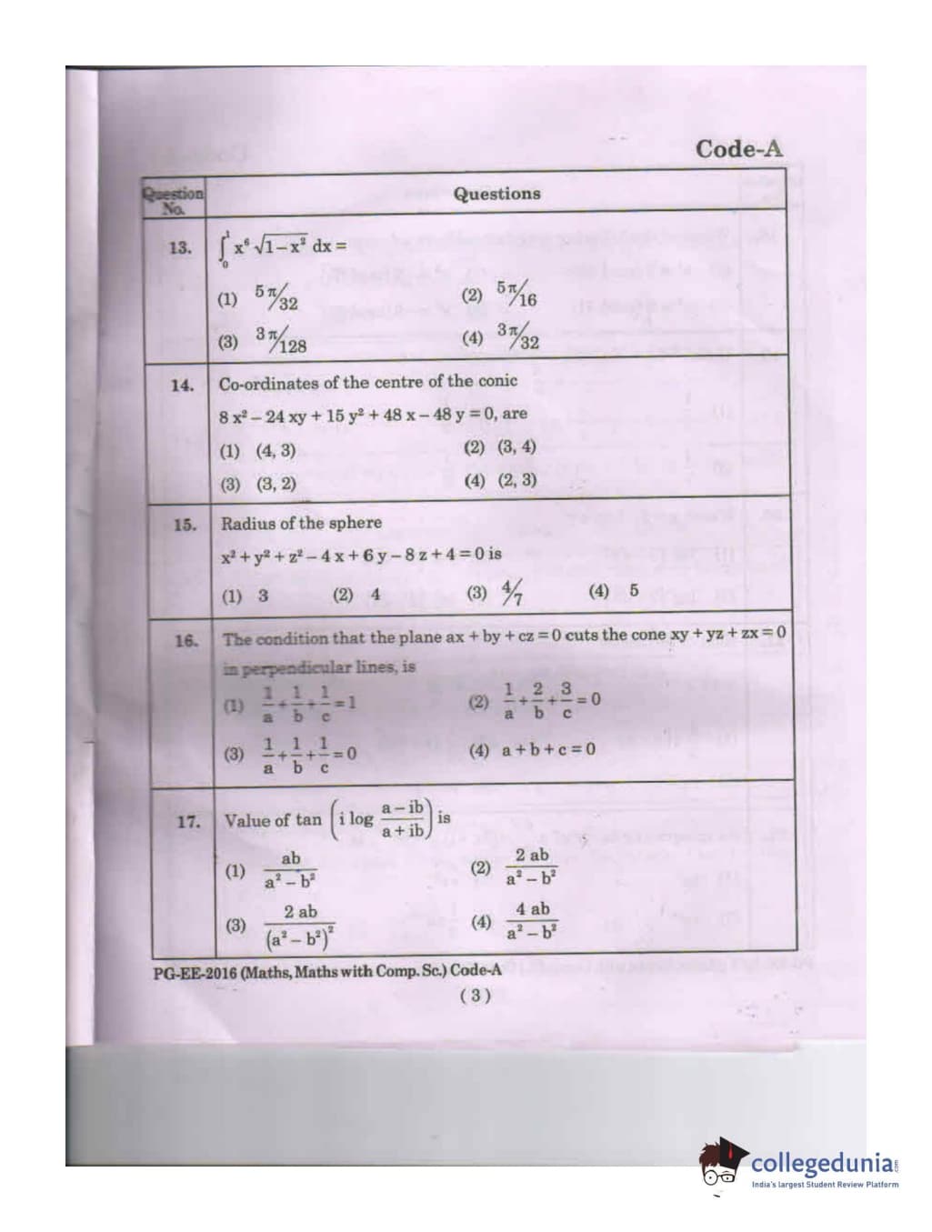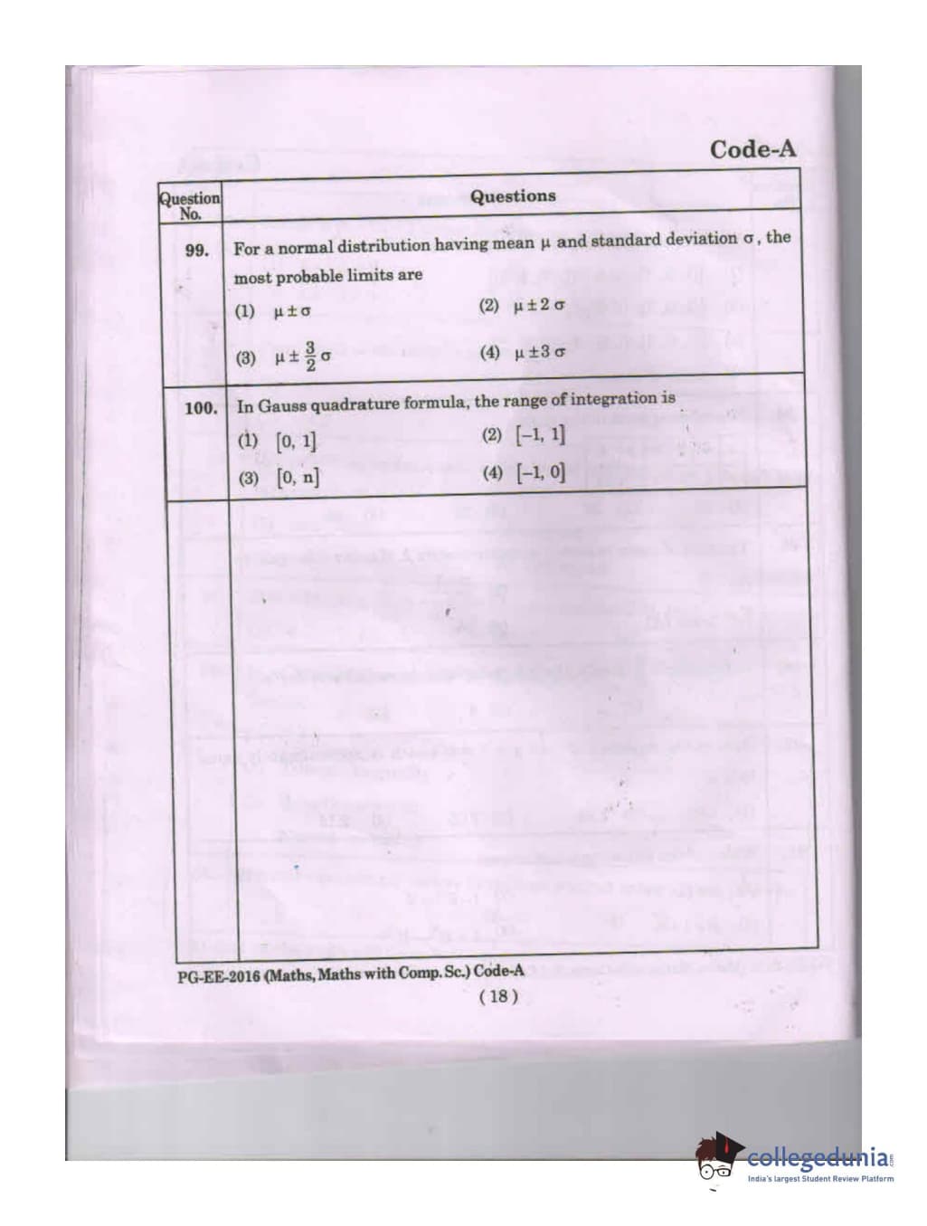 MDUCEE 2016 Math, Math With Computer Science Set A Question Paper with Answer Key PDFs