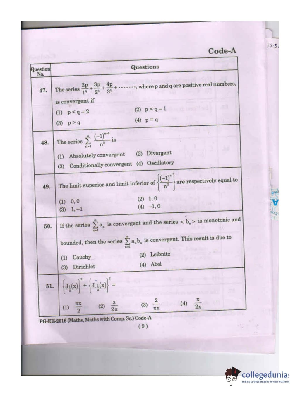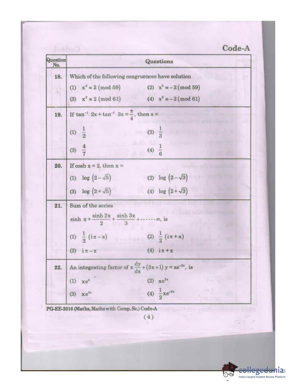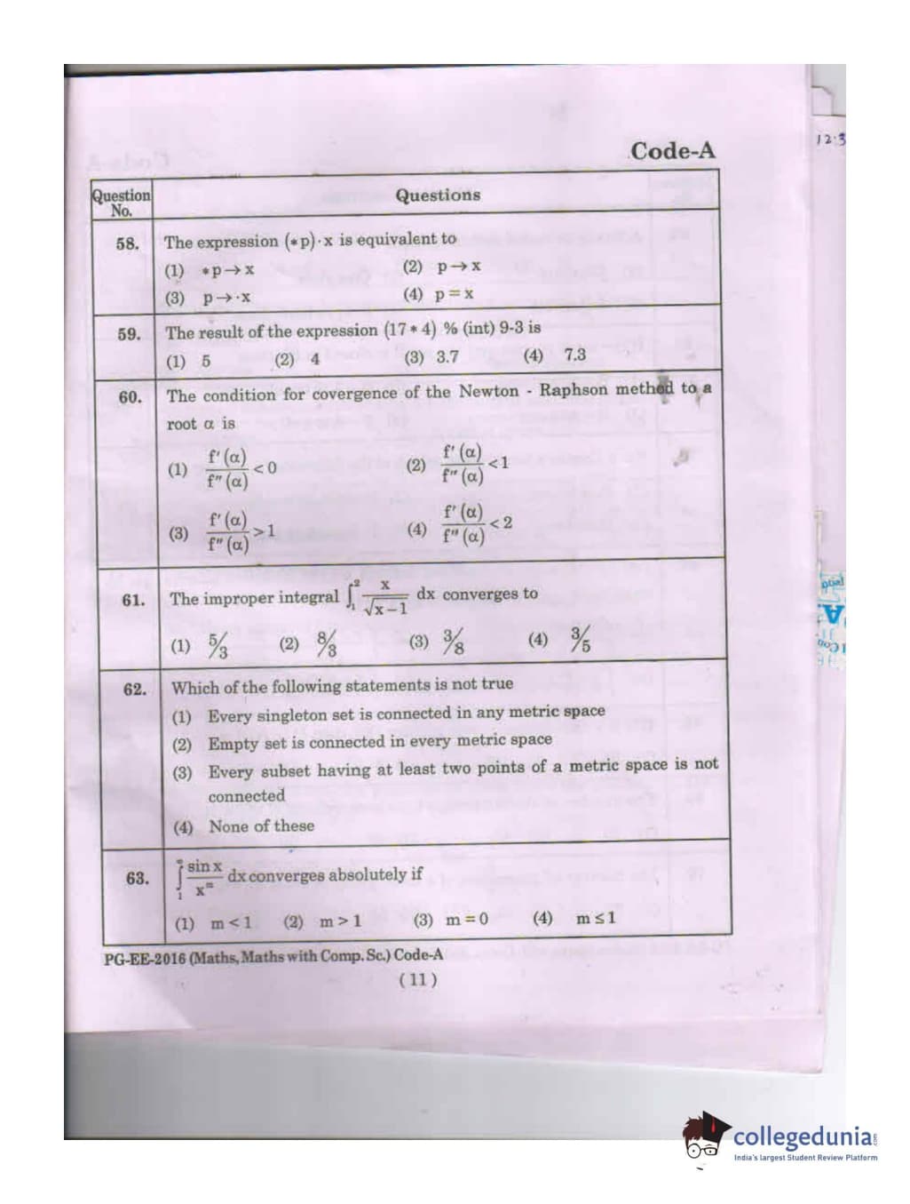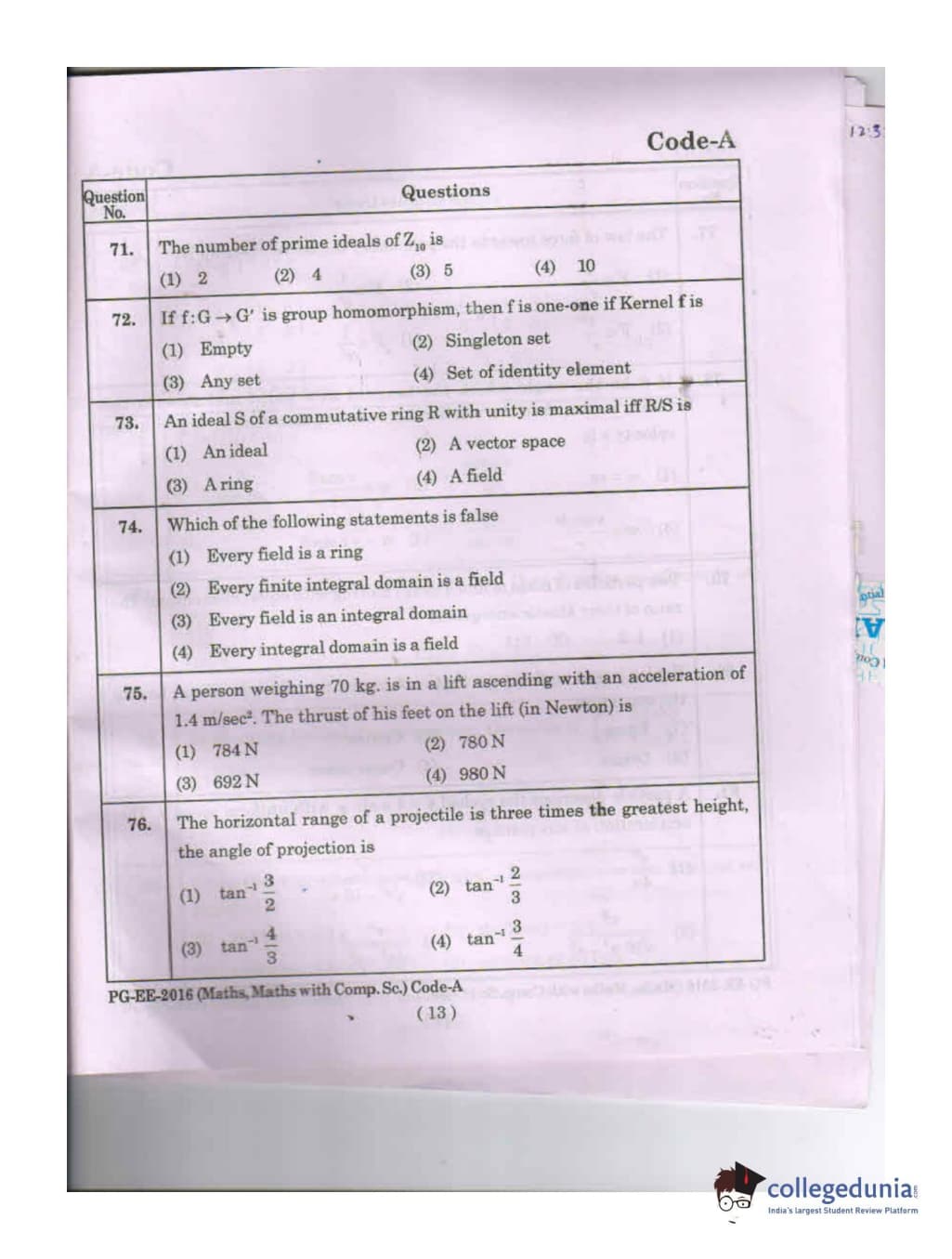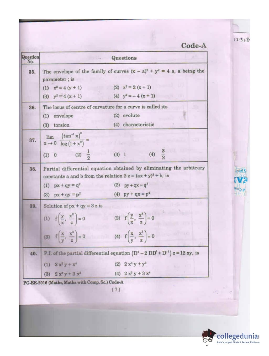 MDUCEE 2016 Math, Math With Computer Science Set A Question Paper with Answer Key PDFs
