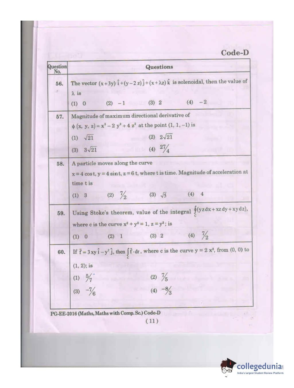 | MDUCEE 2016 Math, Math With Computer Science Set D Question Paper PDF | MDUCEE 2016 Math, Math With Computer Science Set D Answer Key PDF |