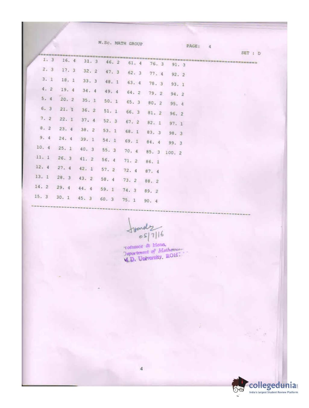 MDUCEE 2016 Math, Math With Computer Science Set D Question paper with answer key pdf is available for download. The exam was successfully organized by Maharishi Dayanand University. The question paper comprised a total of 100 questions.