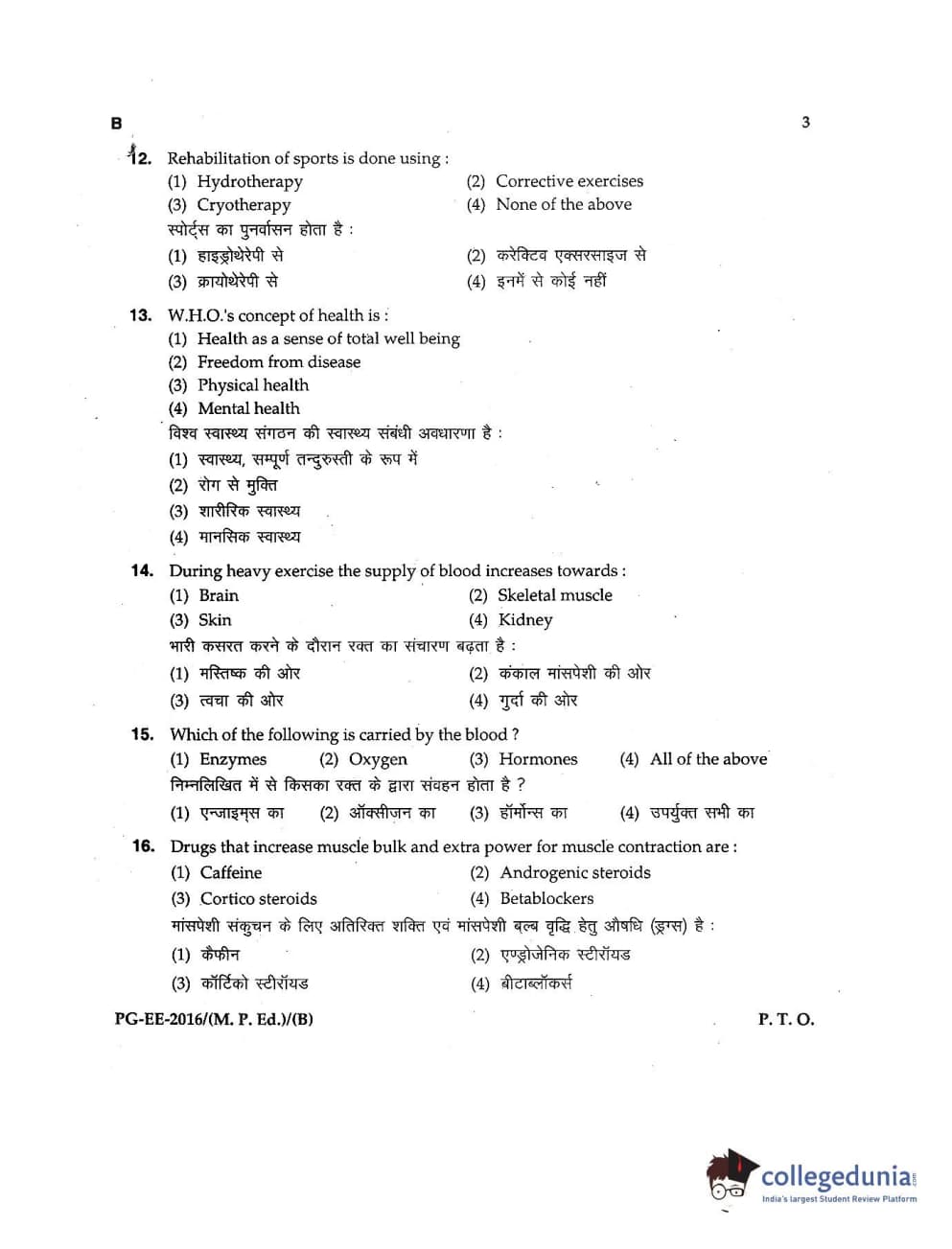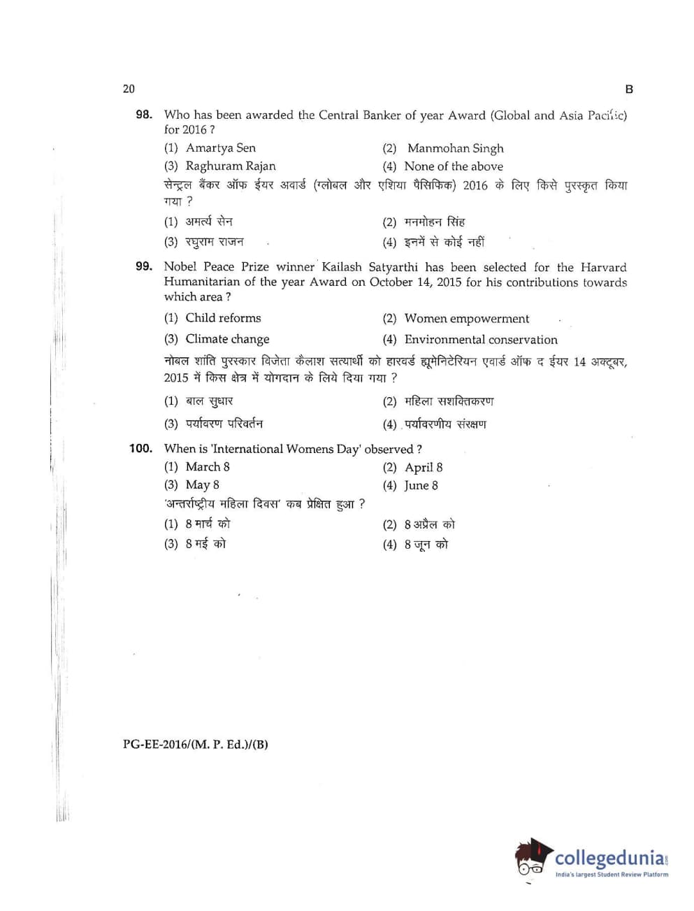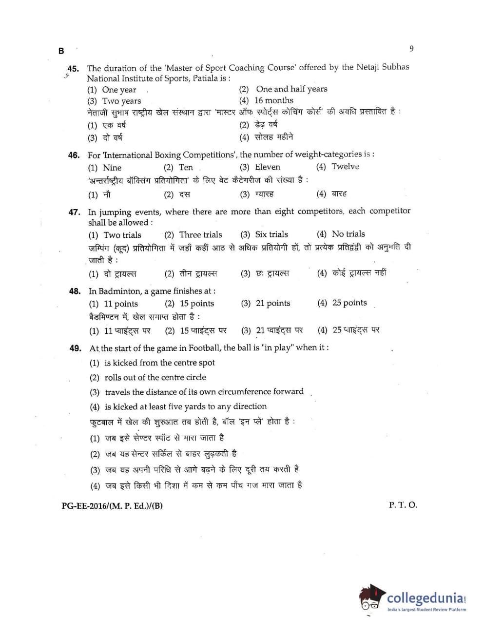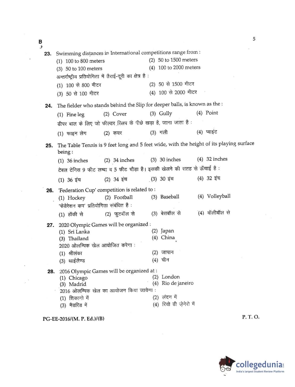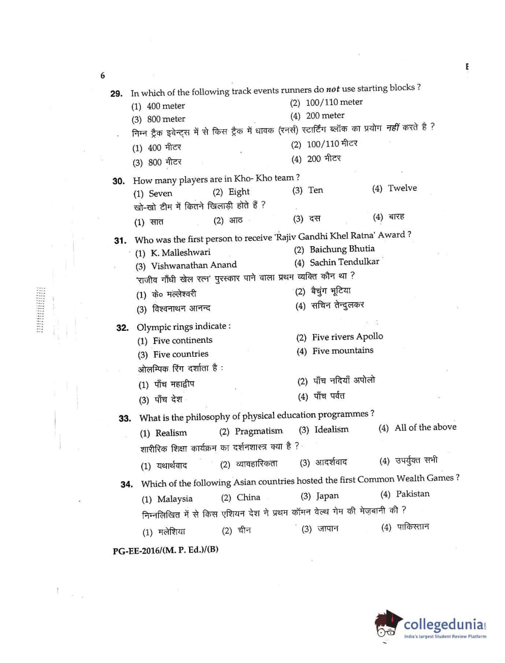 MDUCEE 2016 M.P.Ed. Set B Question Paper with Answer Key PDFs
