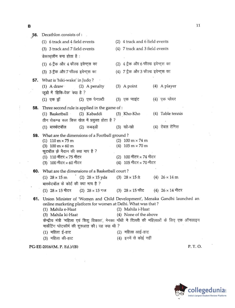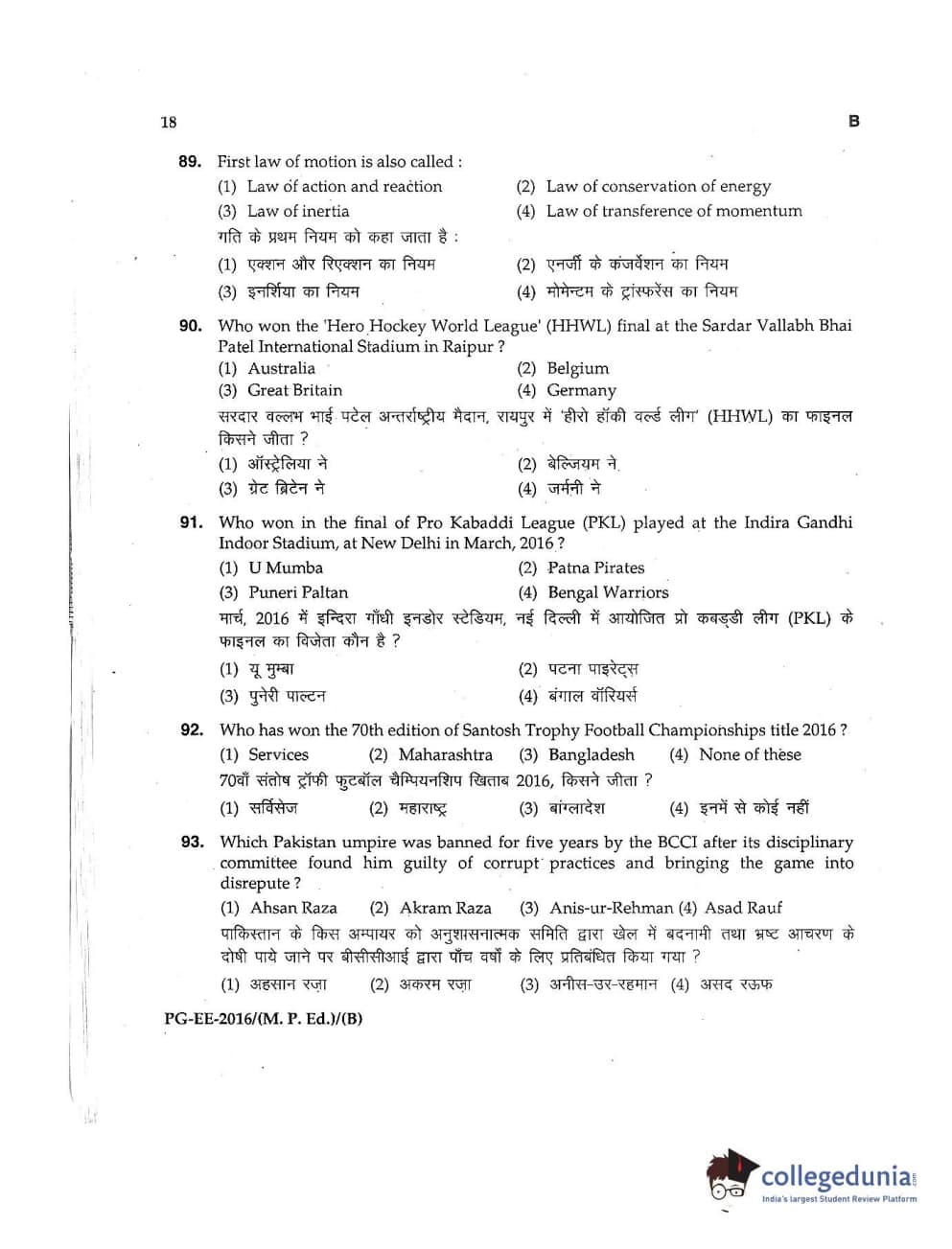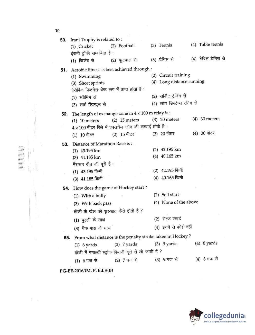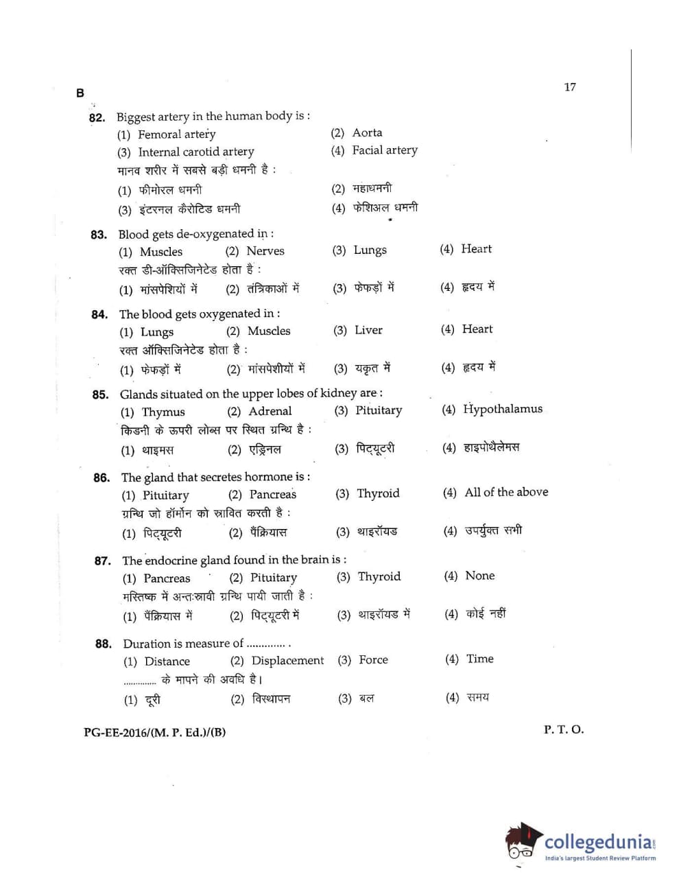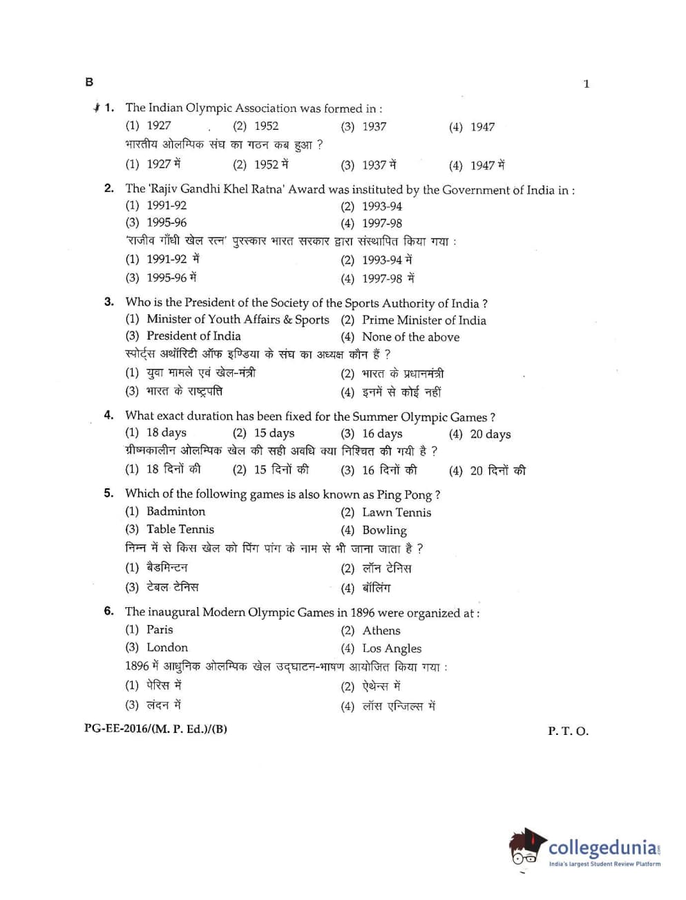 MDUCEE 2016 M.P.Ed. Set B Question Paper with Answer Key PDFs