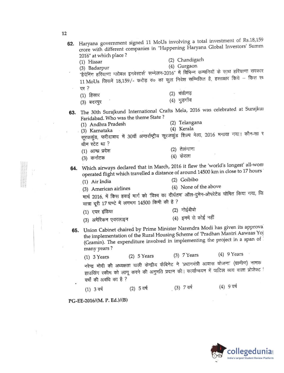 | MDUCEE 2016 M.P.Ed. Set B Question Paper PDF | MDUCEE 2016 M.P.Ed. Set B Answer Key PDF |