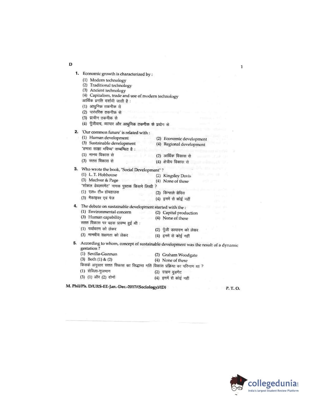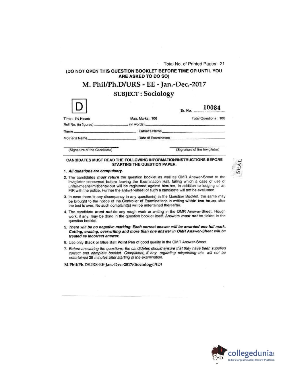 | MDUCEE 2016 M.Phil./Ph.D./URS Sociology Set D Question Paper PDF | MDUCEE 2016 M.Phil./Ph.D./URS Sociology Set D Answer Key PDF |