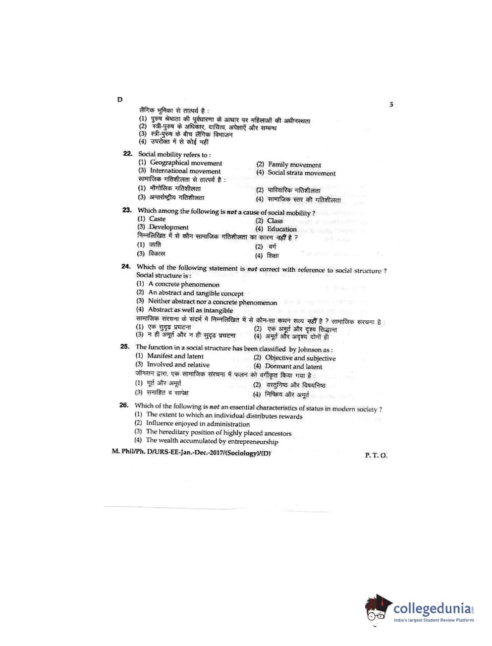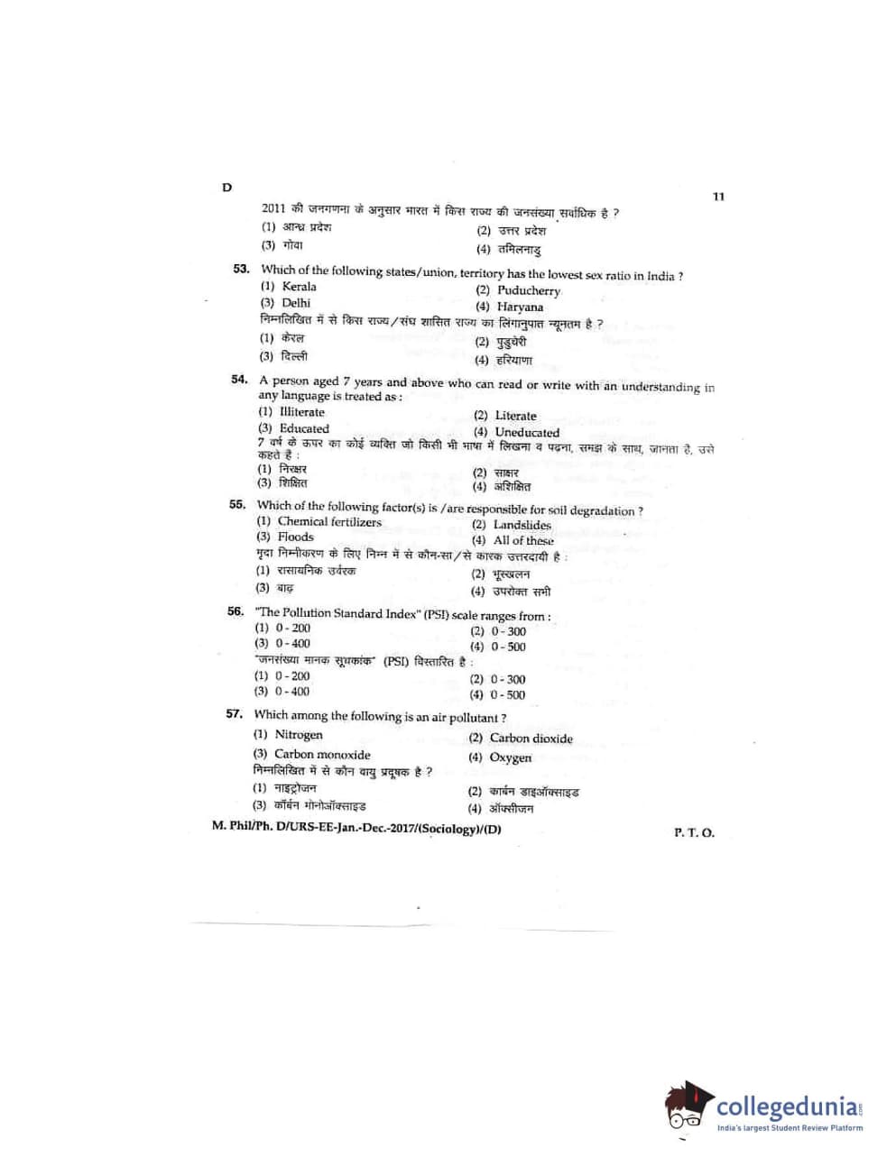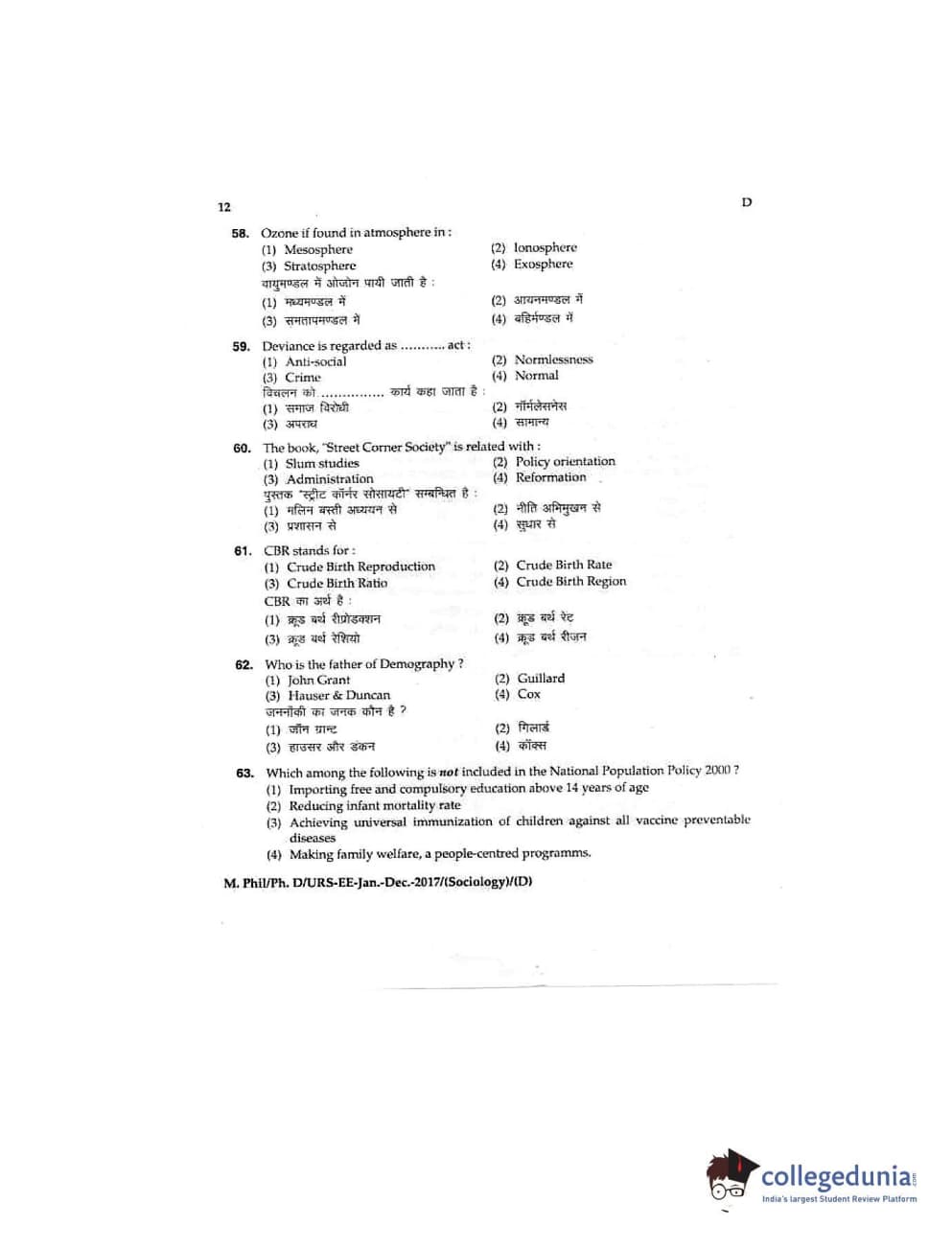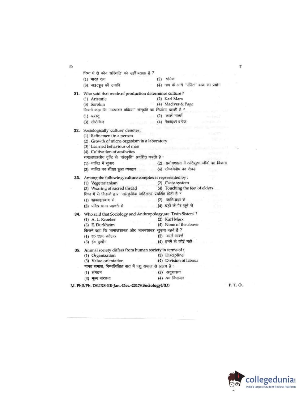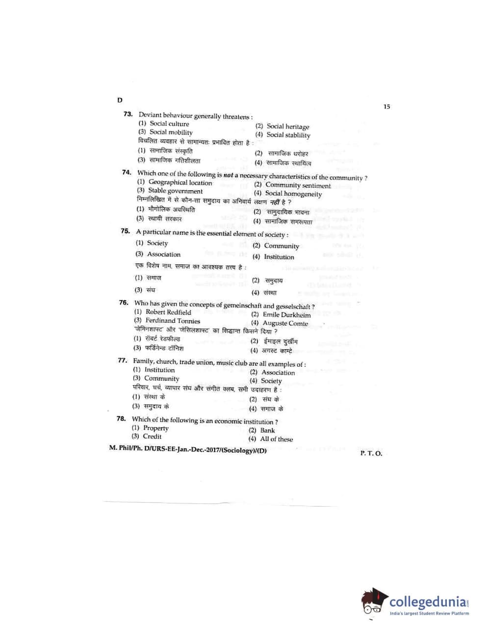 MDUCEE 2016 M.Phil./Ph.D./URS Sociology Set D Question Paper with Answer Key PDFs