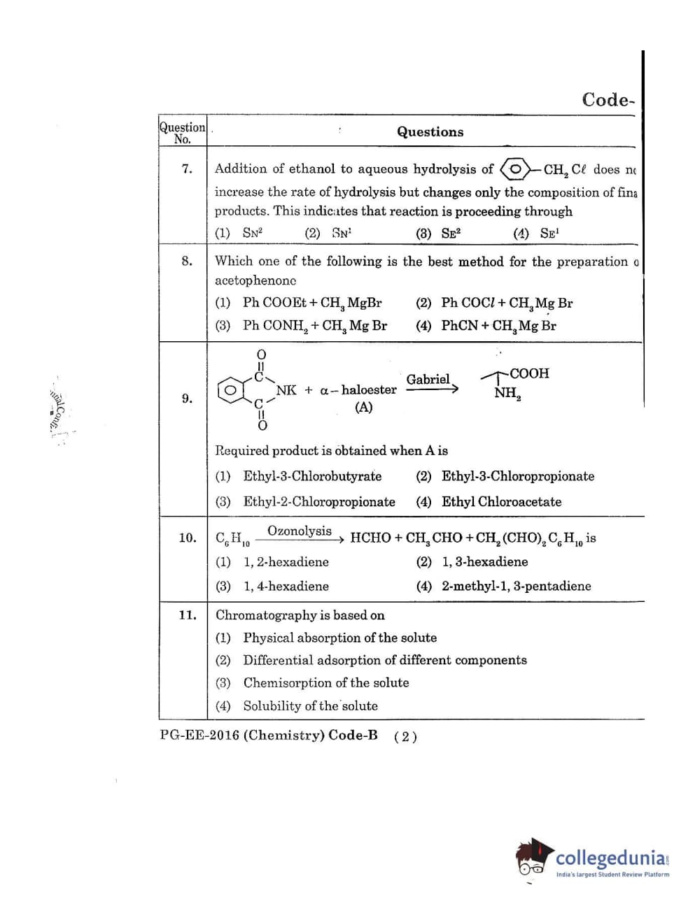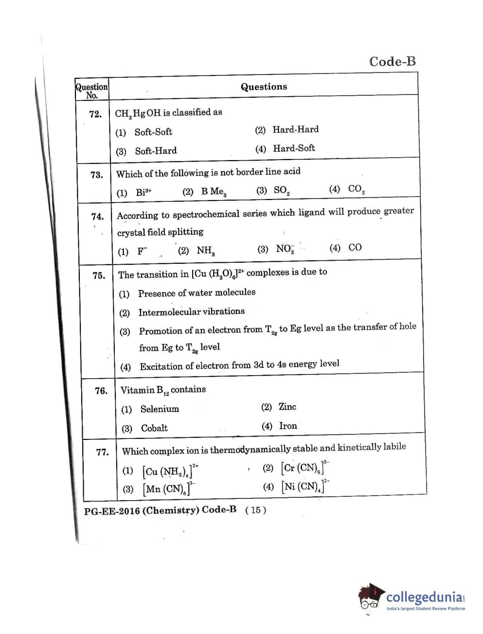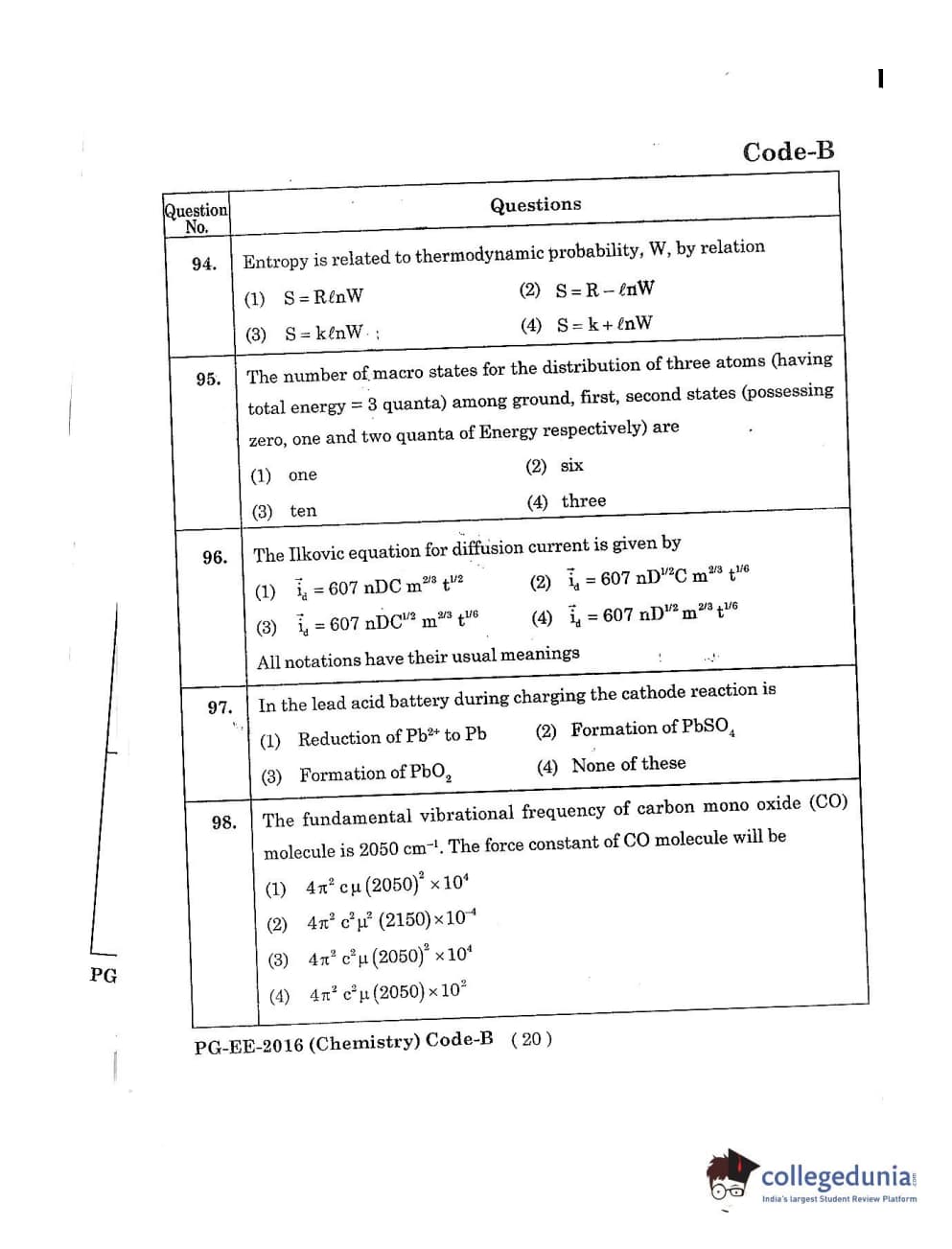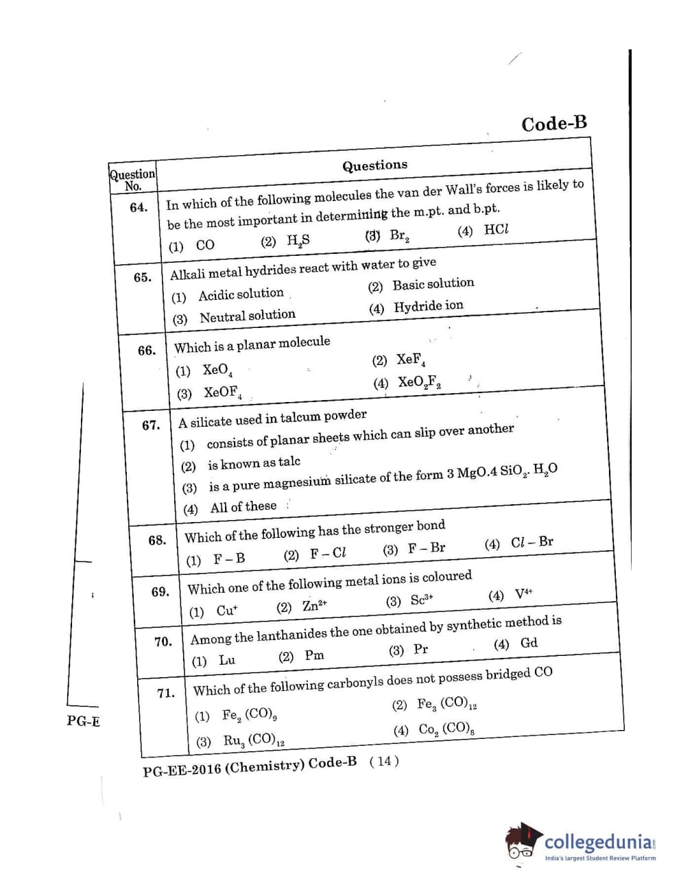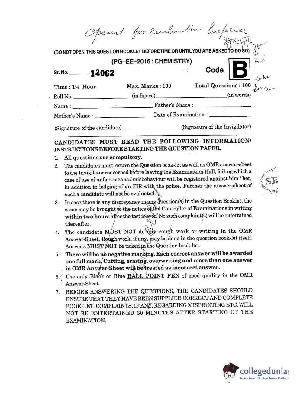 | MDUCEE 2016 M.Sc. (Chemistry) Set B Question Paper PDF | MDUCEE 2016 M.Sc. (Chemistry) Set B Answer Key PDF |