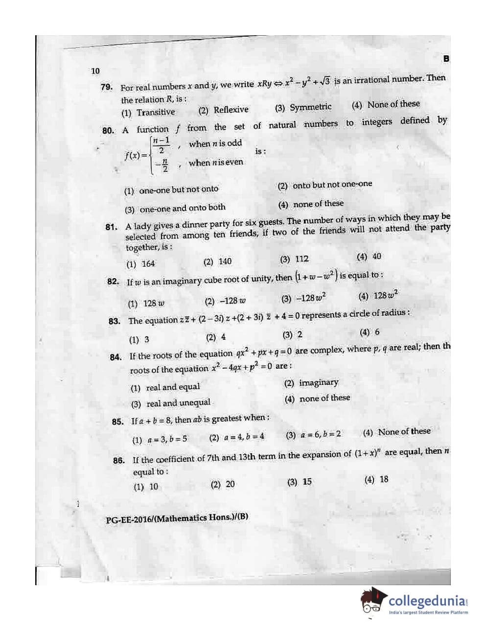 MDUCEE 2016 M.Sc. (Hons.) Mathematics 5-Years Integrated Set B Question Paper with Answer Key PDFs